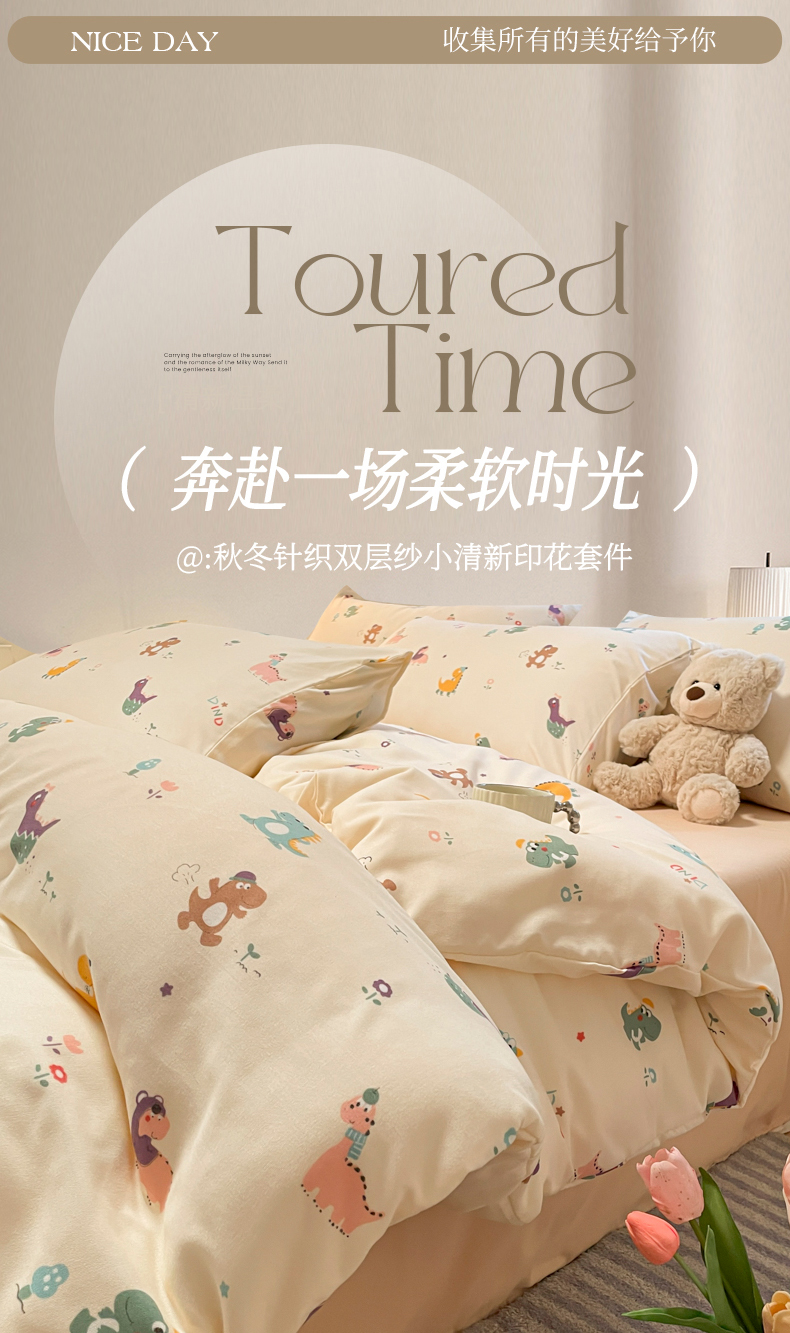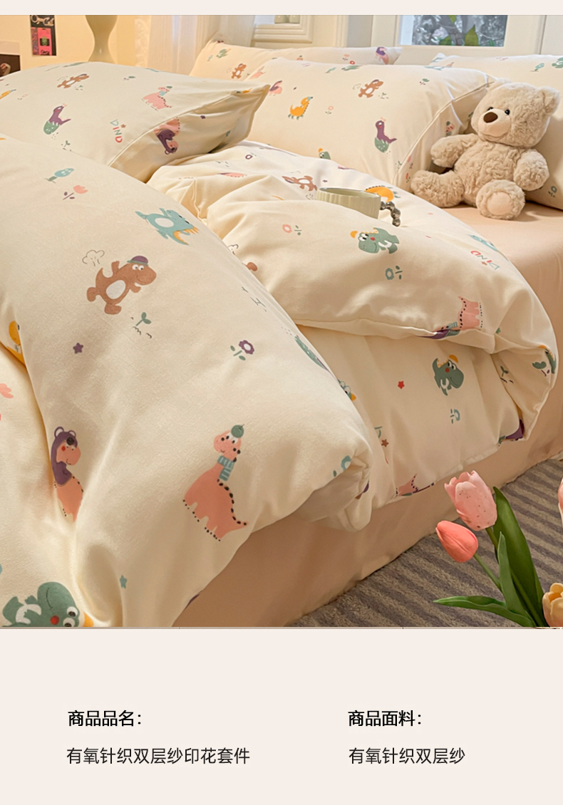 当前位置: 91家纺网 > 商品网购 > 床品套件 > 四件套 > 双层纱四件套 > 玉海棠家纺 2025新款针织双层纱四件套 趣味恐龙