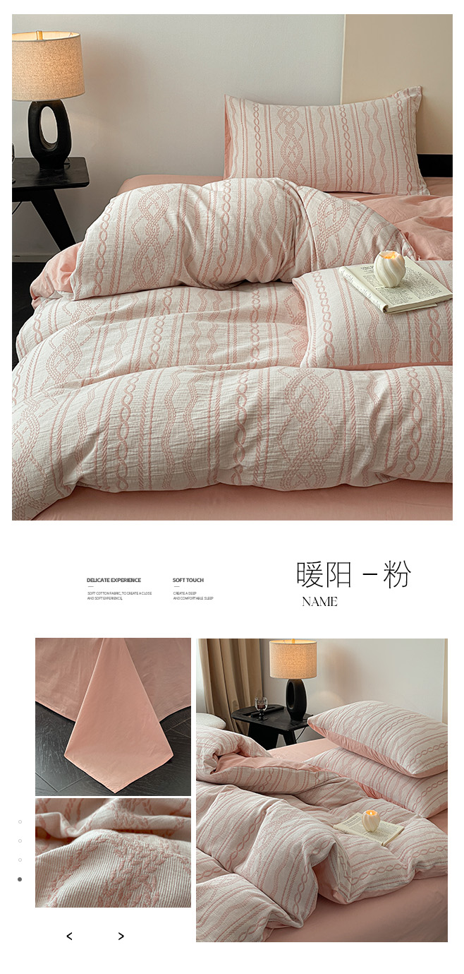 商品名称:ab家纺 2025新款全棉三层纱小提花四件套 暖阳-粉