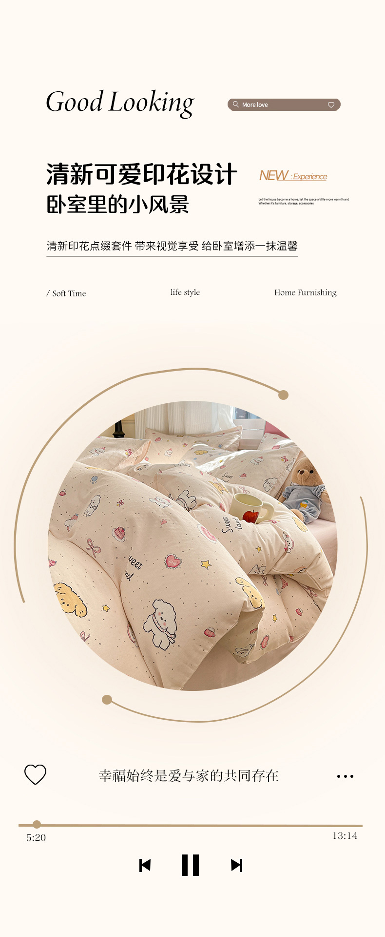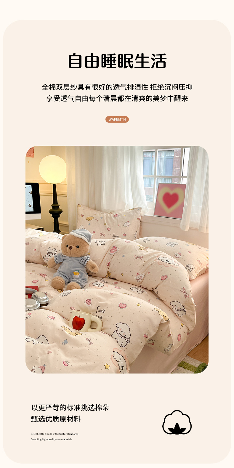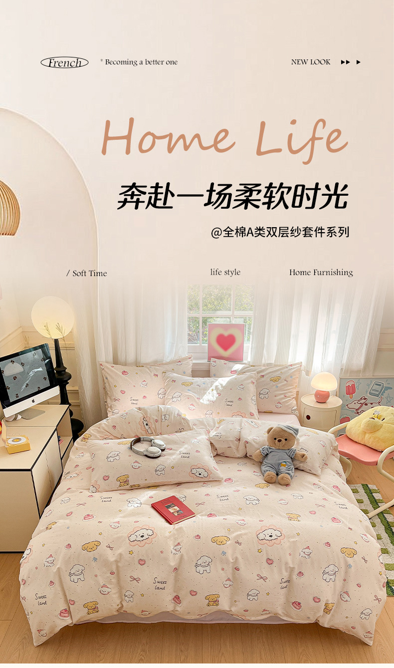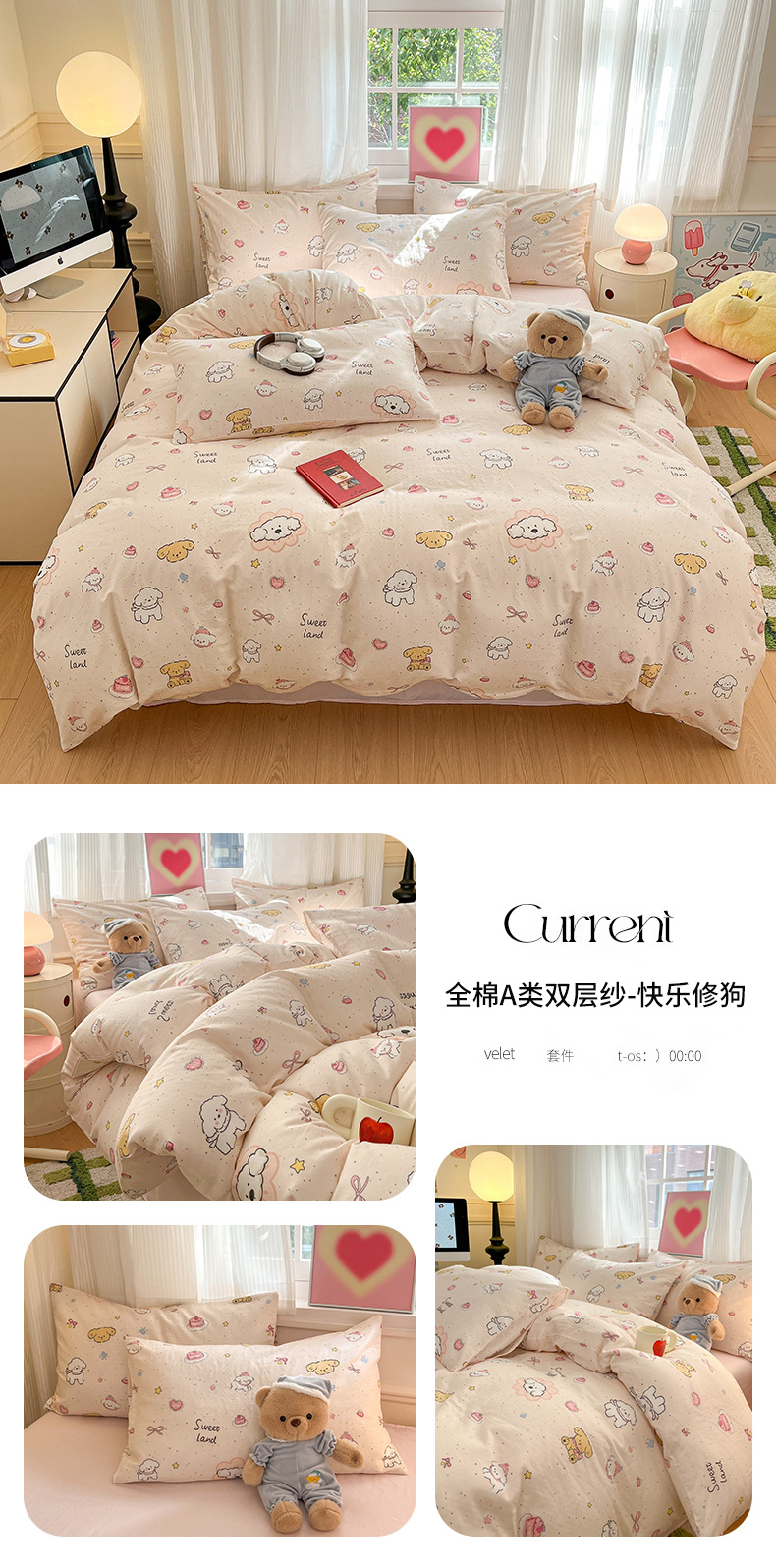 当前位置: 91家纺网 > 商品网购 > 床品套件 > 四件套 > 博雅 2025新款全棉A类双层纱四件套 快乐修狗
