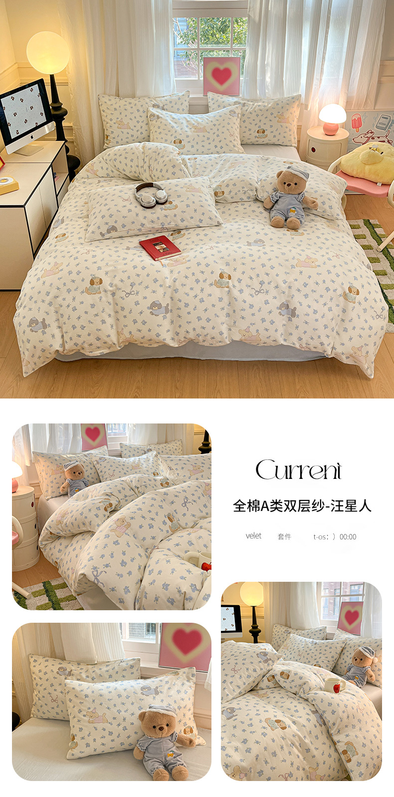 当前位置: 91家纺网 > 商品网购 > 床品套件 > 四件套 > 博雅 2025新款全棉A类双层纱四件套 汪星人