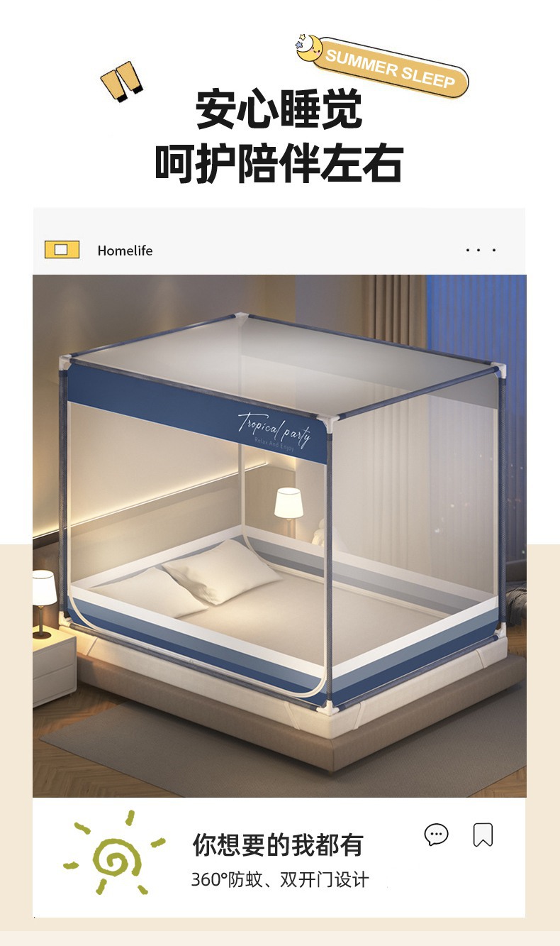 商品名称:青竹苑 2025新款双门全底外穿坐床式蚊帐儿童防摔防蚊拉链方帐 几何图案-夏日粉