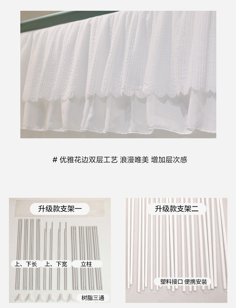 (总)青竹苑 2026春夏新款双层纱撞色落地蚊帐,孔雀蓝,薄荷绿,宝蓝,嫩粉色,柠檬黄,太妃紫,香槟色,玉色