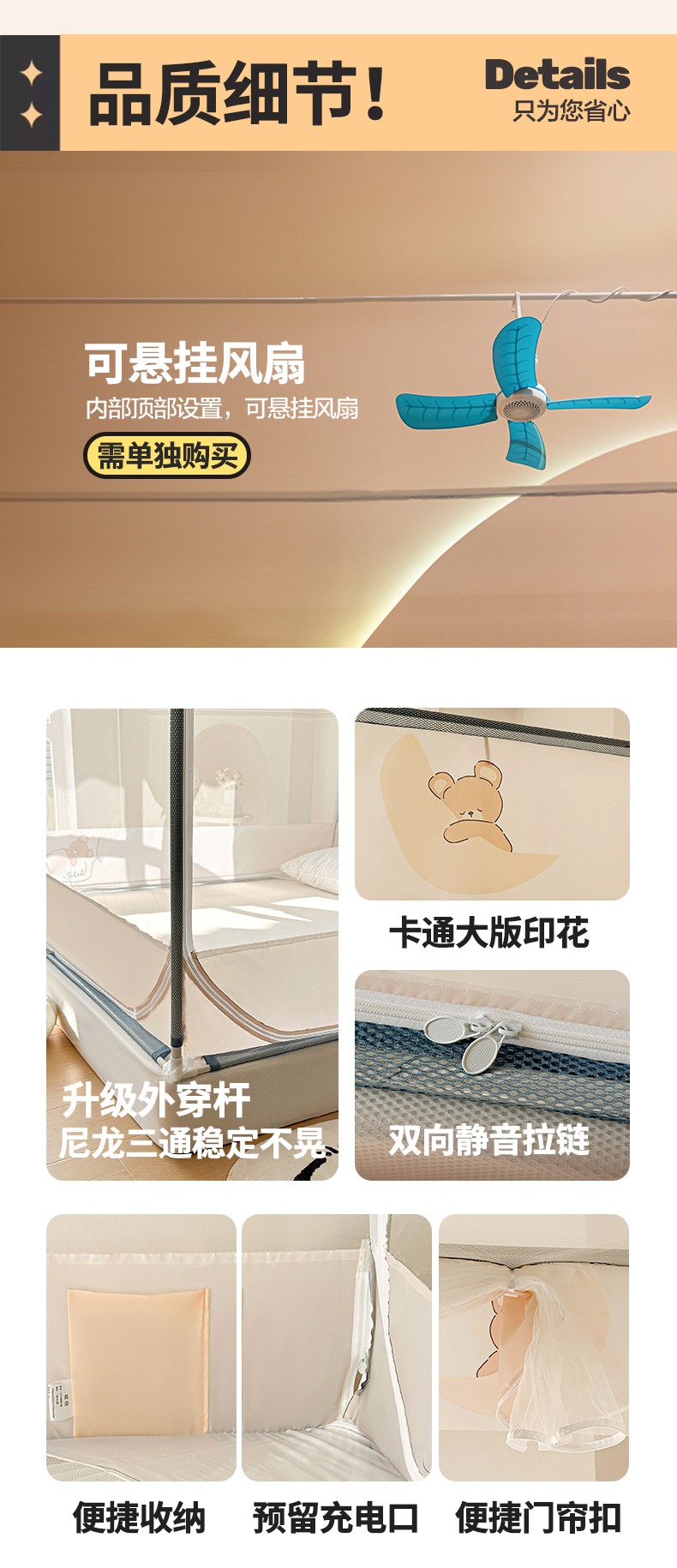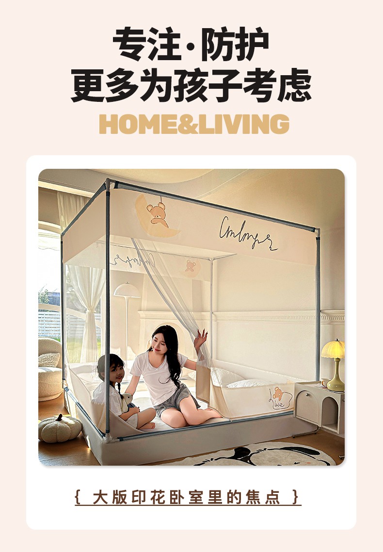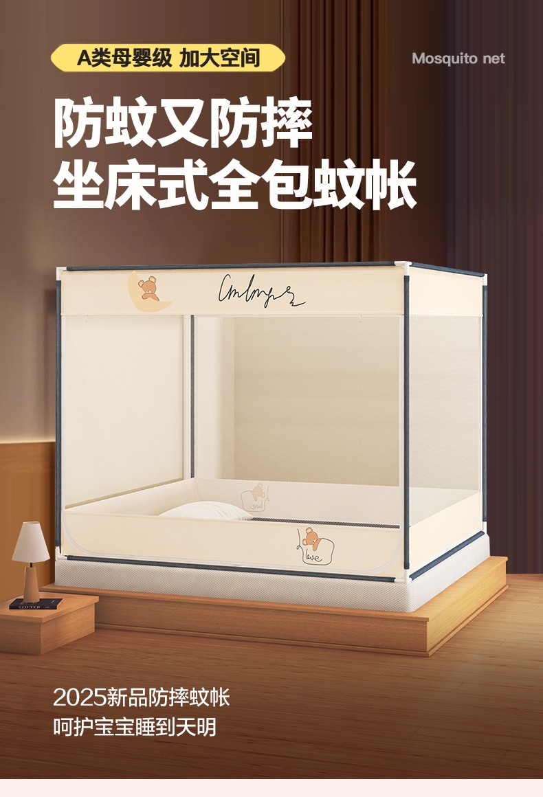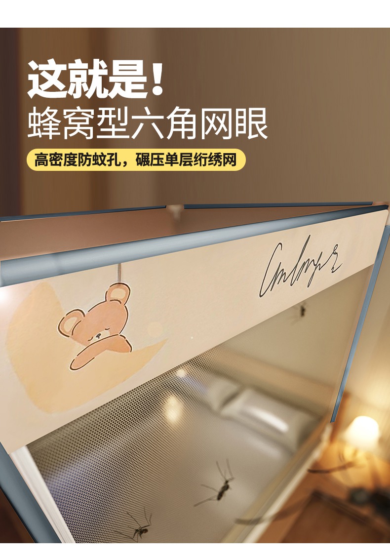 当前位置: 91家纺网 > 商品网购 > 床上用品 > 蚊帐 > 坐床式蚊帐 > 青竹苑 2025新款三门大版上下布印花外穿坐床蚊帐床笠式防摔方帐 憨睡熊