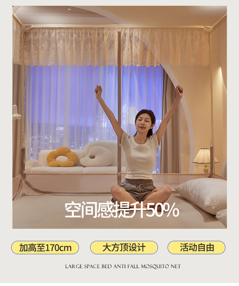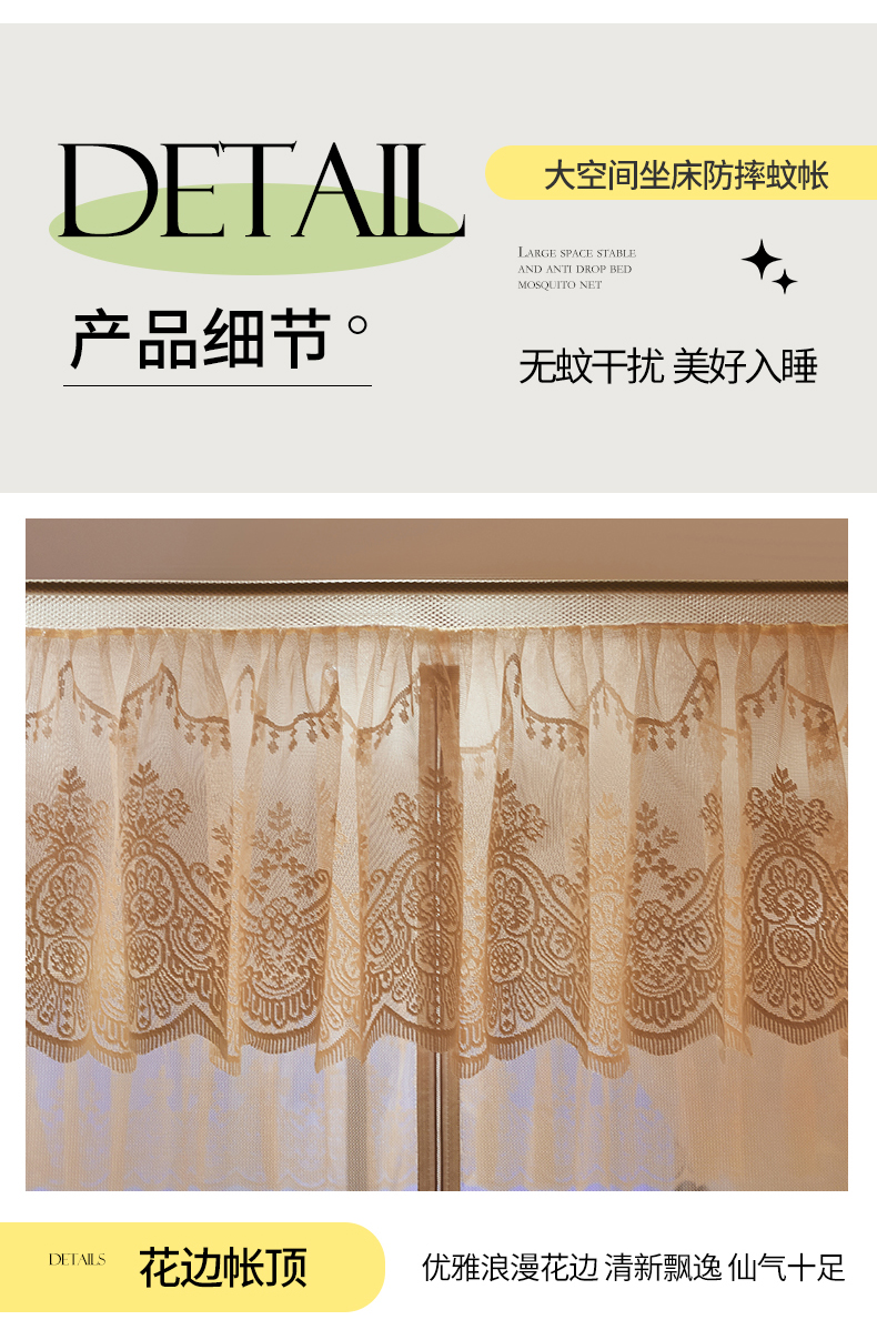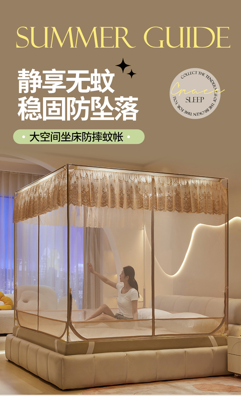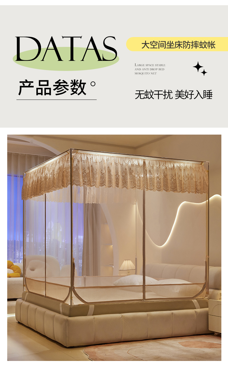 当前位置: 91家纺网 > 商品网购 > 床上用品 > 蚊帐 > 坐床式蚊帐 > 青竹苑 2025新款花边TU拉链外穿全底坐床蚊帐 奶咖色