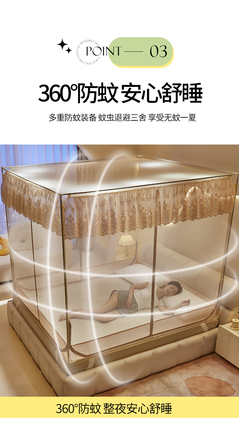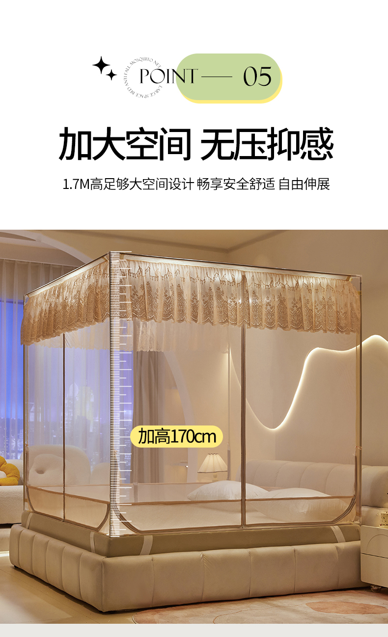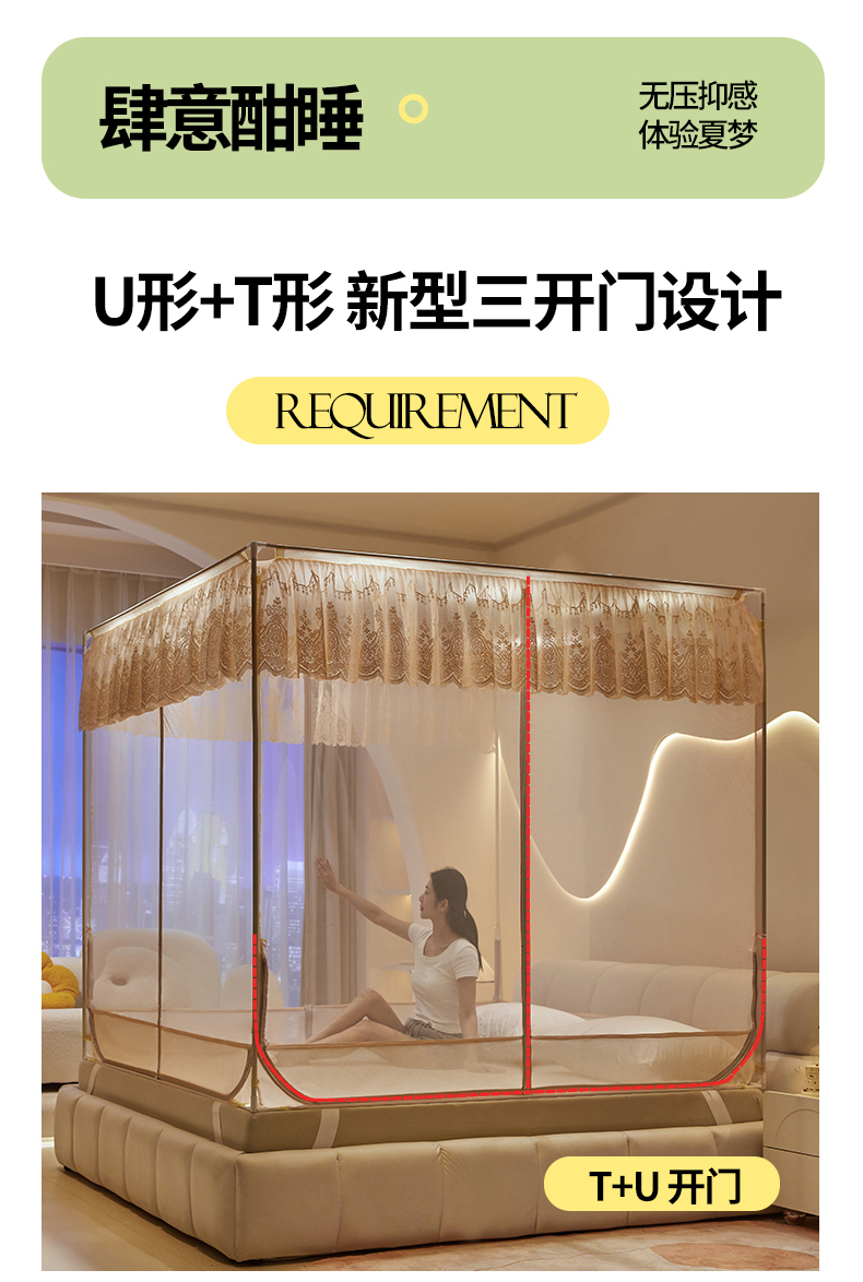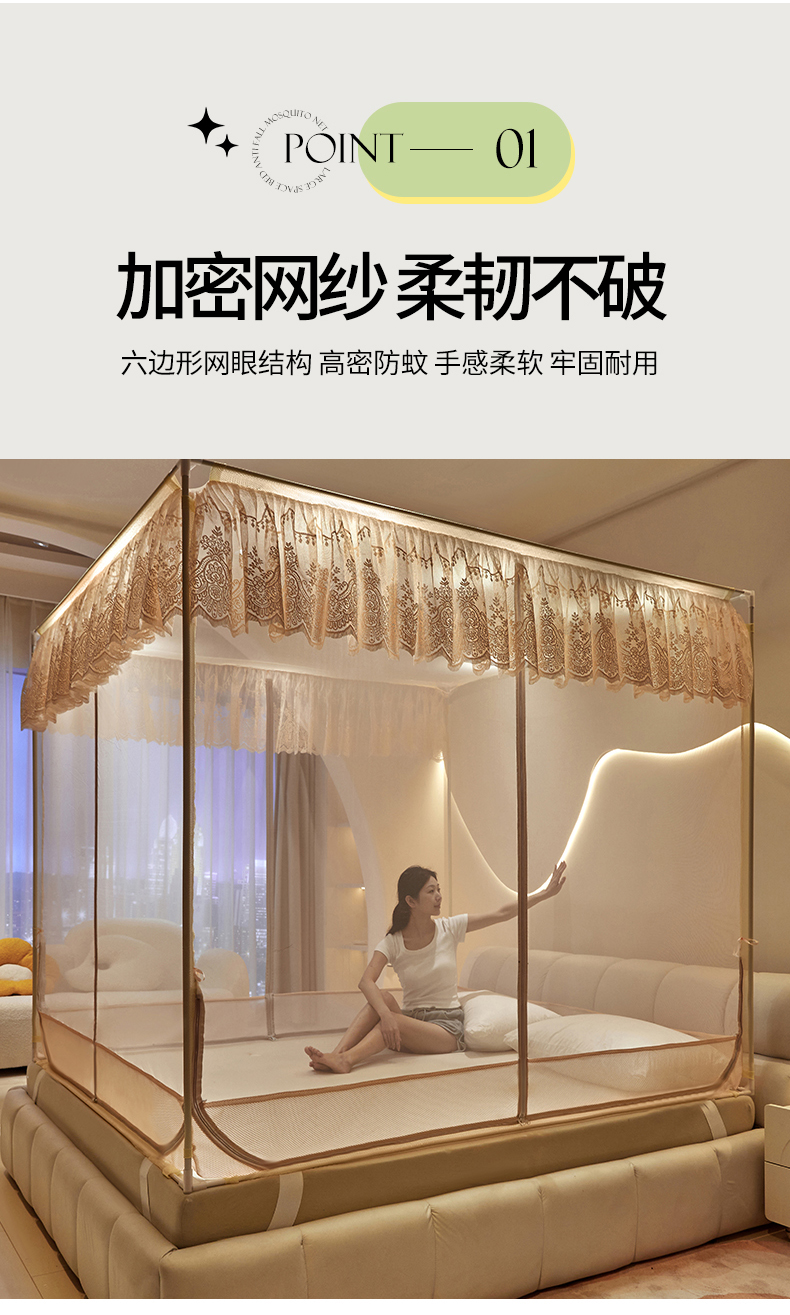 当前位置: 91家纺网 > 商品网购 > 床上用品 > 蚊帐 > 坐床式蚊帐 > 青竹苑 2025新款花边TU拉链外穿全底坐床蚊帐 奶咖色