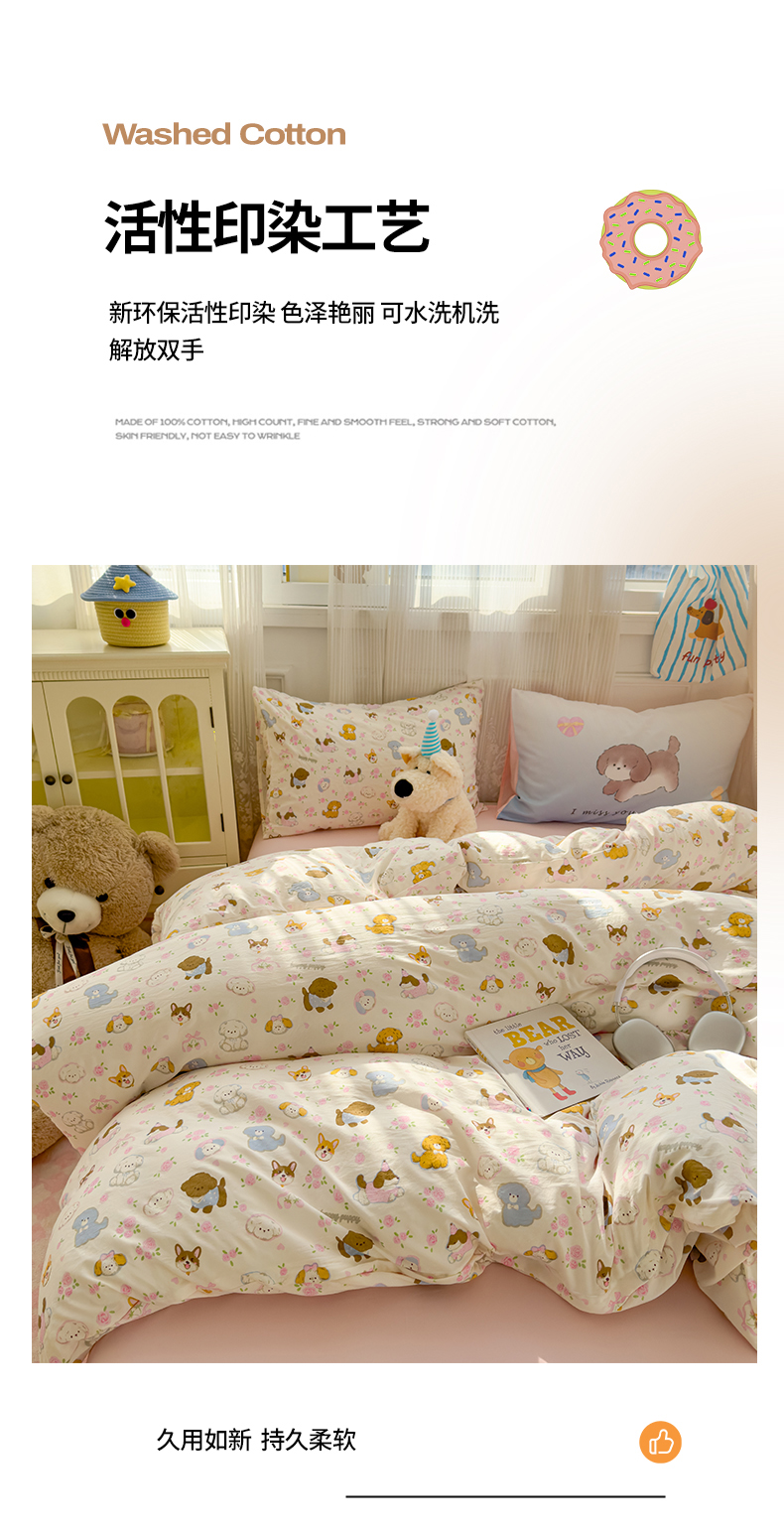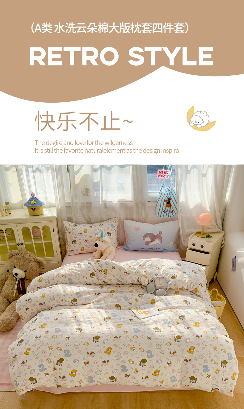 (总) 宏源家纺 2025新款A类高克重水洗云朵棉大版枕套四件套,哈喽猫粉,哈喽猫蓝,咖格小狗,可爱巴拉,恐龙时代,酷比红,腊肠狗,元气猫粉,元气猫绿