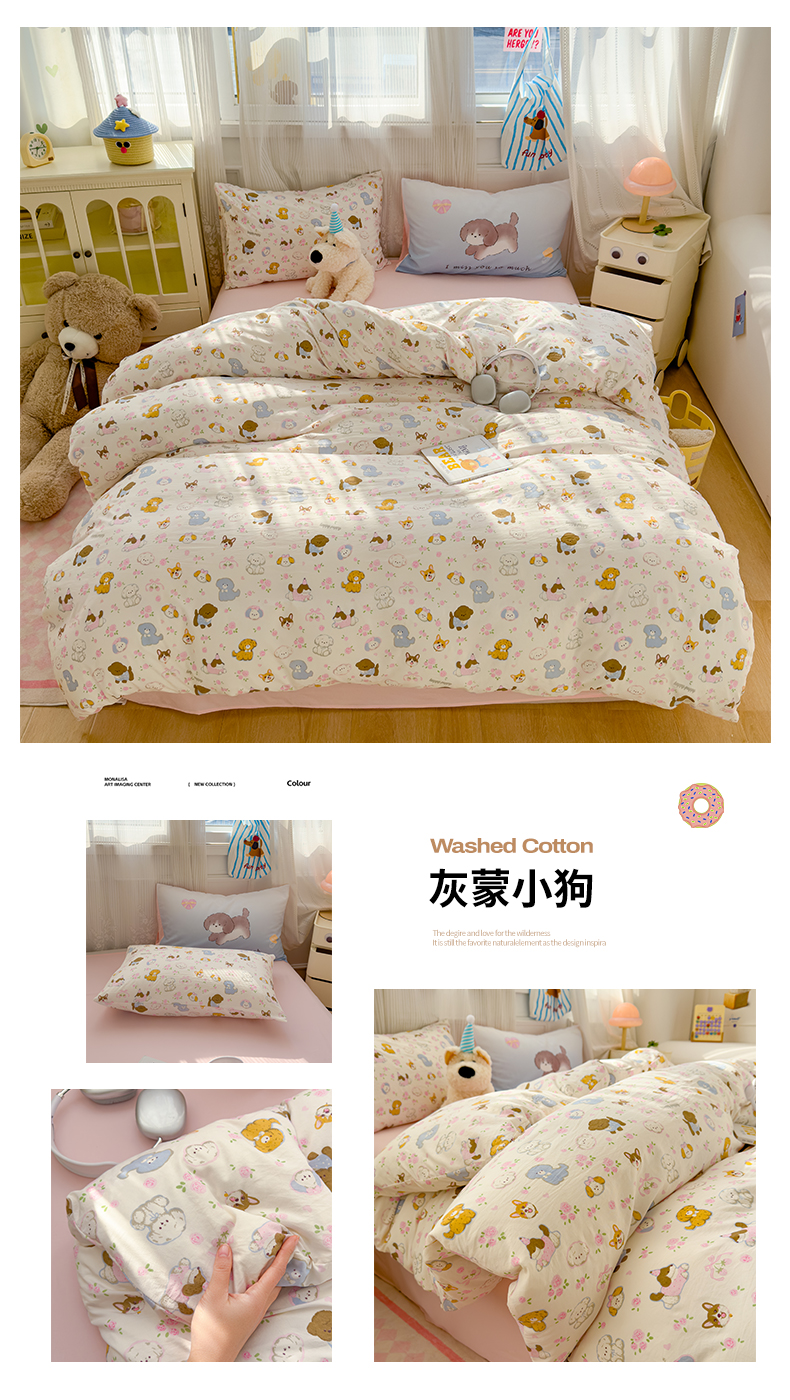 宏源家纺 2025新款A类水洗云朵棉单被套 灰蒙小狗