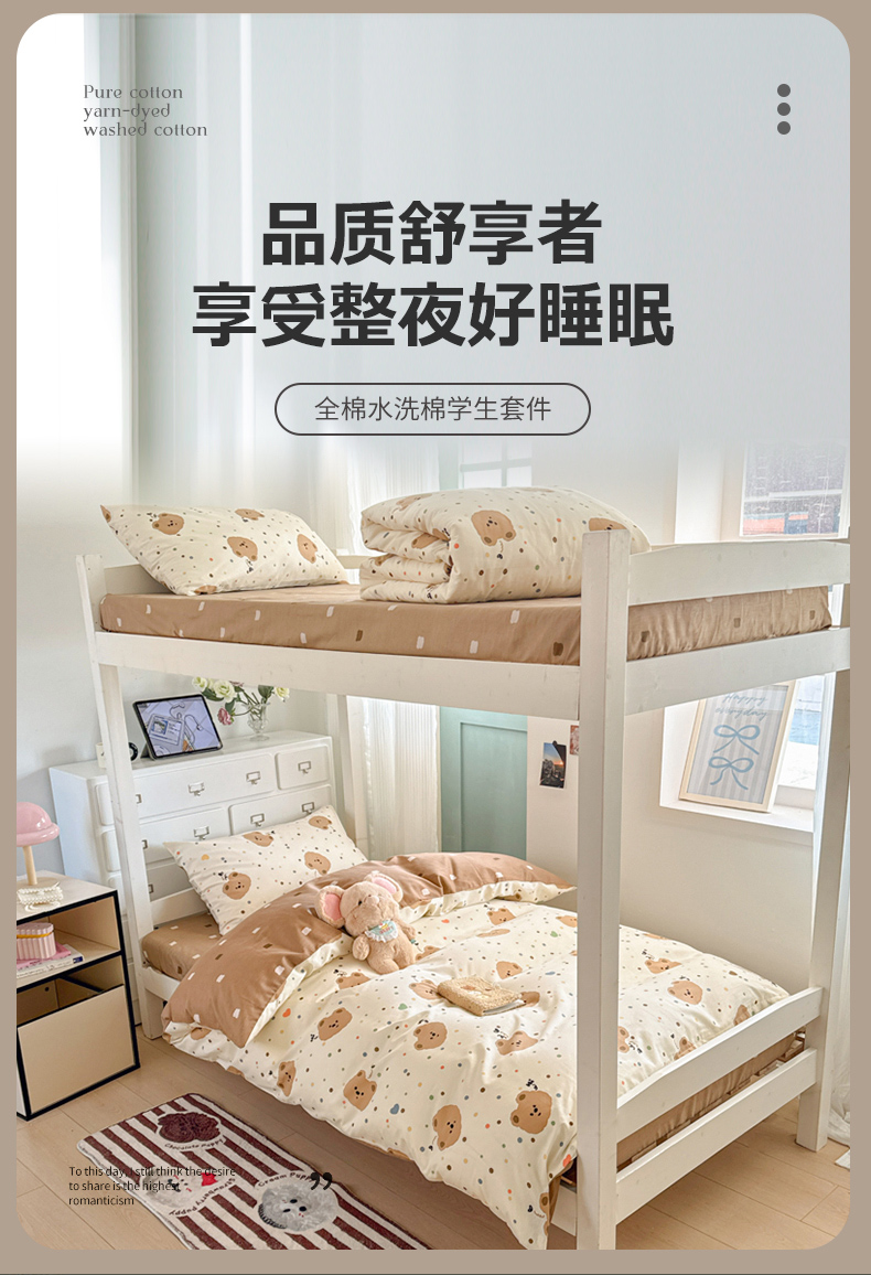 当前位置: 91家纺网 > 商品网购 > 床品套件 > 三件套 > 寻米 2025新款13070全棉水洗棉学生三件套 小熊软糖-巧克力