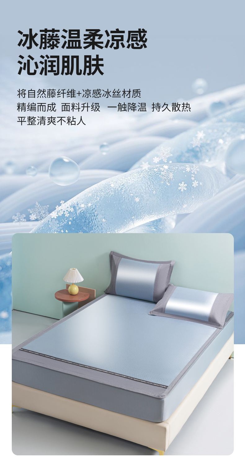 (总)阿牛席业 2025新款冰藤凉席系列冰藤抑菌凉席,抑菌冰藤席-灰【条席款】,抑菌冰藤席-蓝【条席款】
