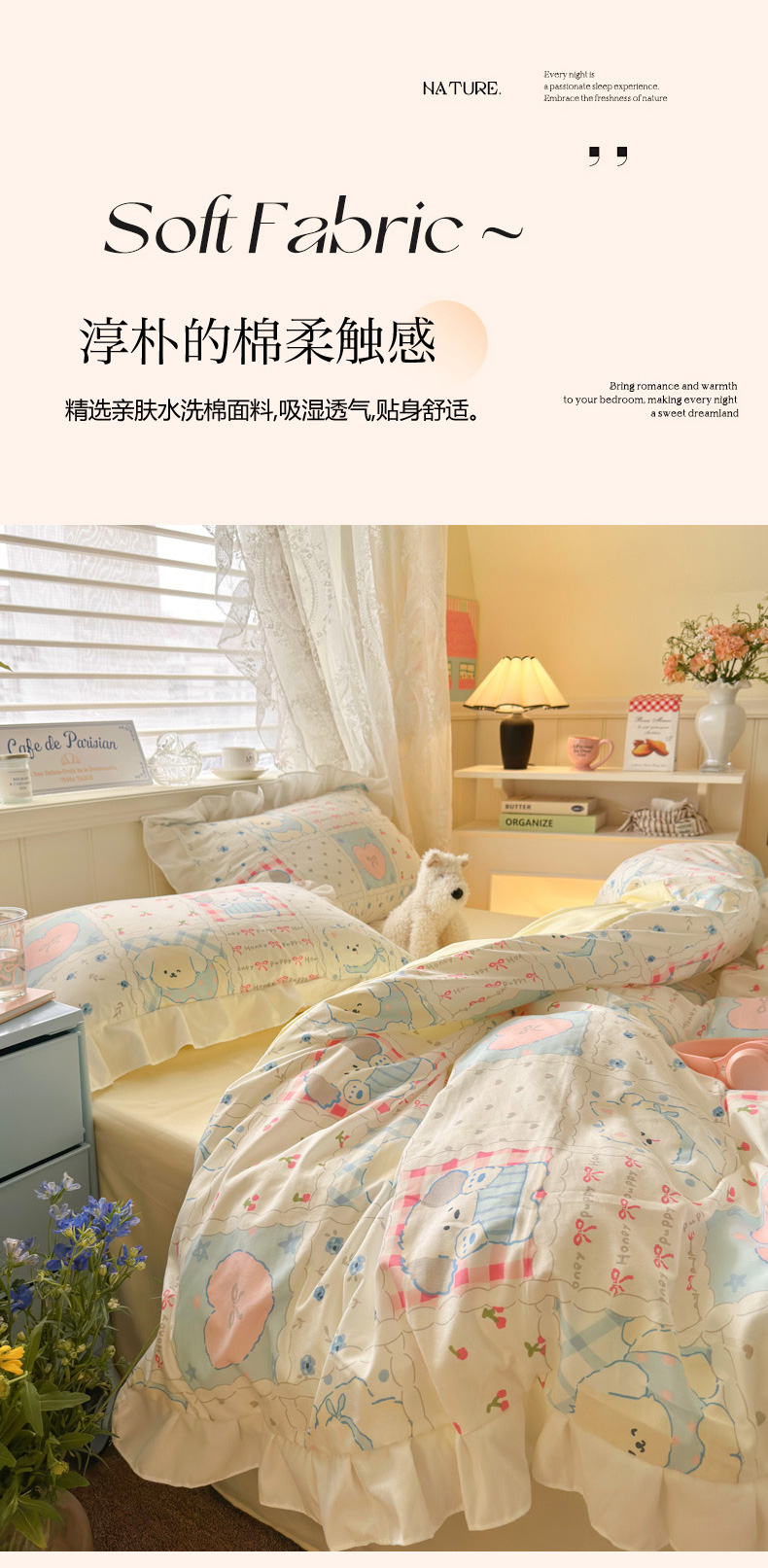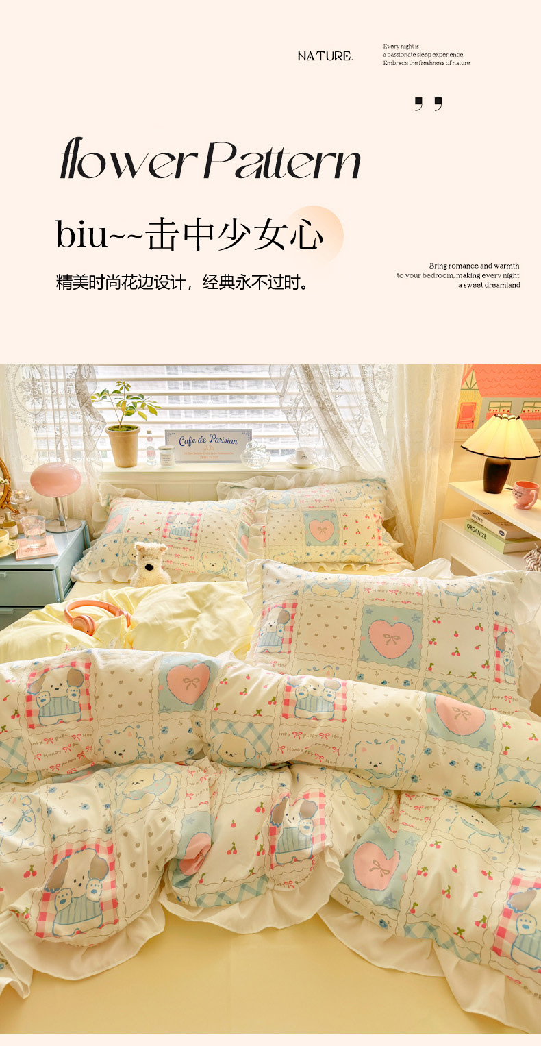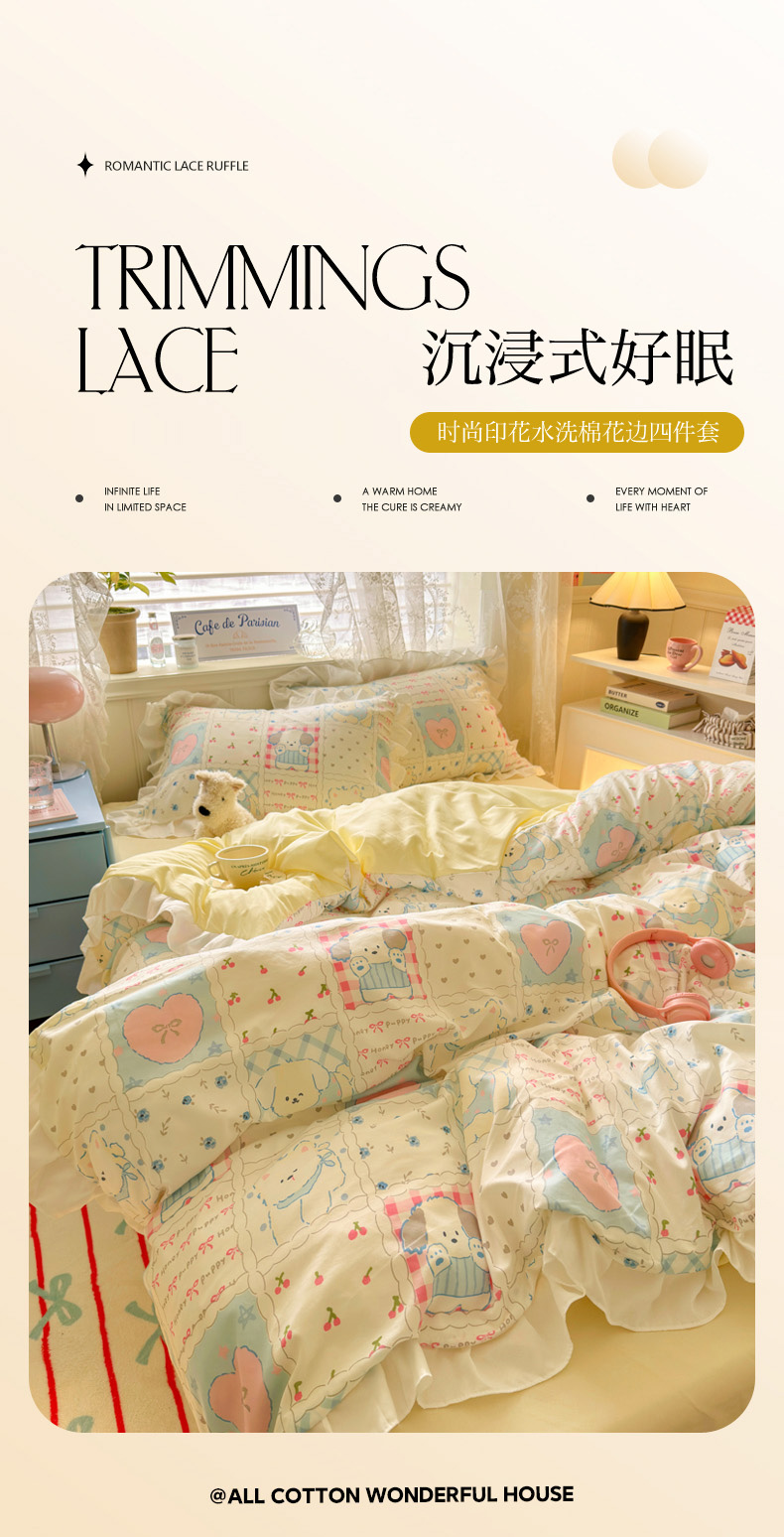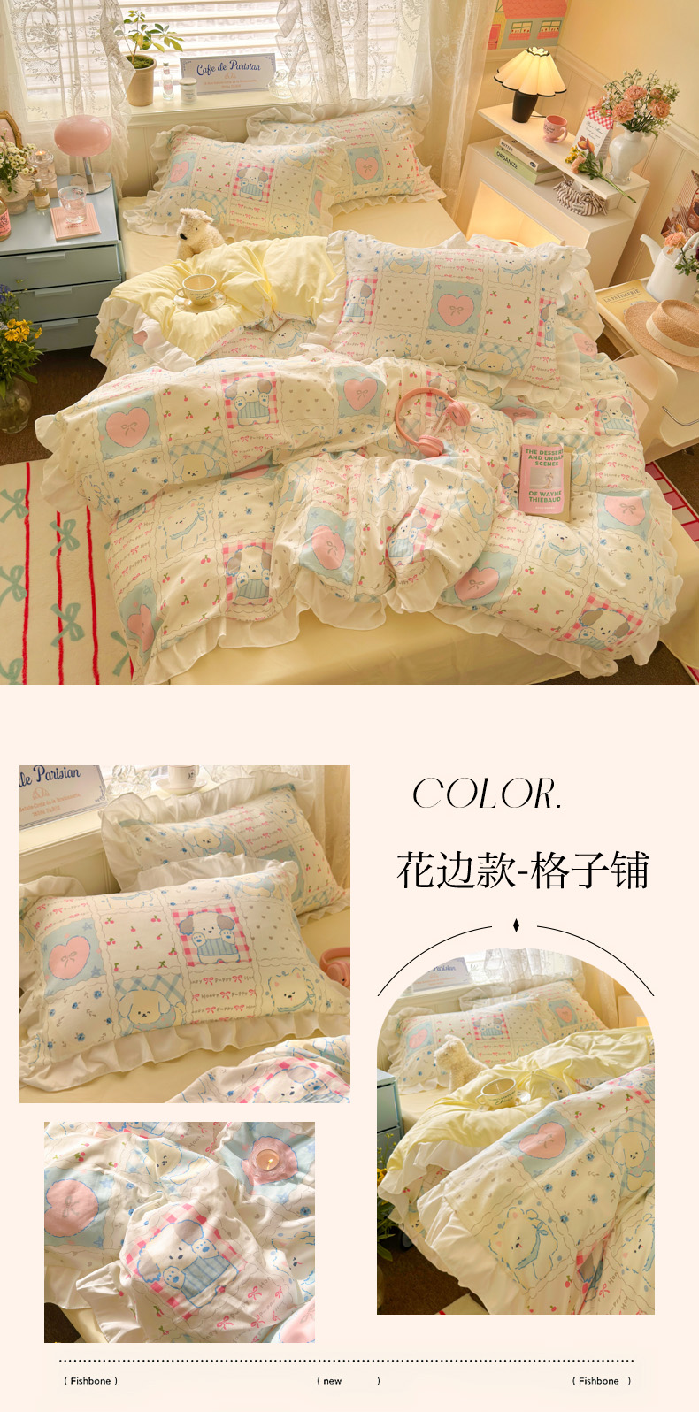 当前位置: 91家纺网 > 商品网购 > 床品套件 > 四件套 > 水洗棉四件套 > 慕澄家纺 2025新款法式浪漫风花边款水洗棉四件套 花边款-格子铺