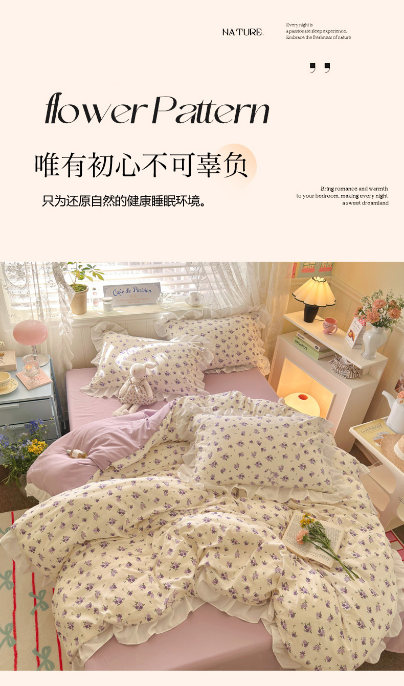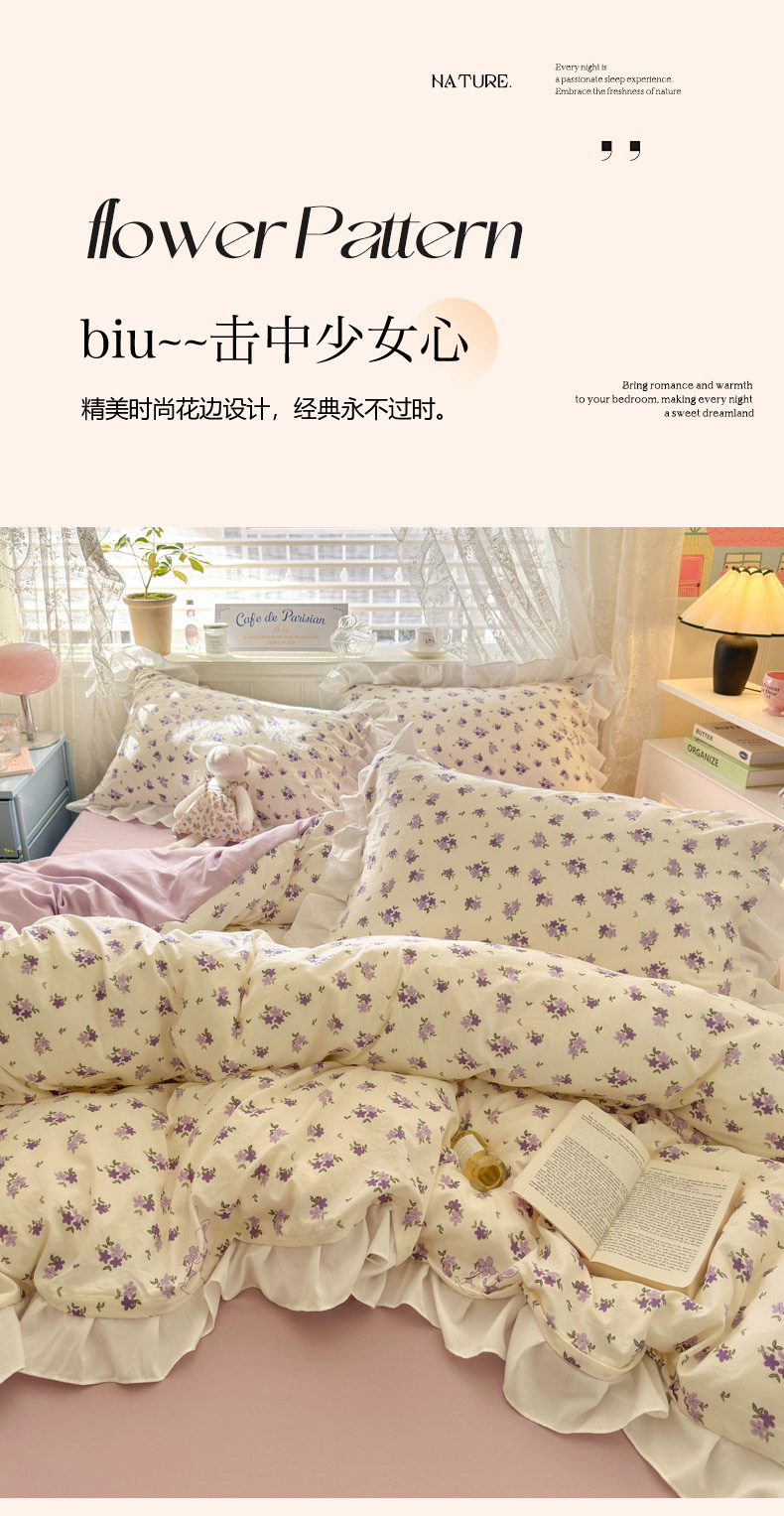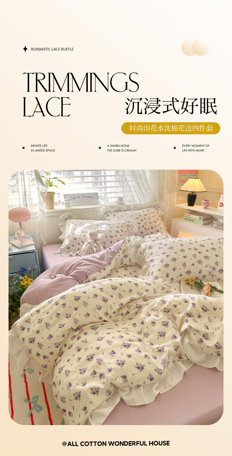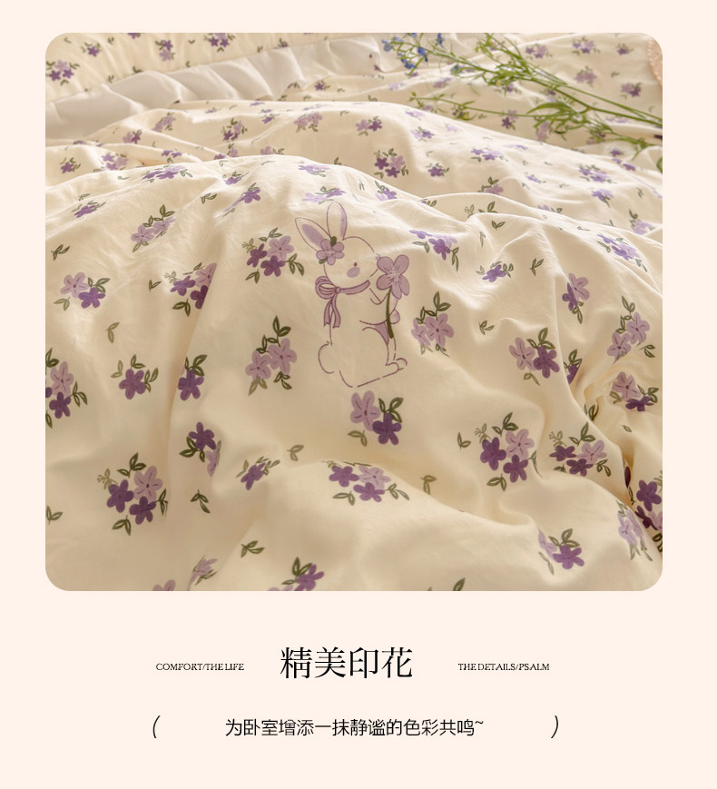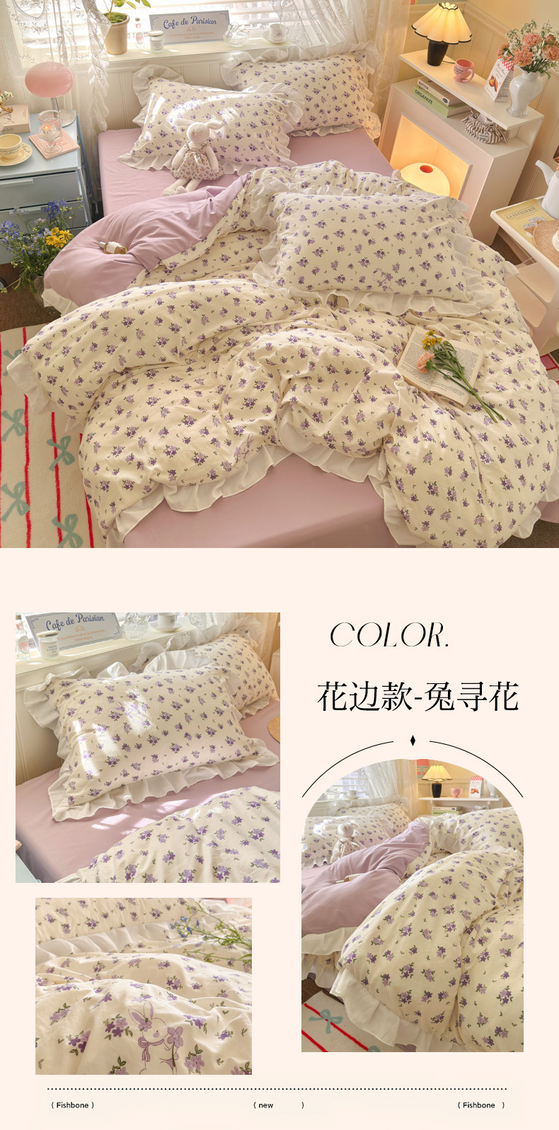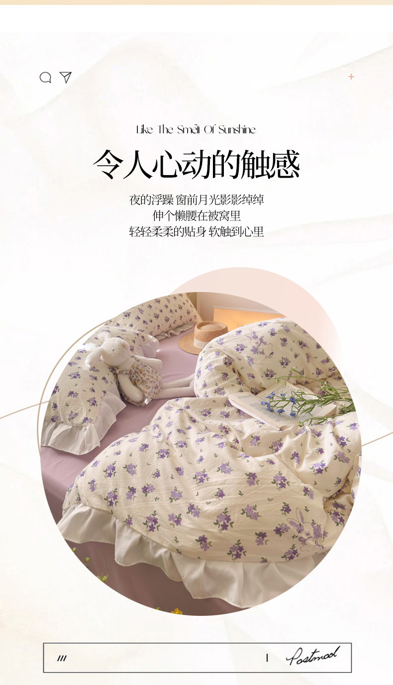 当前位置: 91家纺网 > 商品网购 > 床品套件 > 四件套 > 水洗棉四件套 > 慕澄家纺 2025新款法式浪漫风花边款水洗棉四件套 花边款-兔寻花