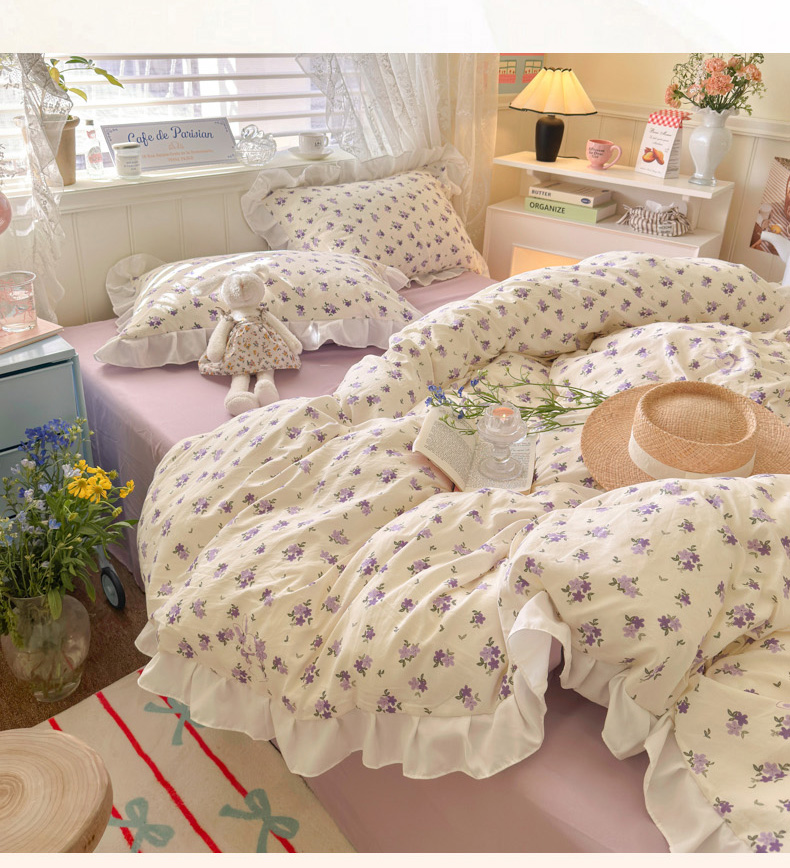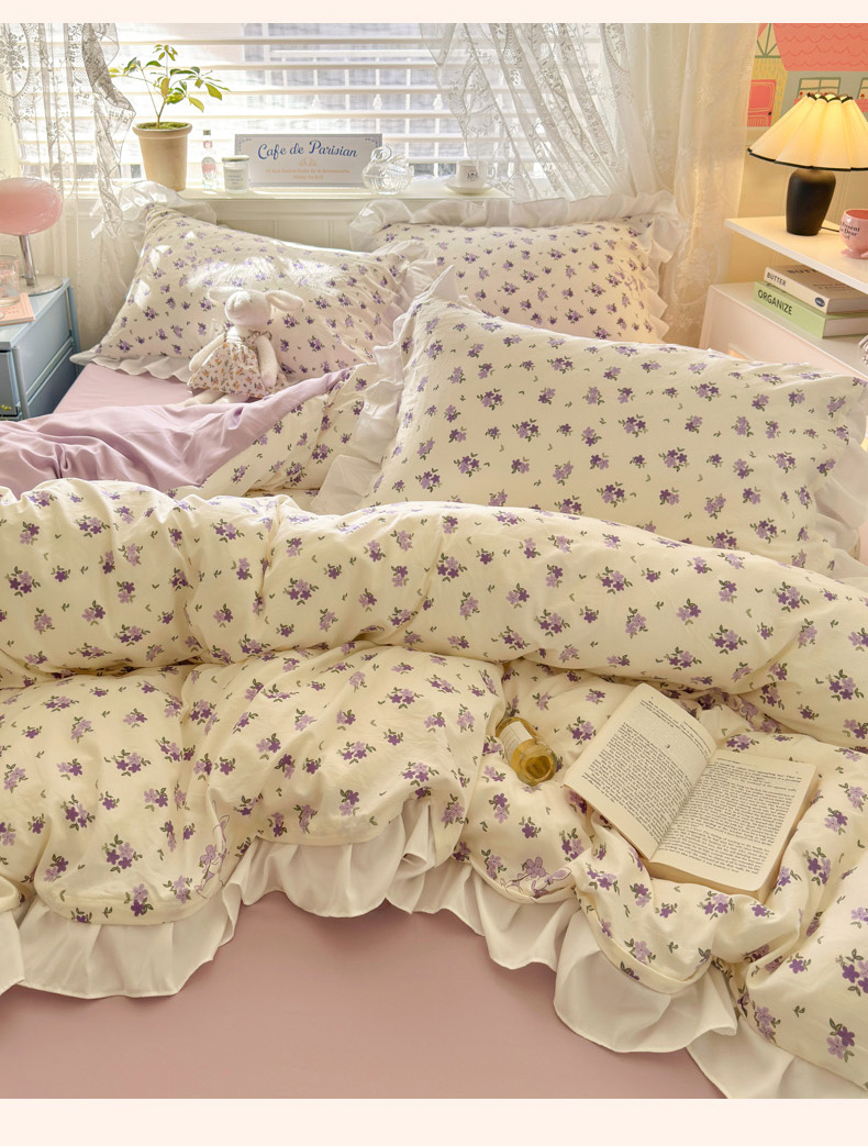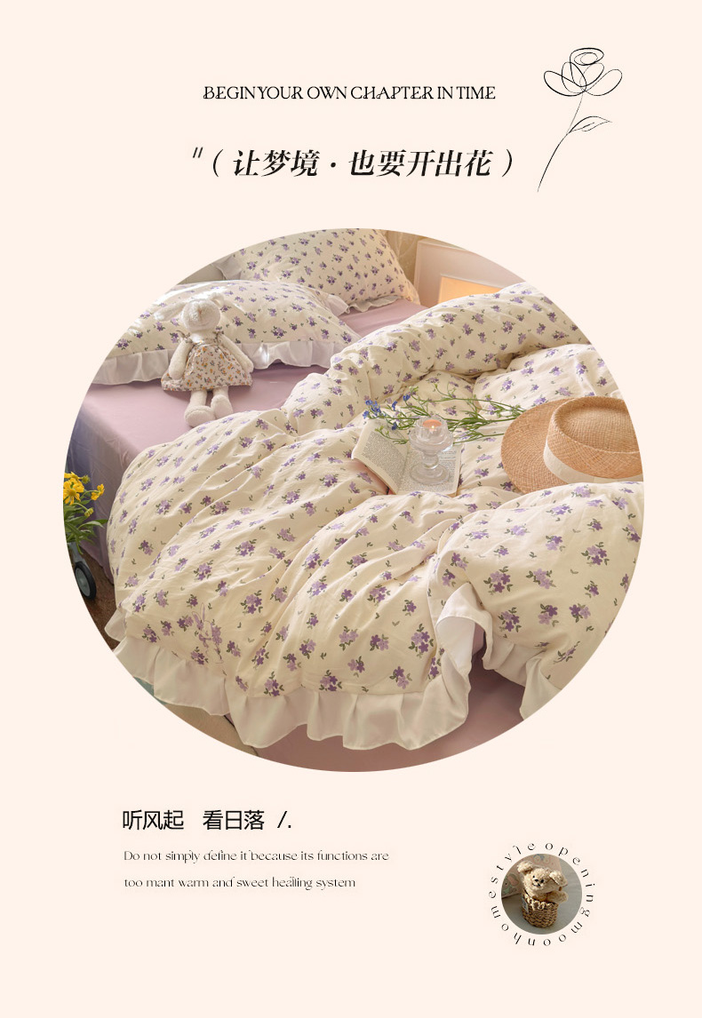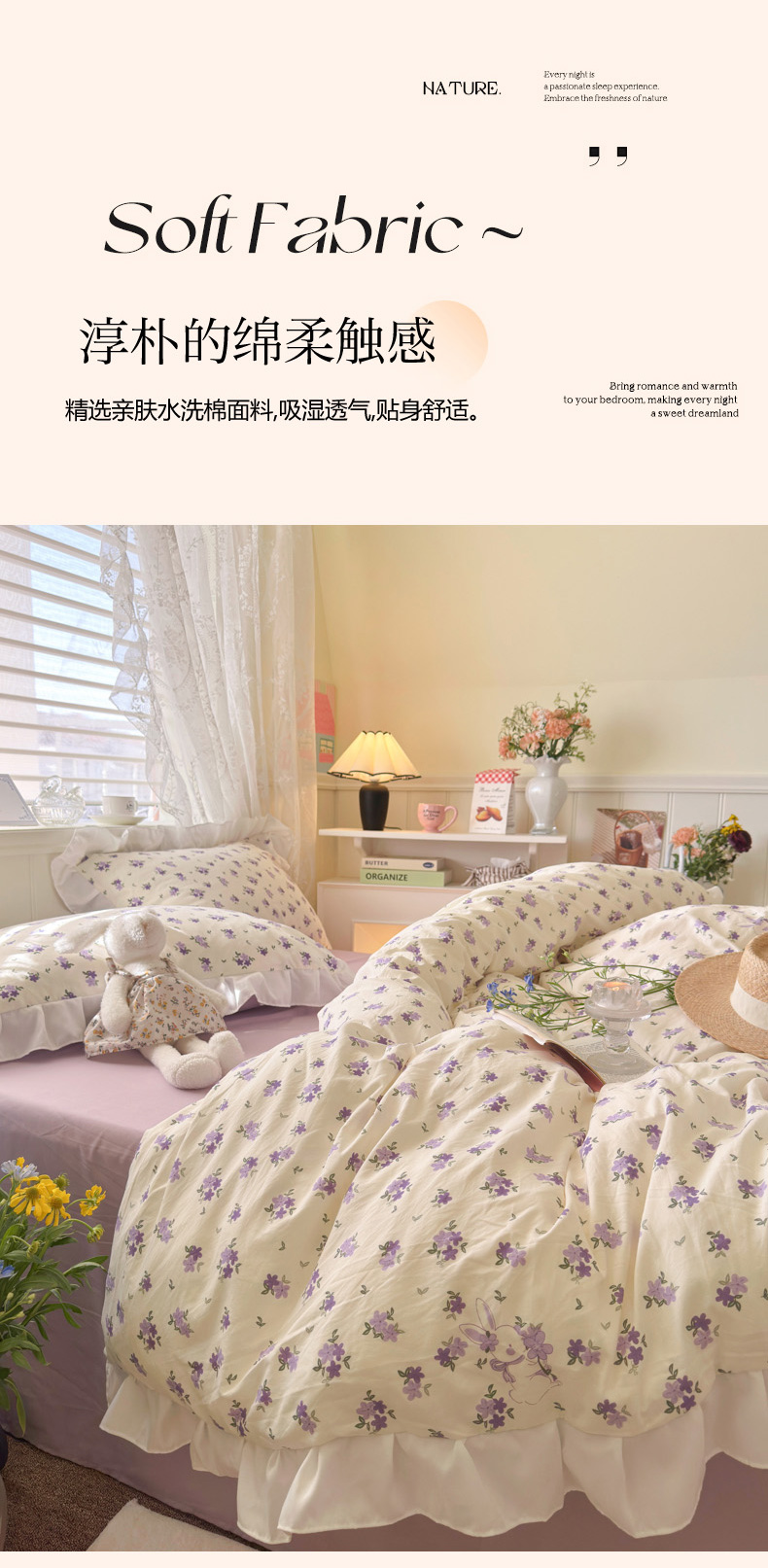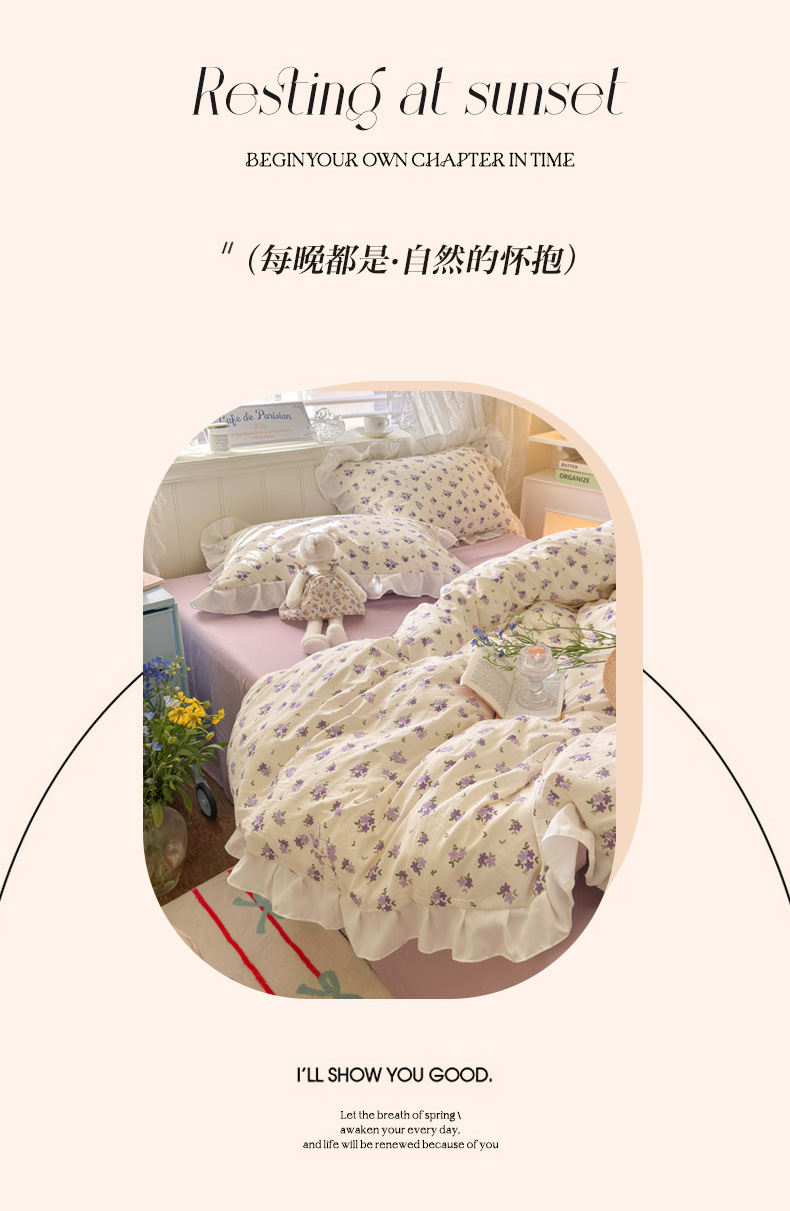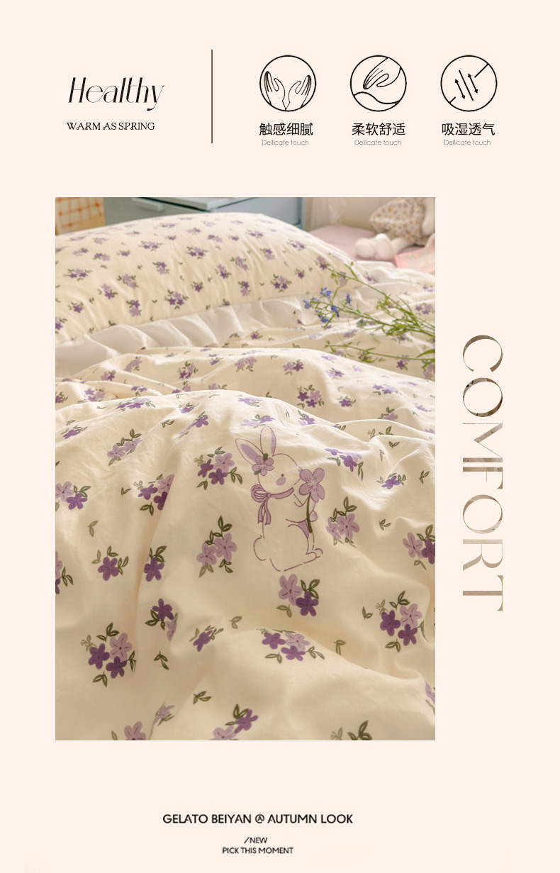 当前位置: 91家纺网 > 商品网购 > 床品套件 > 四件套 > 水洗棉四件套 > 慕澄家纺 2025新款法式浪漫风花边款水洗棉四件套 花边款-兔寻花