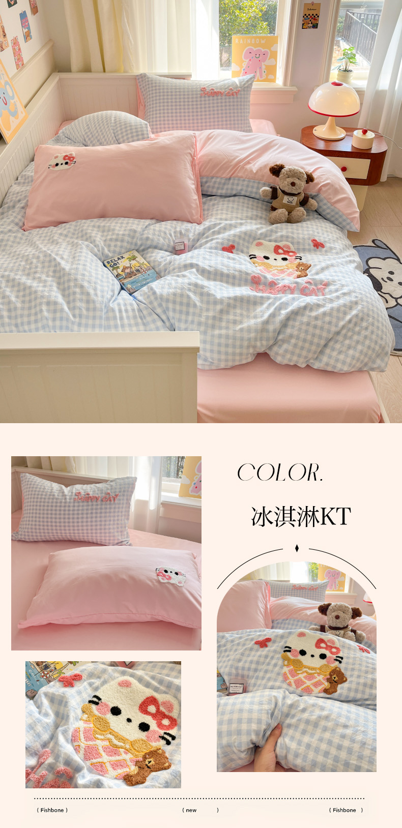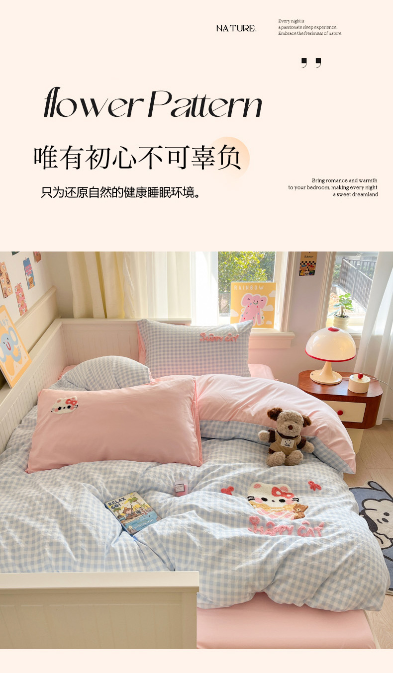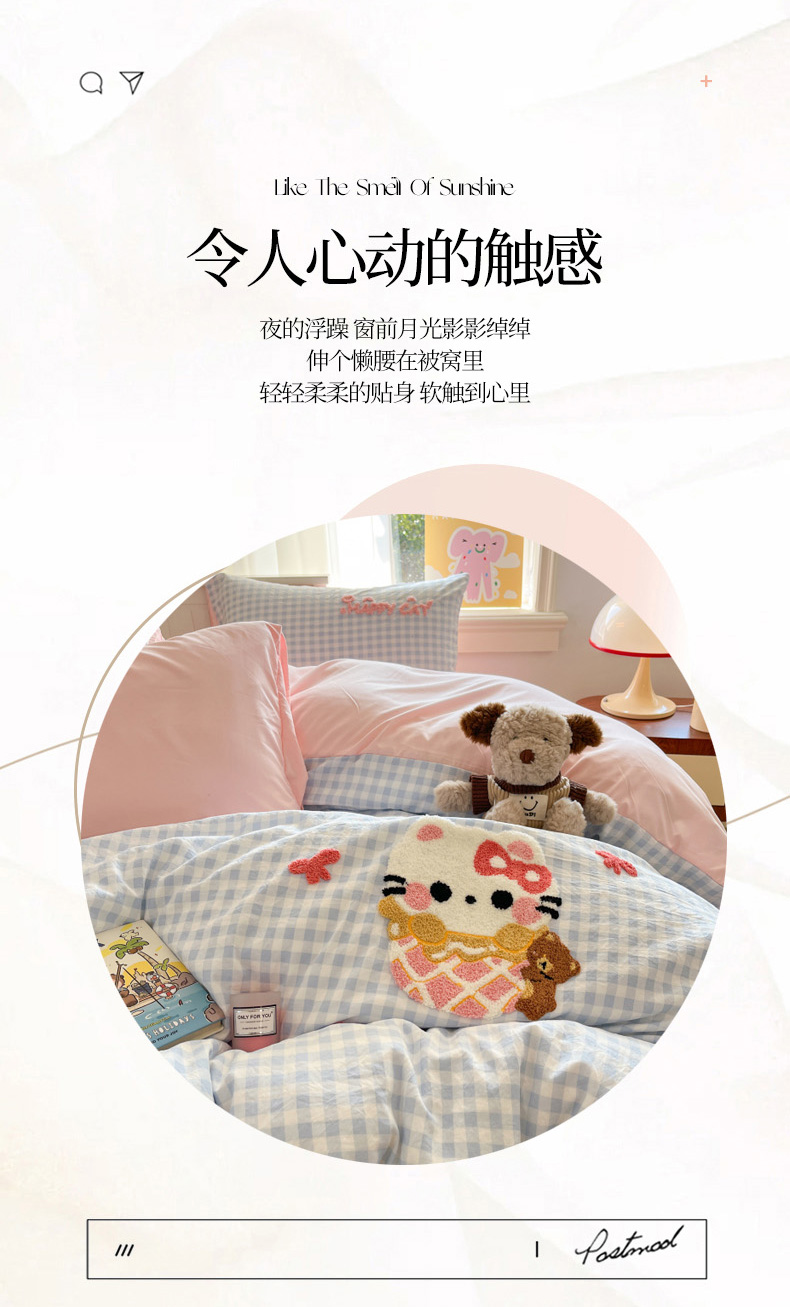 当前位置: 91家纺网 > 商品网购 > 床品套件 > 四件套 > 毛巾绣四件套 > 葡萄家 2025专版高克重超萌卡通格子双拼毛巾绣软糯糯水洗棉四件套 冰淇淋KT