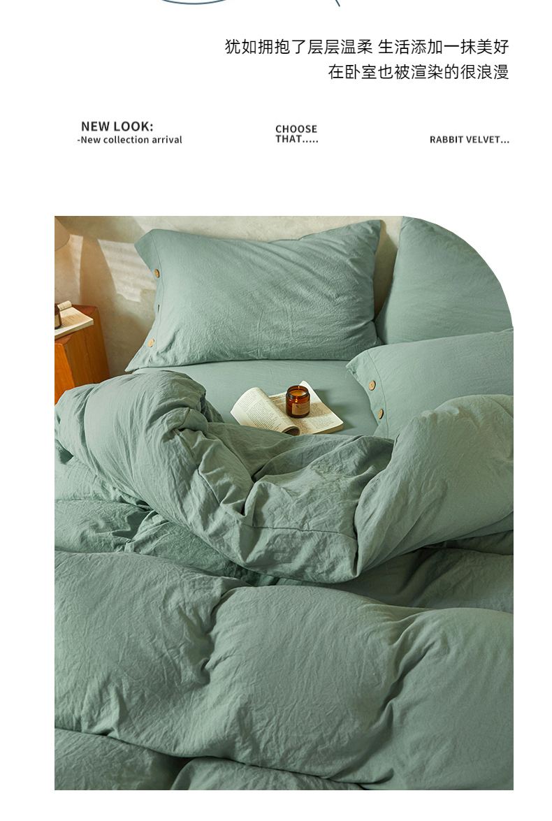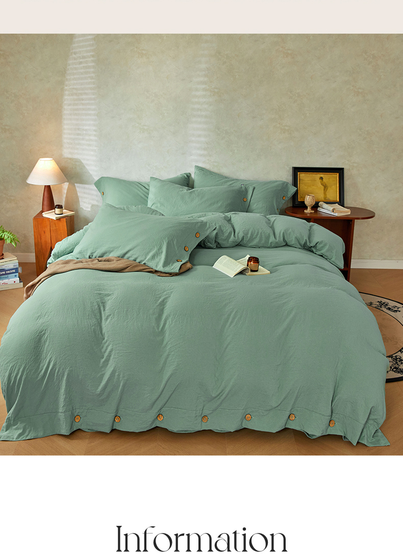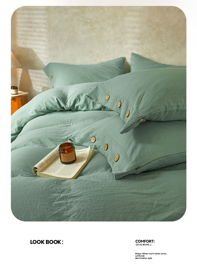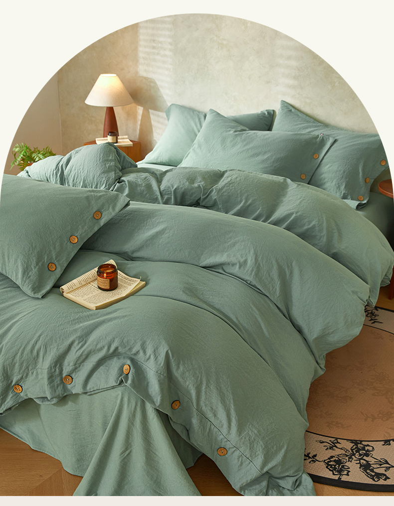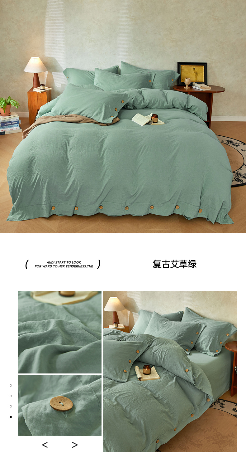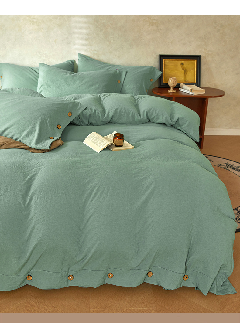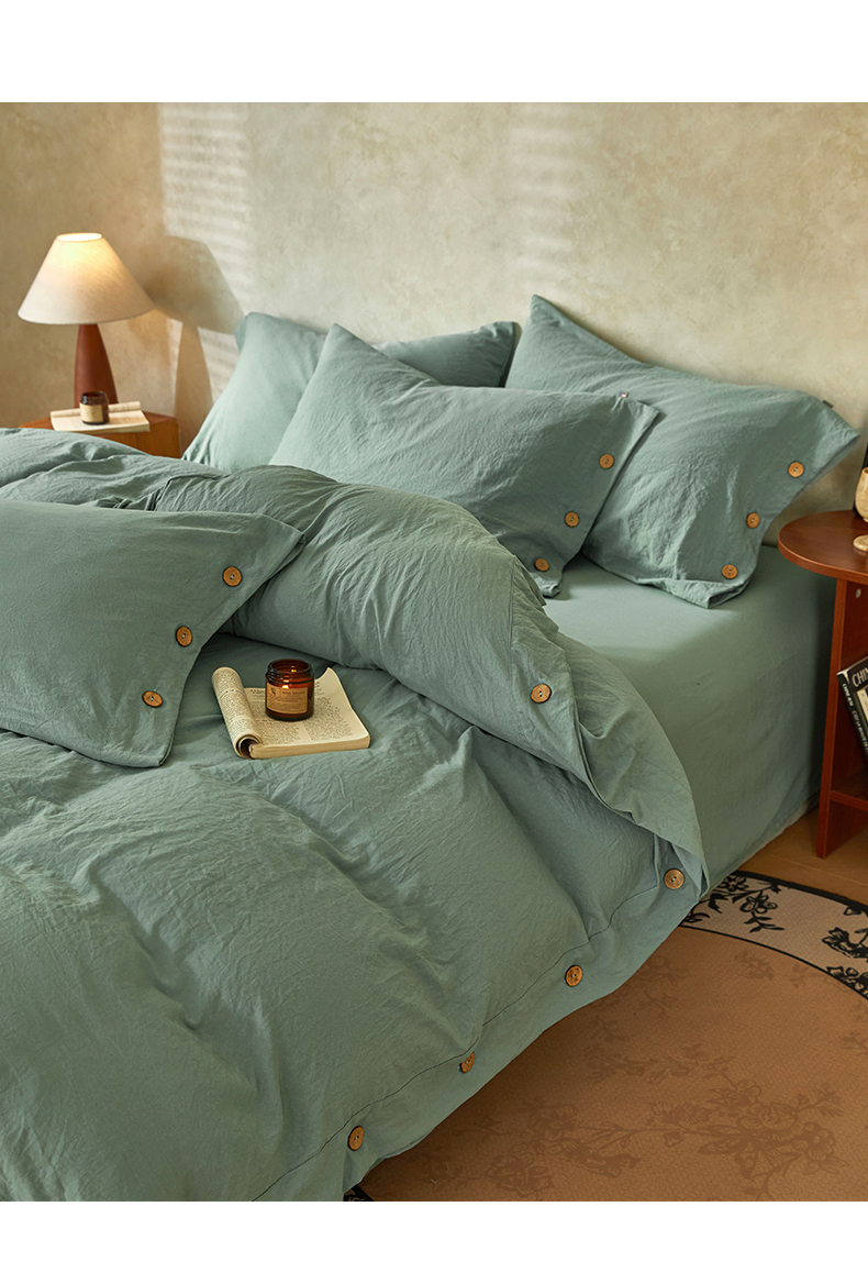 当前位置: 91家纺网 > 商品网购 > 床品套件 > 四件套 > 水洗棉四件套 > yyds网供 2025新款A类高克重侘寂风纽扣款四件套复古加厚非全棉纯棉日式水洗棉三件套【有买家秀,会员-5】 松石绿-侘寂风复古纽扣款