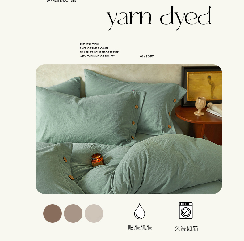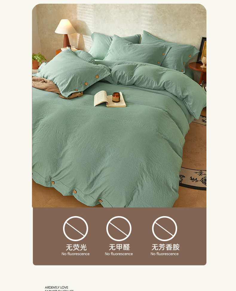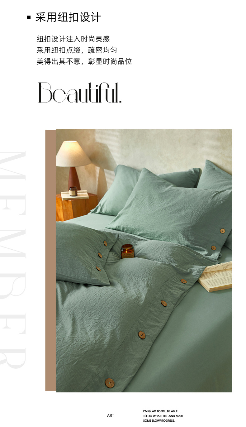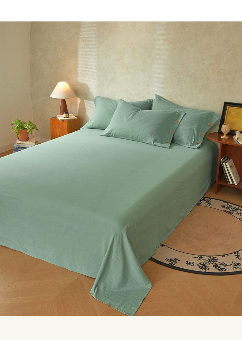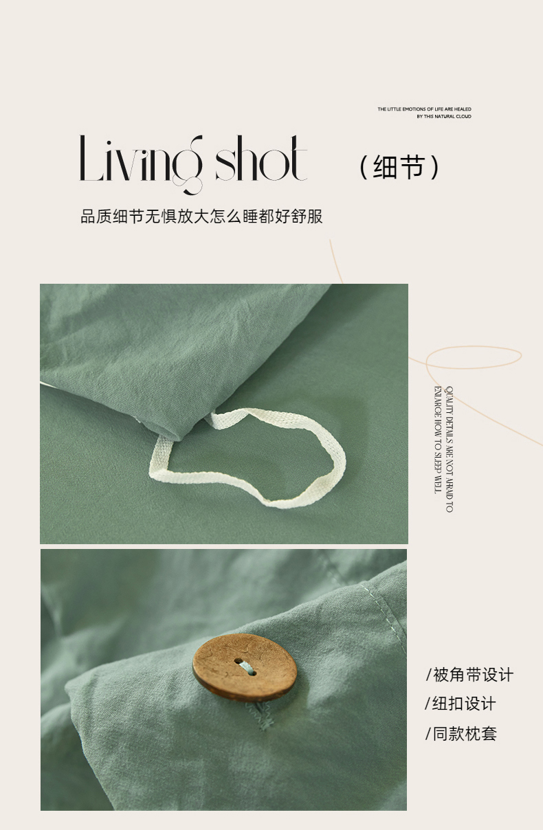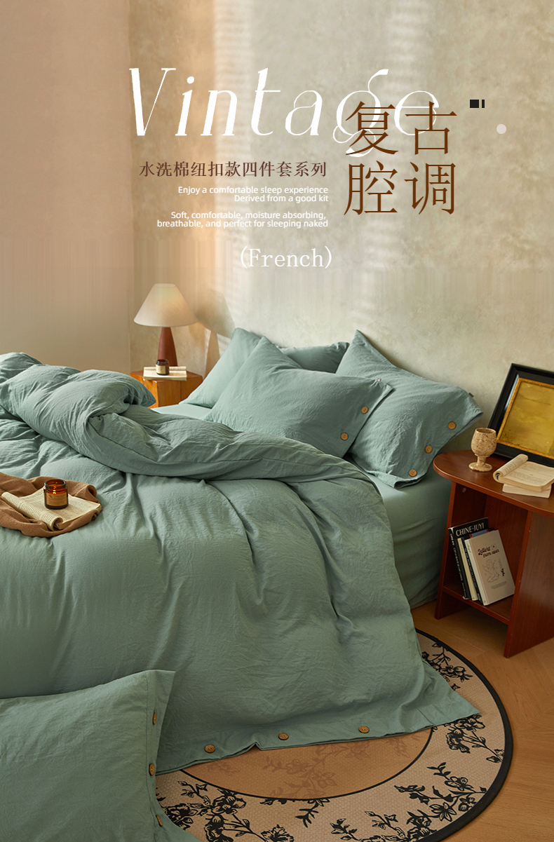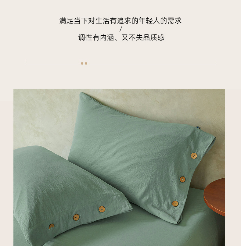当前位置: 91家纺网 > 商品网购 > 床品套件 > 四件套 > 水洗棉四件套 > yyds网供 2025新款A类高克重侘寂风纽扣款四件套复古加厚非全棉纯棉日式水洗棉三件套【有买家秀,会员-5】 松石绿-侘寂风复古纽扣款