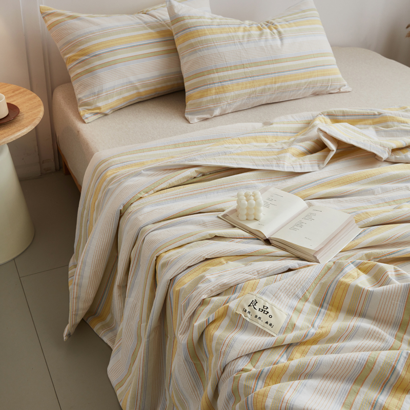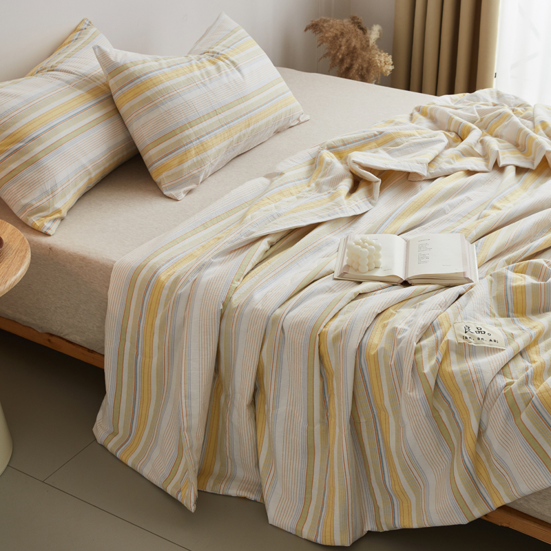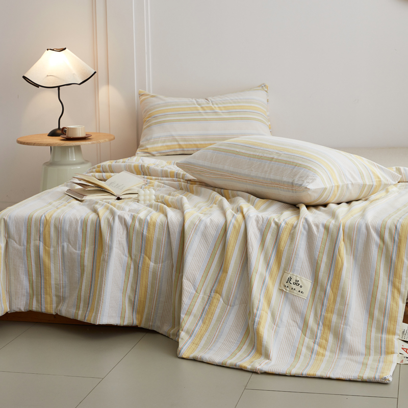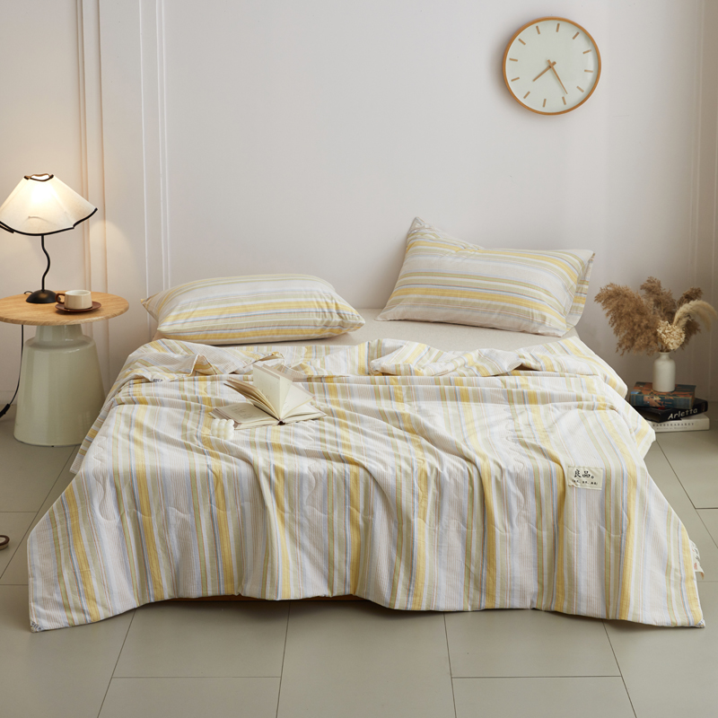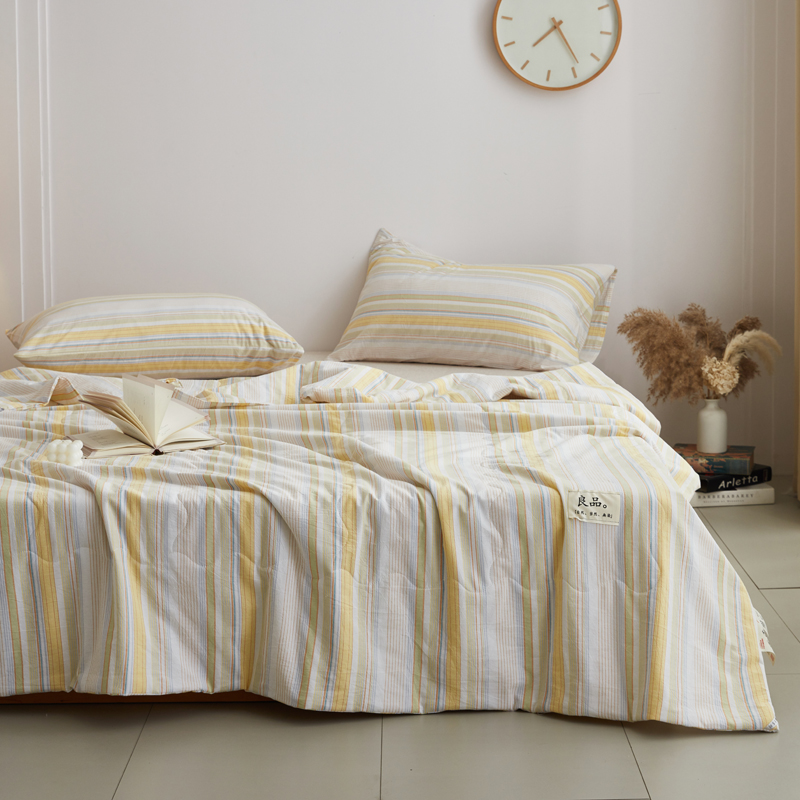 • 91家纺网 家纺一手货源 找家纺 尊妙被业 2025新款全棉色织水洗棉夏被 沐妍-黄