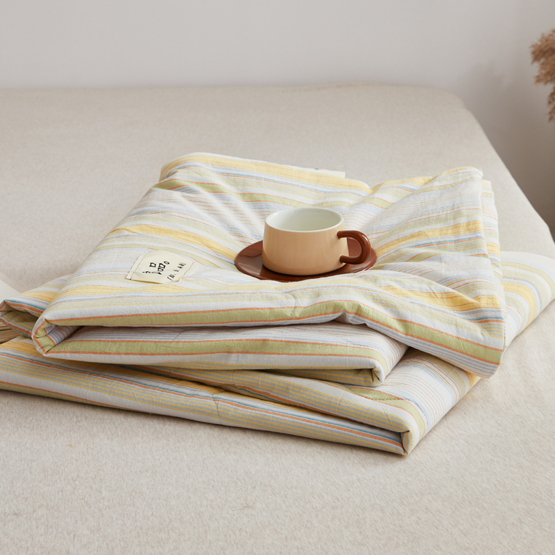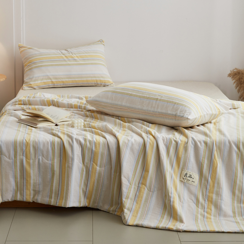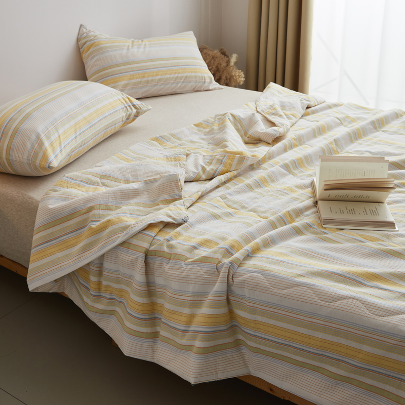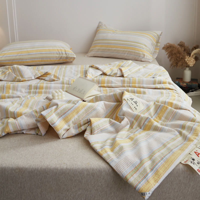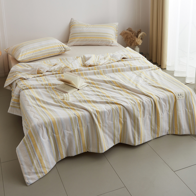 • 91家纺网 家纺一手货源 找家纺 尊妙被业 2025新款全棉色织水洗棉夏被 沐妍-黄