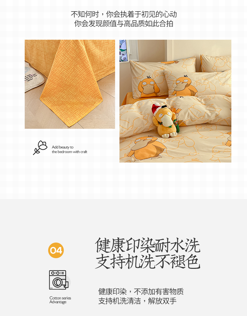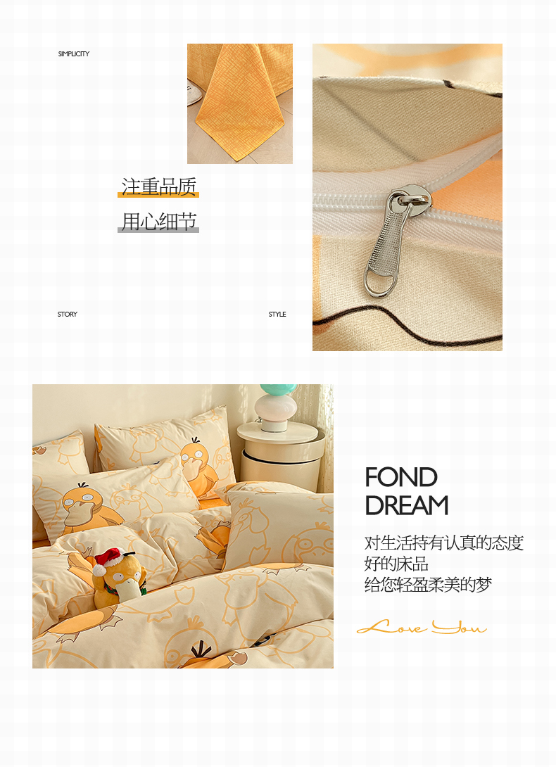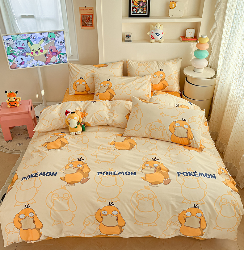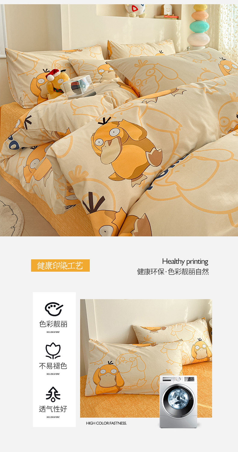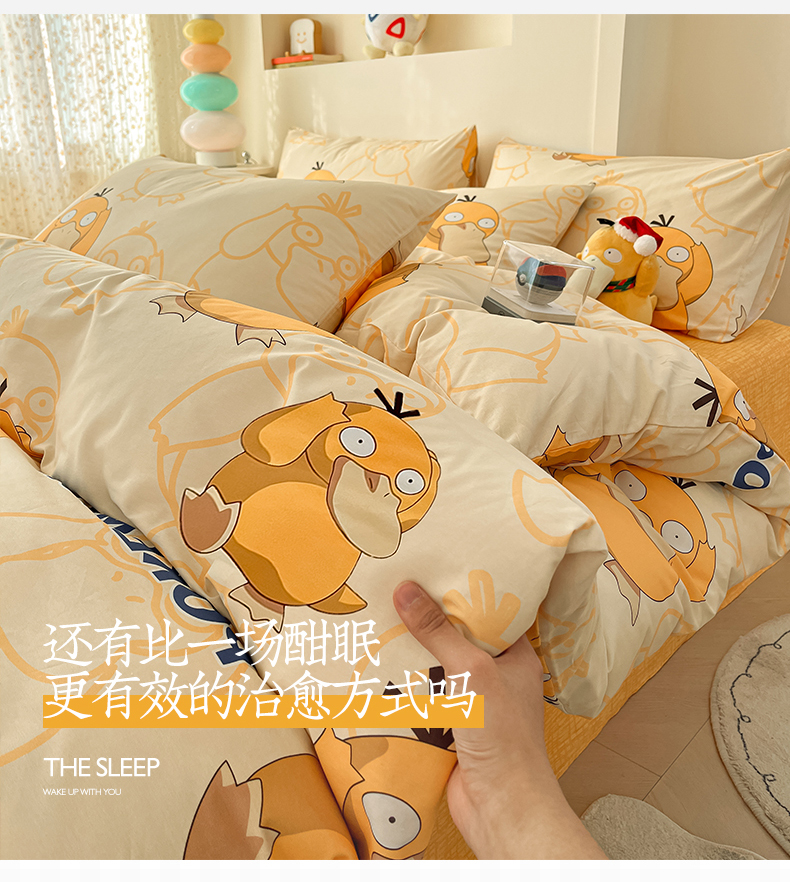 当前位置: 91家纺网 > 商品网购 > 床品套件 > 四件套 > 全棉普通四件套 > 桃子家居 2025新款宝可梦正版授权皮卡丘纯棉印花系列四件套 棉宝可梦-奶黄可达鸭