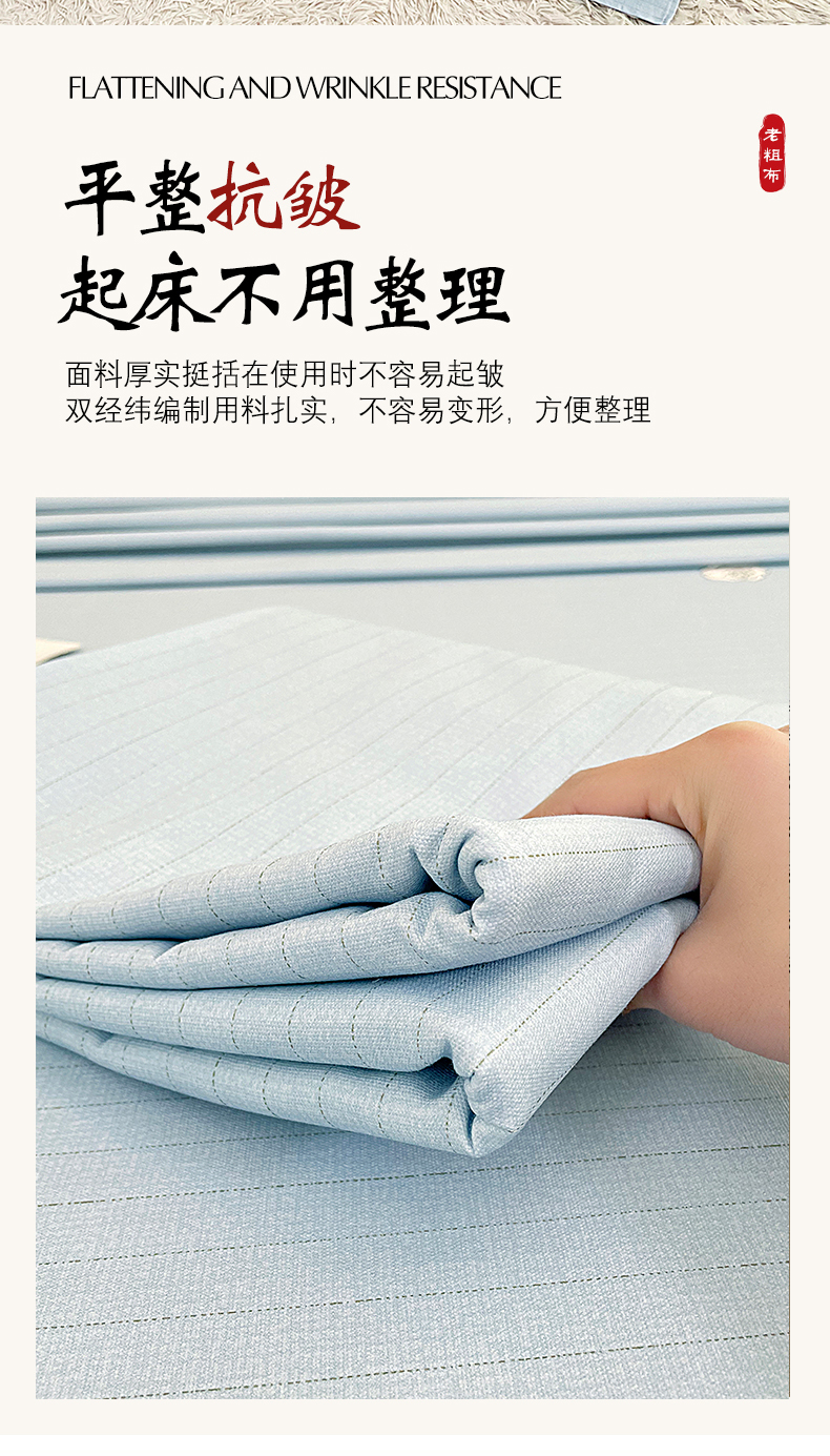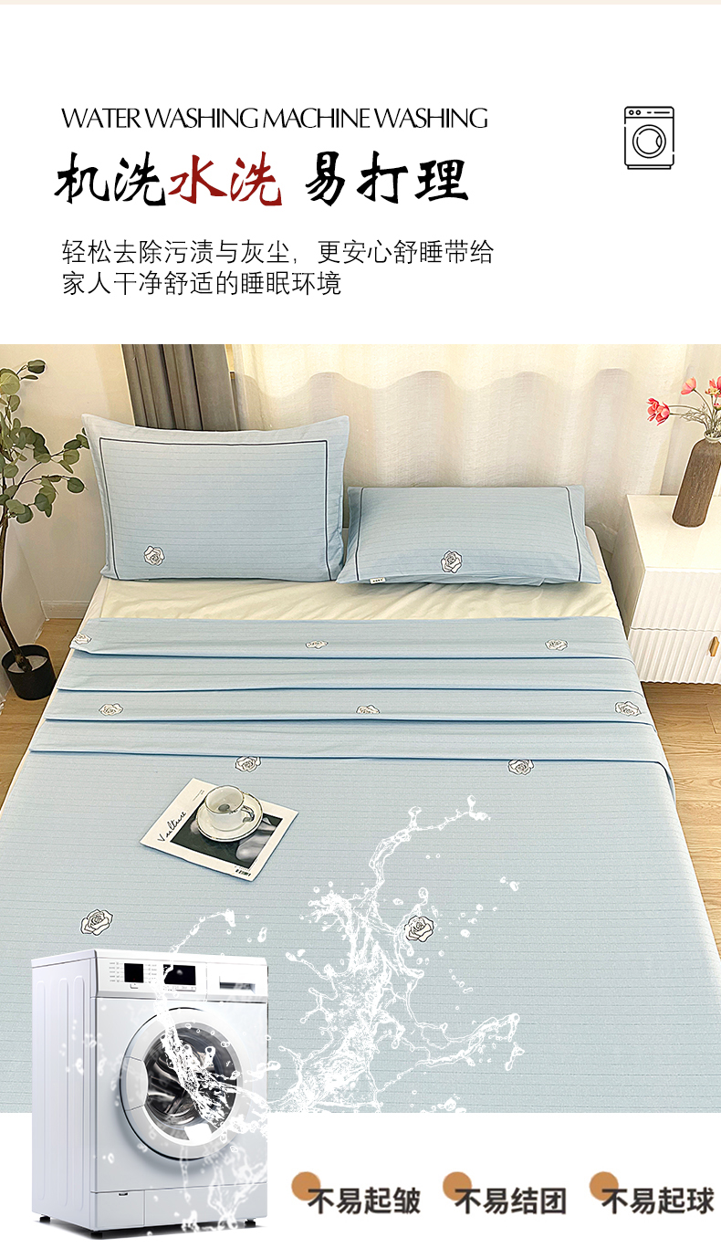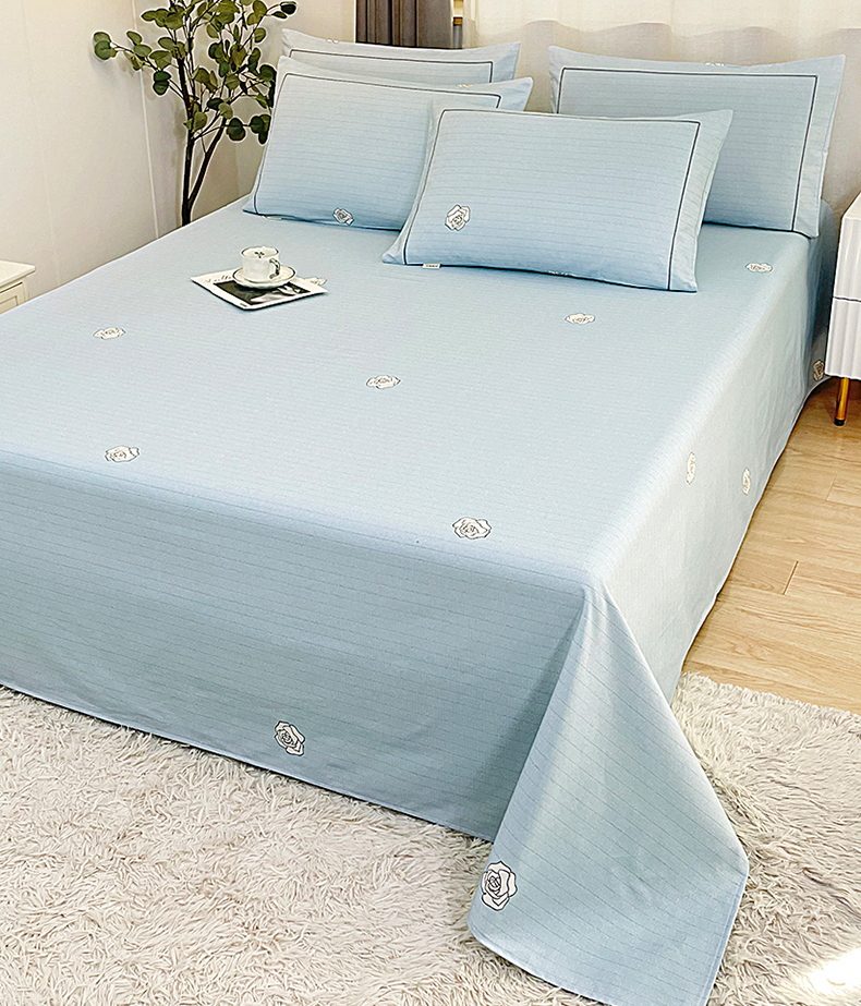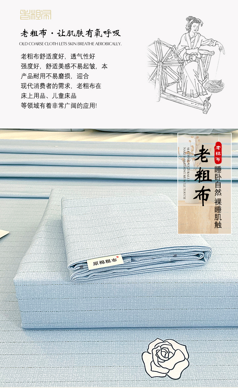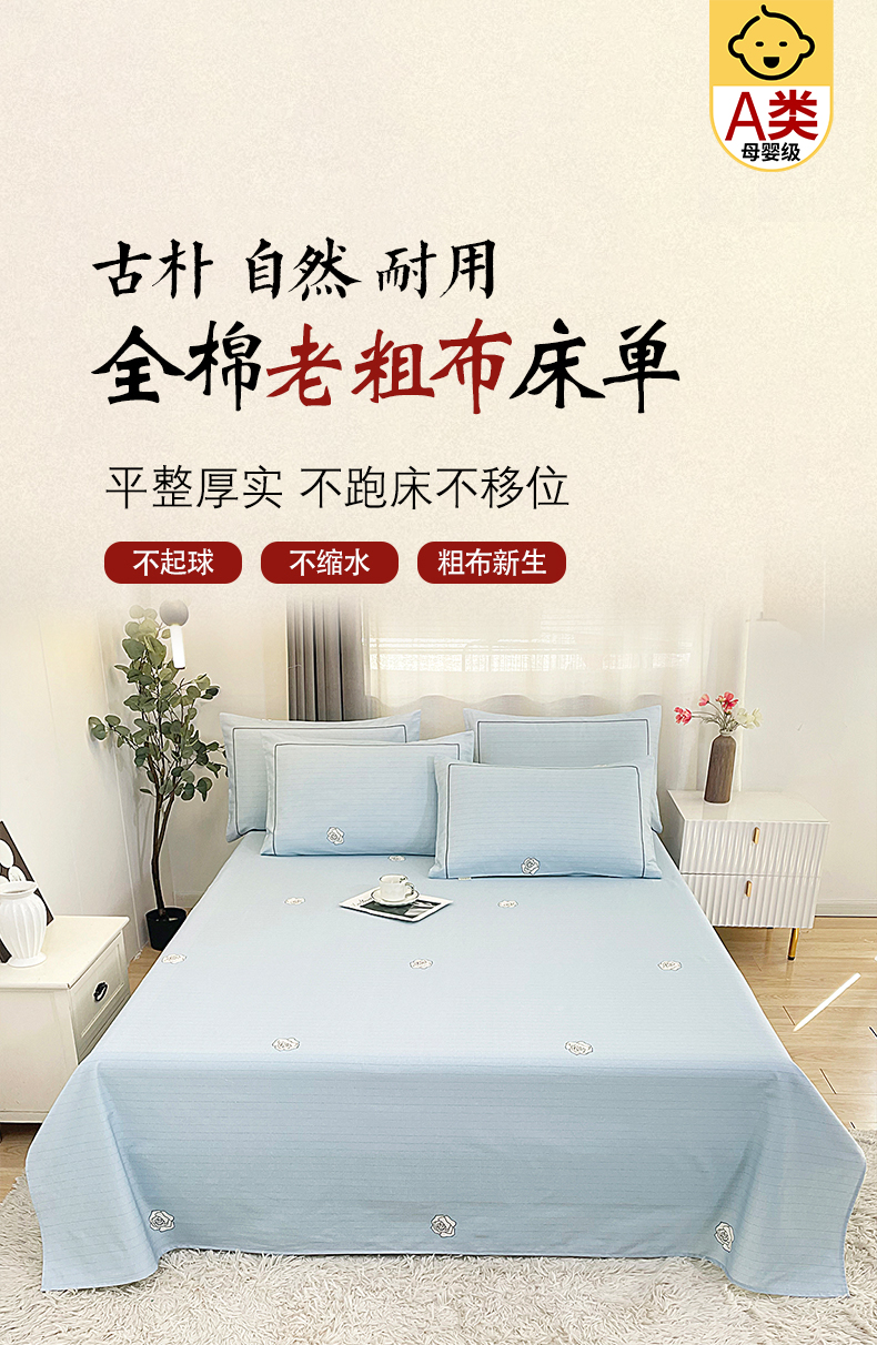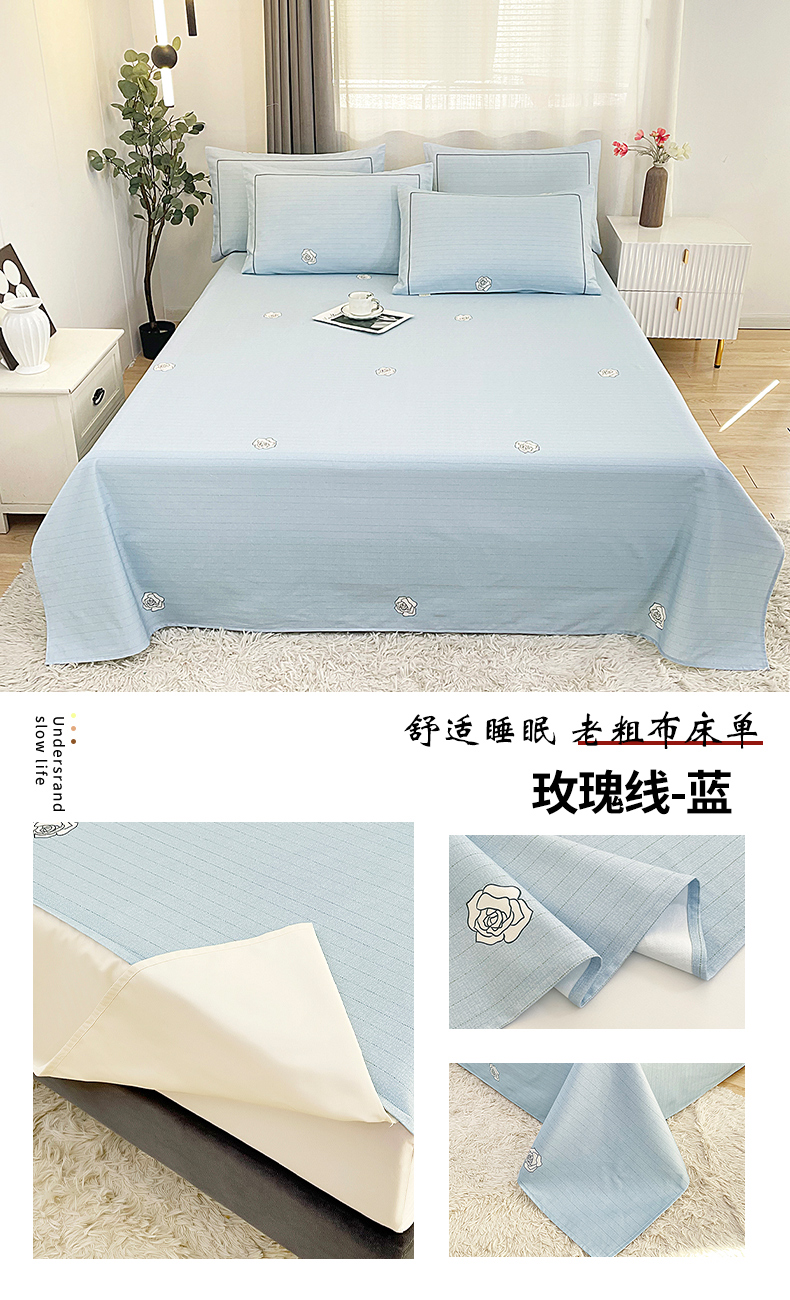 • 91家纺网 家纺一手货源 找家纺 伊而梦蚊帐 2025新款A类老粗布抗菌床单 玫瑰线-蓝