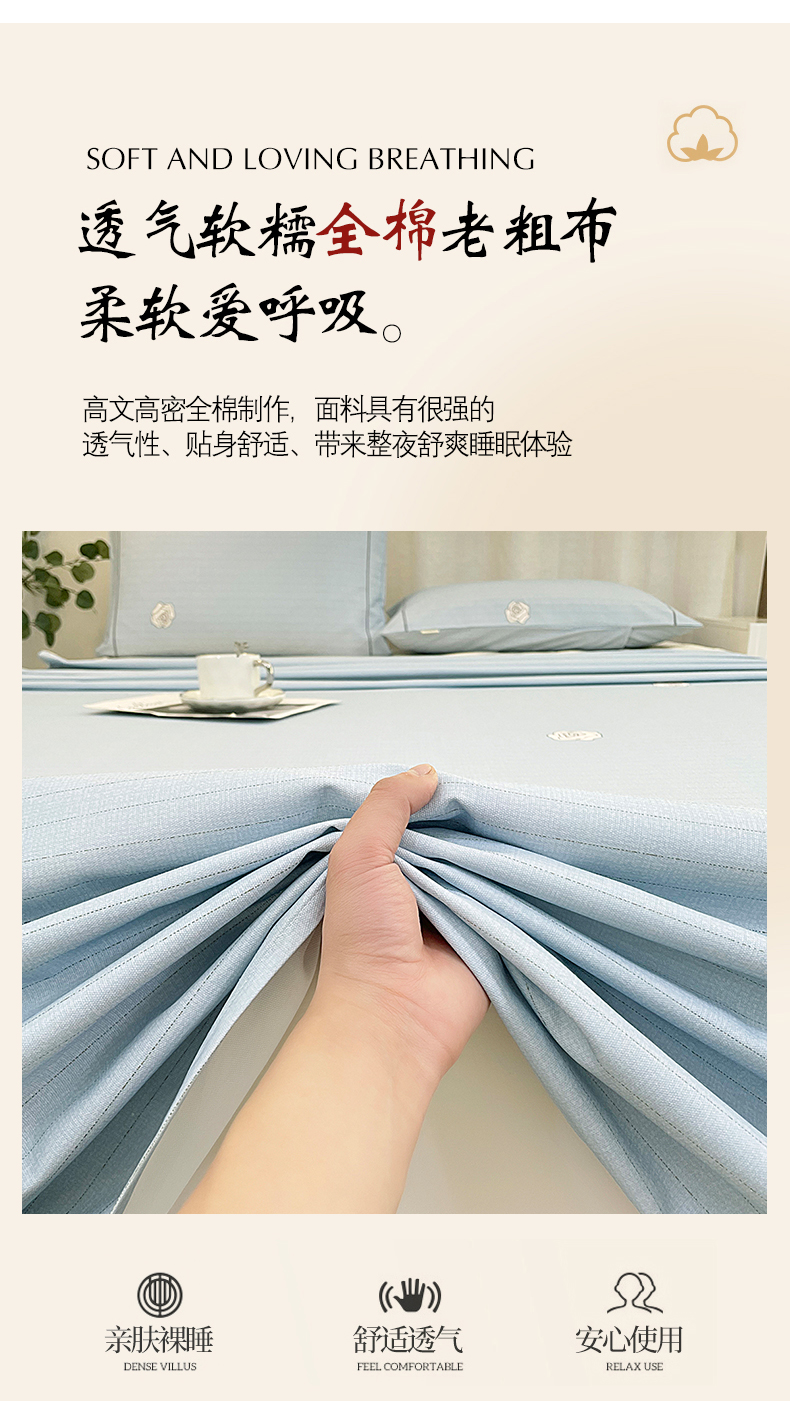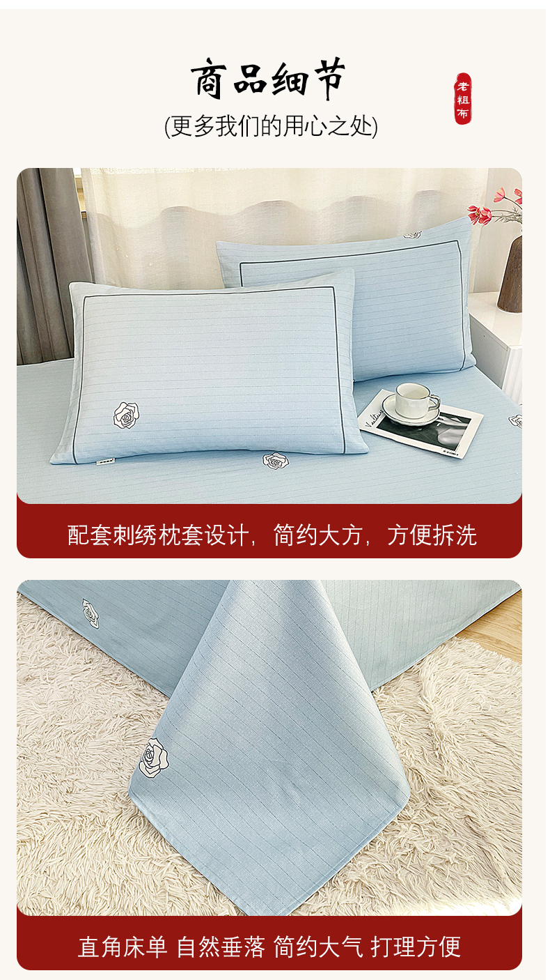 伊而梦蚊帐 2025新款A类老粗布抗菌床单 玫瑰线-蓝