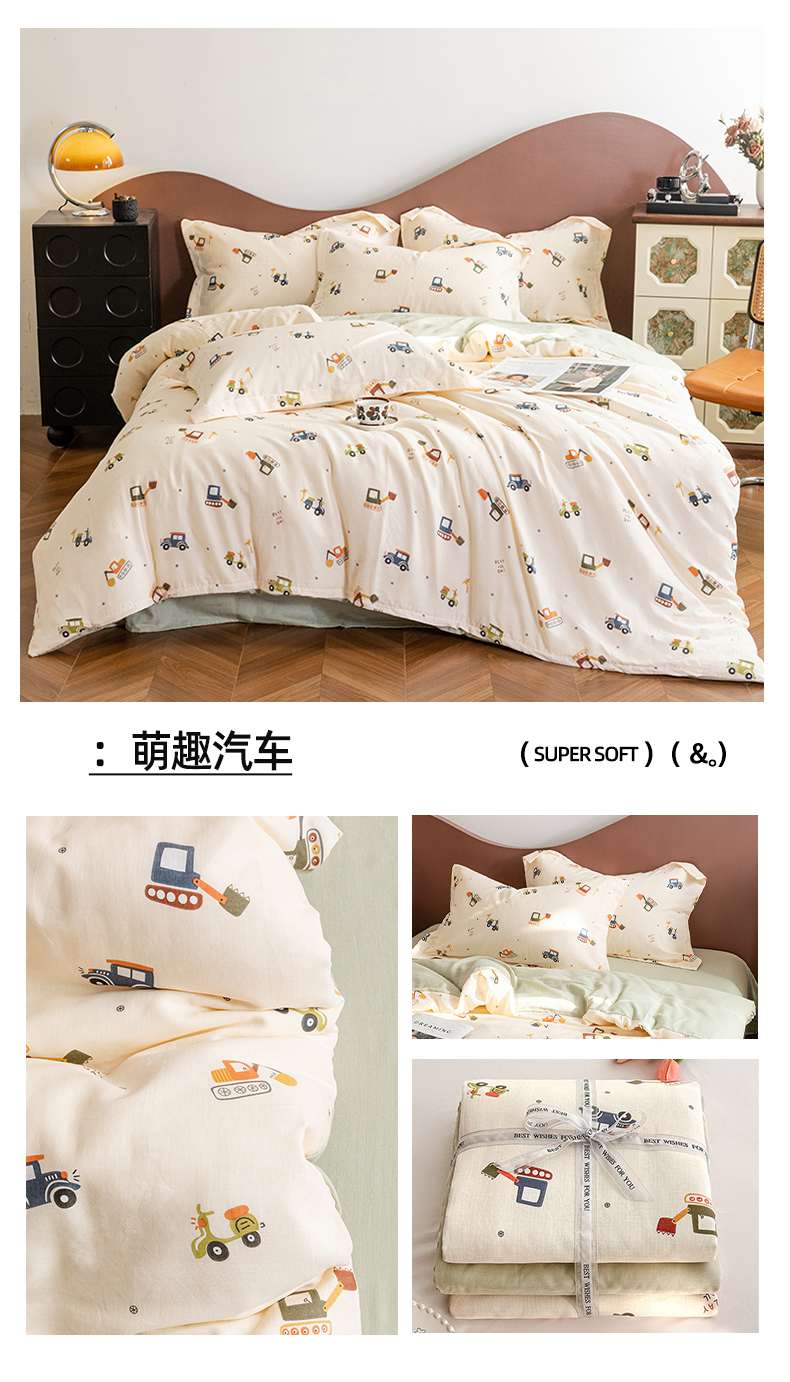 (总)锦罗绣 2025新款全棉双层纱学生套件三件套,波点蝴蝶结,呆萌熊,好奇小狗,寂羽,萌趣汽车1,甜桔,小松树,小熊星球