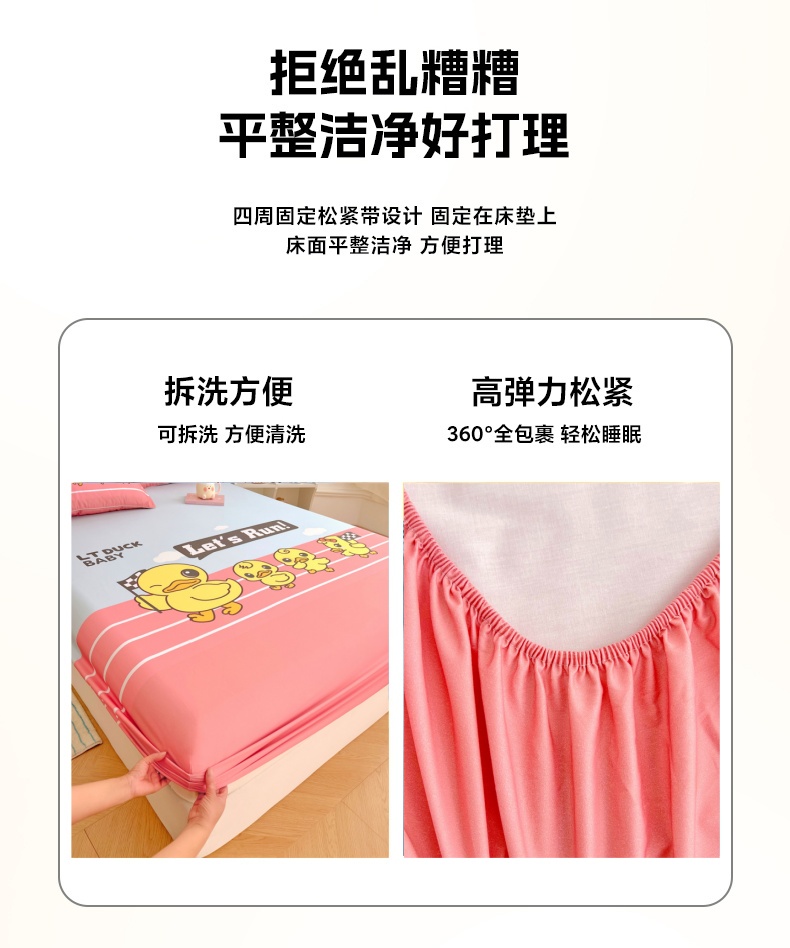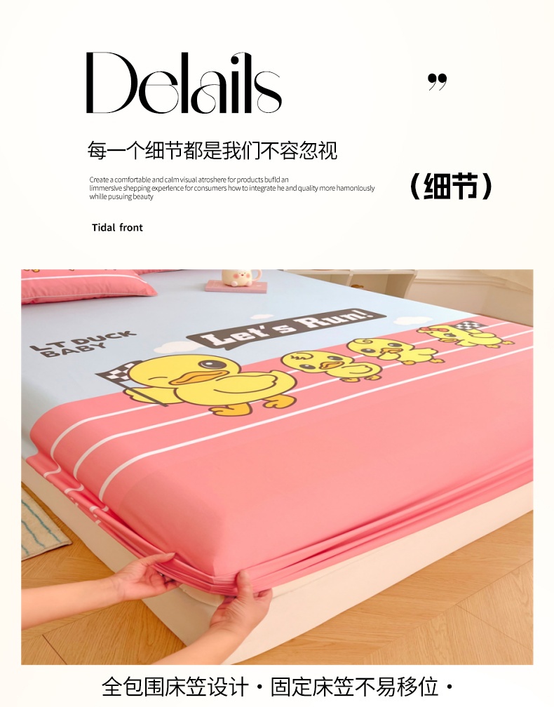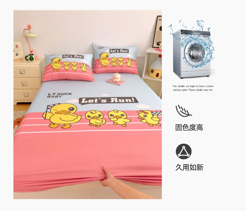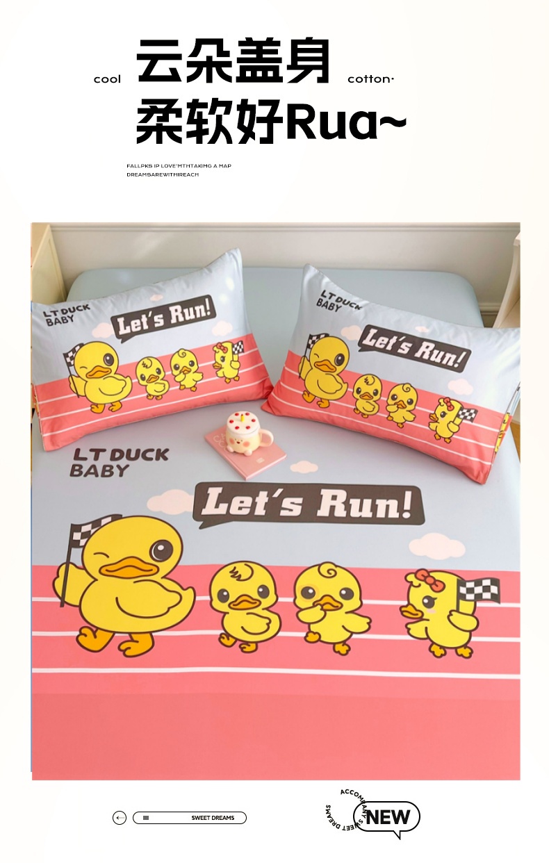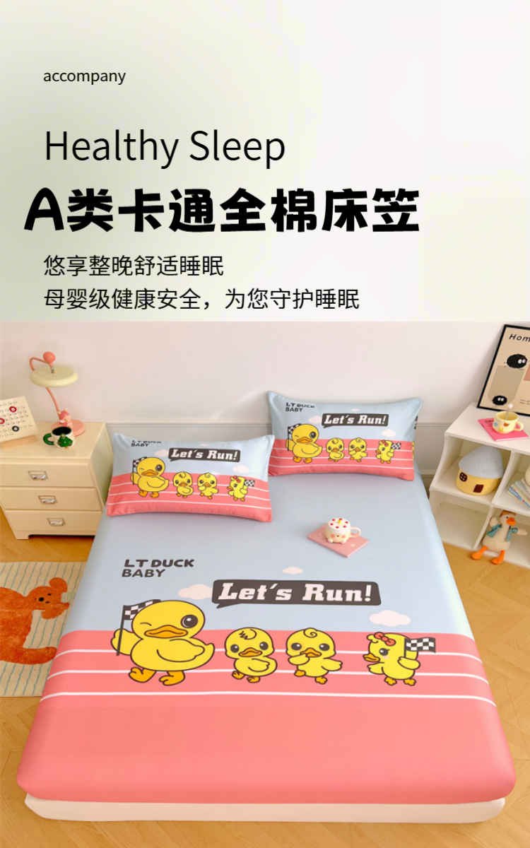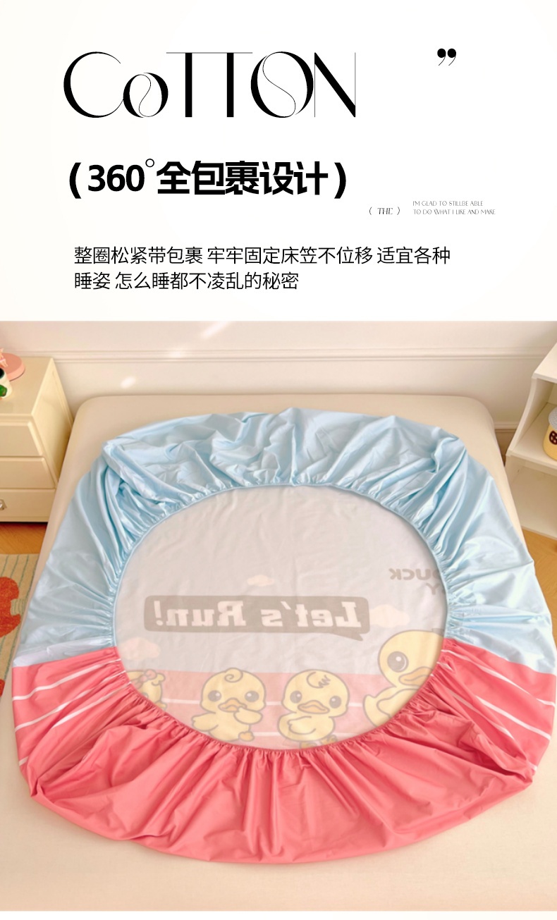 • 91家纺网 家纺一手货源 找家纺 梦舒羽 2025新款正版全棉床笠卡通床笠罩全包席梦思床垫保护罩 竞速鸭