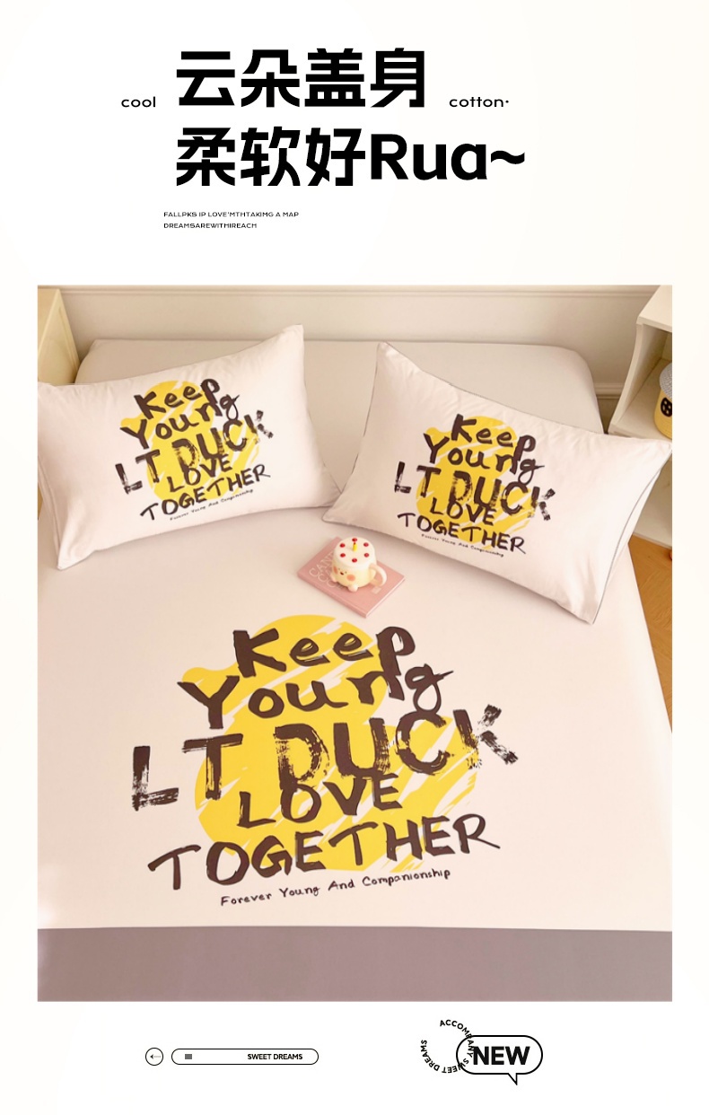 梦舒羽 2025新款正版全棉床笠卡通床笠罩全包席梦思床垫保护罩 字母鸭