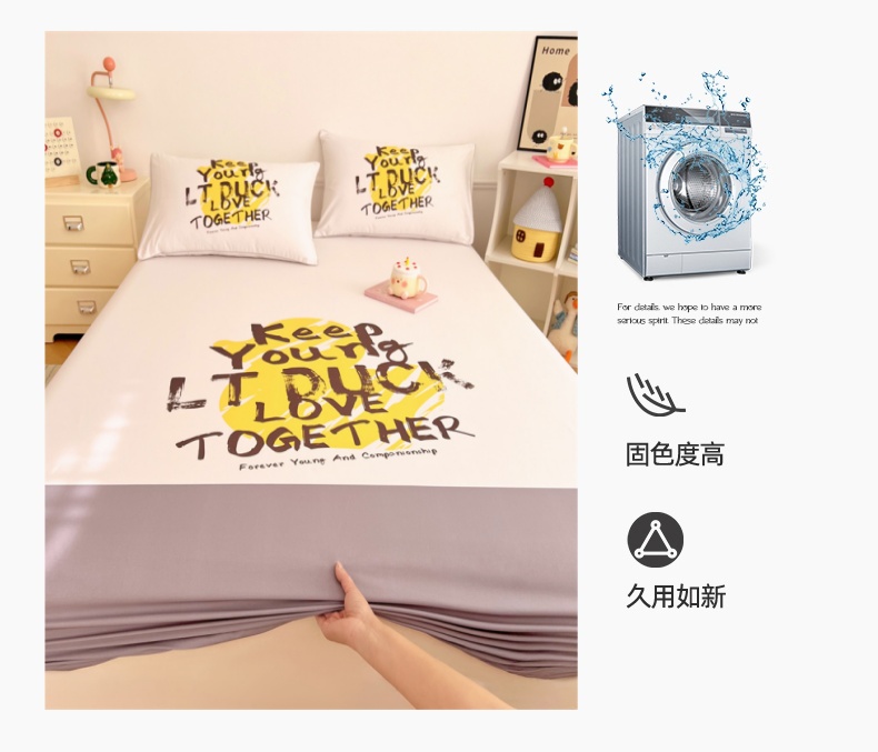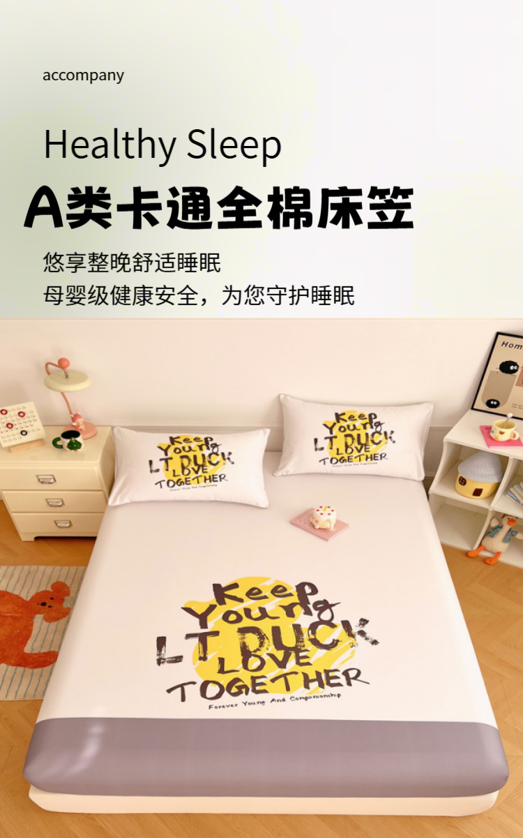 • 91家纺网 家纺一手货源 找家纺 梦舒羽 2025新款正版全棉床笠卡通床笠罩全包席梦思床垫保护罩 字母鸭