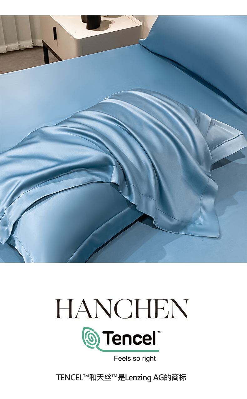 • 91家纺网 家纺一手货源 找家纺 (买家秀 爆款花型不断货)A类母婴级兰精天丝TM纯色枕套兰精天丝枕头套一对装天丝单枕套 单枕套-深海蓝