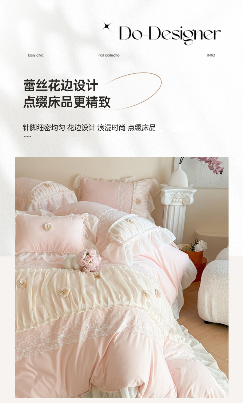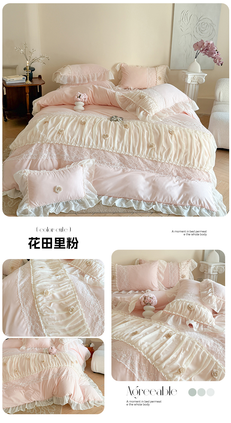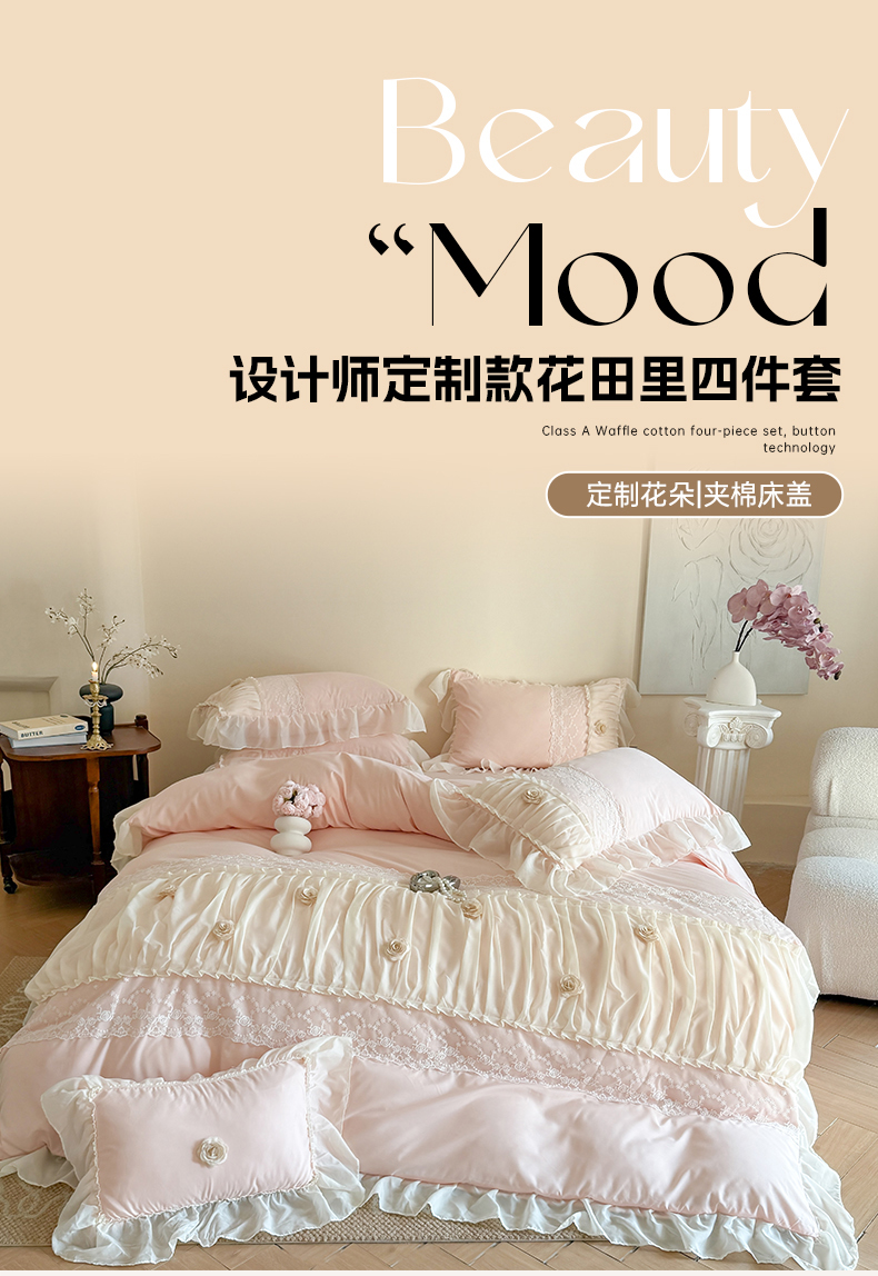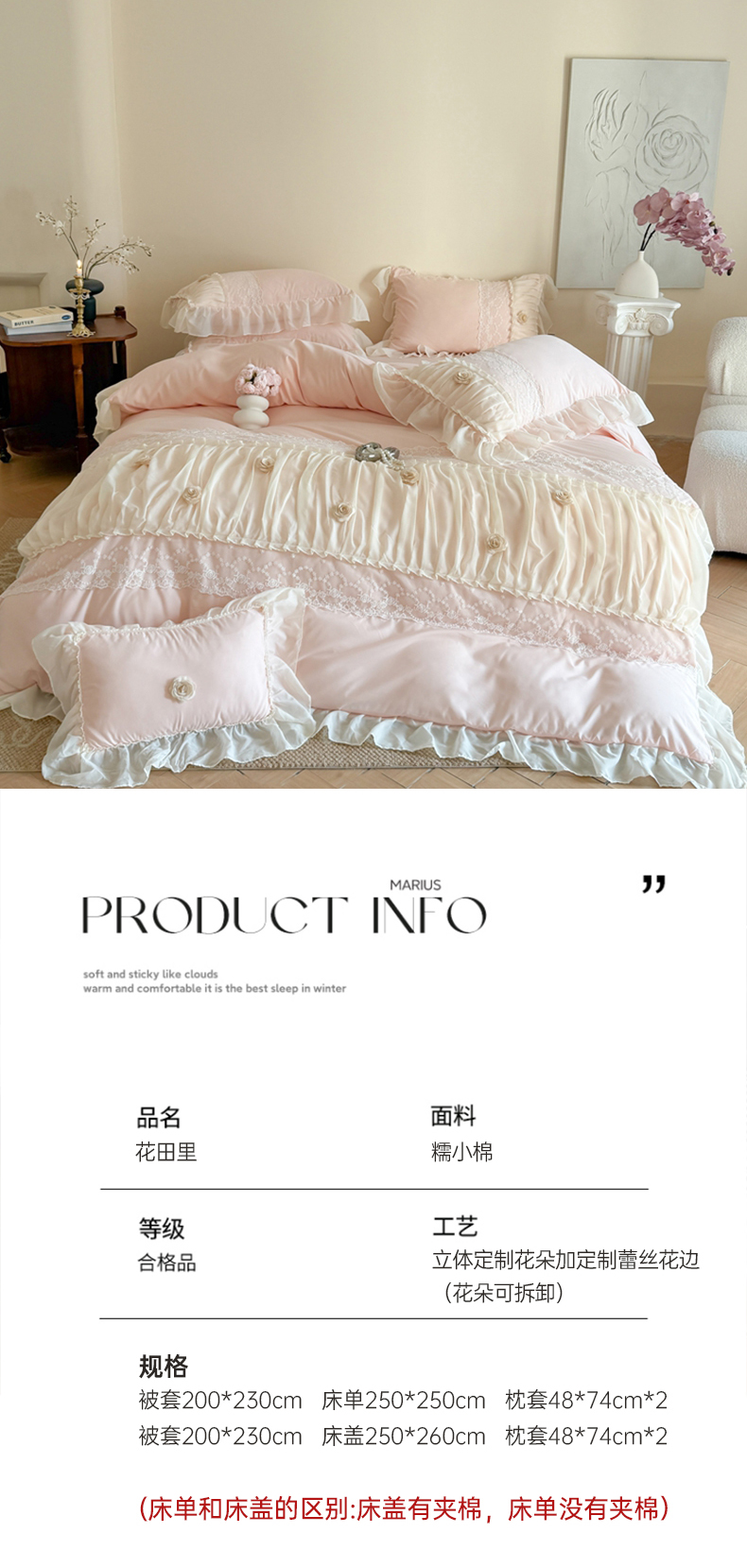 当前位置: 91家纺网 > 商品网购 > 床品套件 > 四件套 > 其它四件套 > 吾欢心2025新款花田里糯小棉立体定制花朵定制蕾丝花边四件套 花田里粉