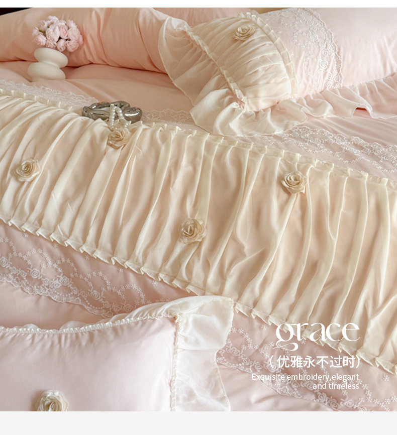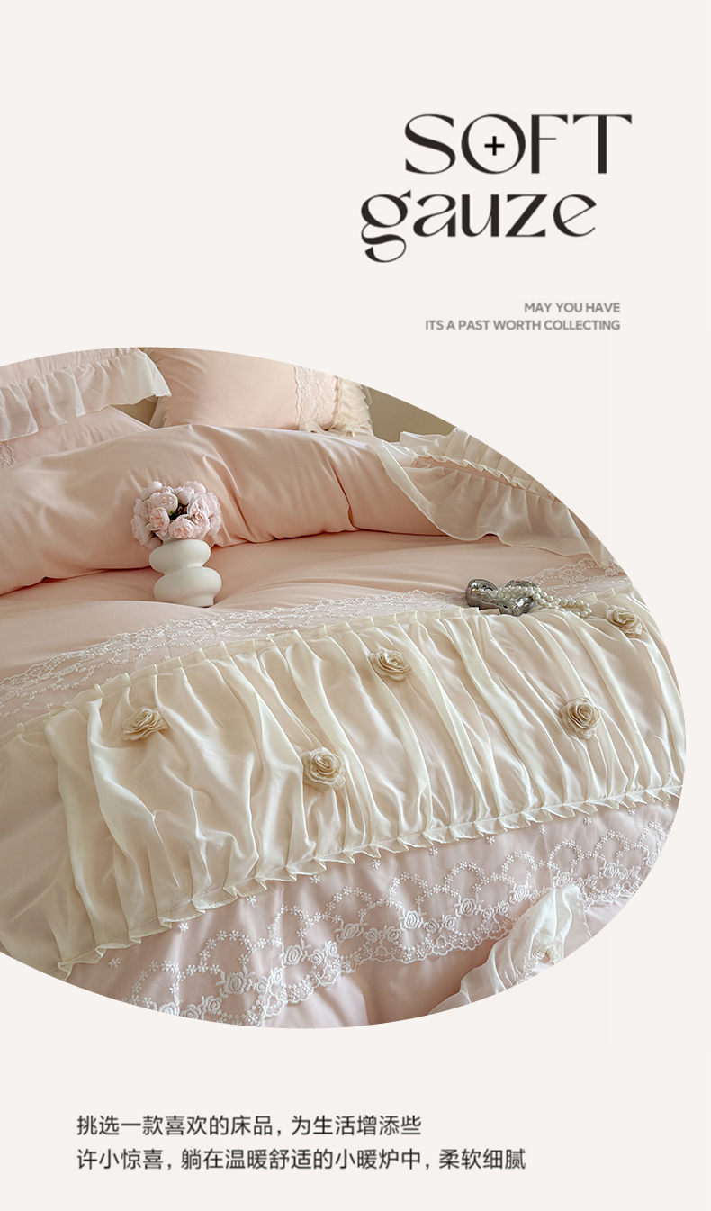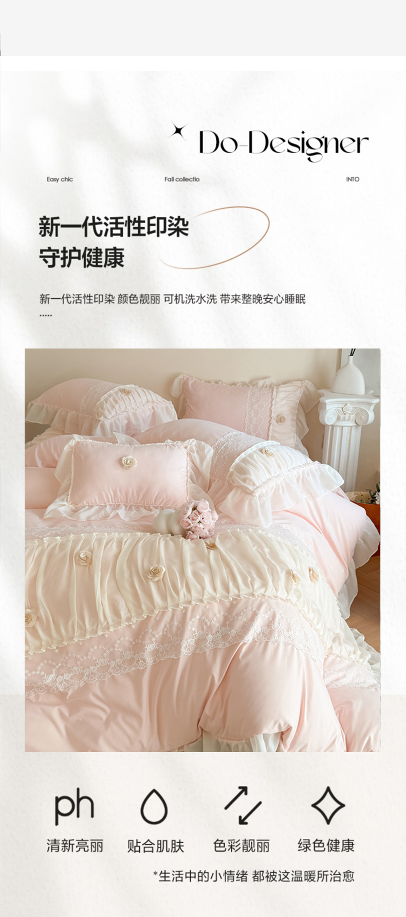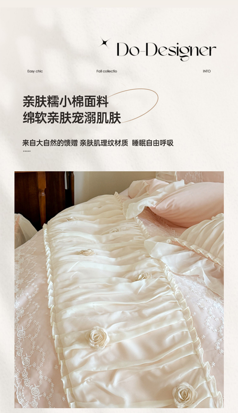 当前位置: 91家纺网 > 商品网购 > 床品套件 > 四件套 > 其它四件套 > 吾欢心2025新款花田里糯小棉立体定制花朵定制蕾丝花边四件套 花田里粉