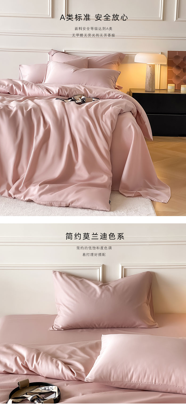 Mr.pig猪先生水洗棉 2025新款A类柔软纯色天丝棉单被套 银粉色