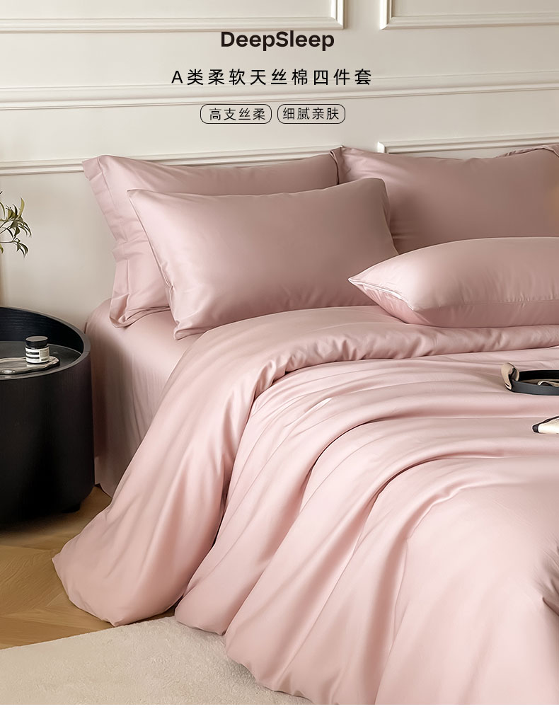 商品名称:Mr.pig猪先生水洗棉 2025新款A类柔软纯色天丝棉单被套 银粉色