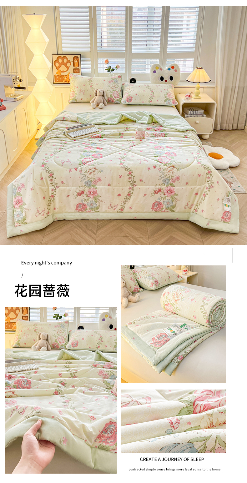 雅萱家纺 2025新款全棉夏被套件 花园蔷薇