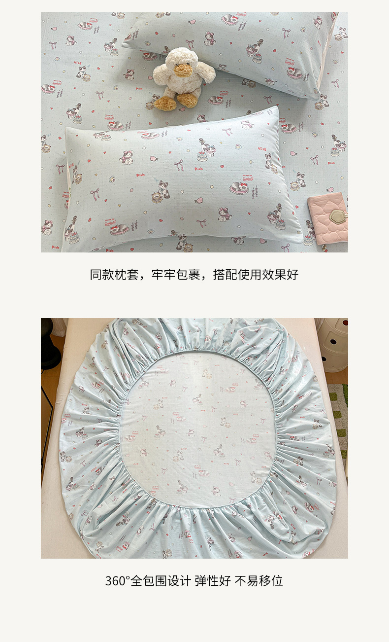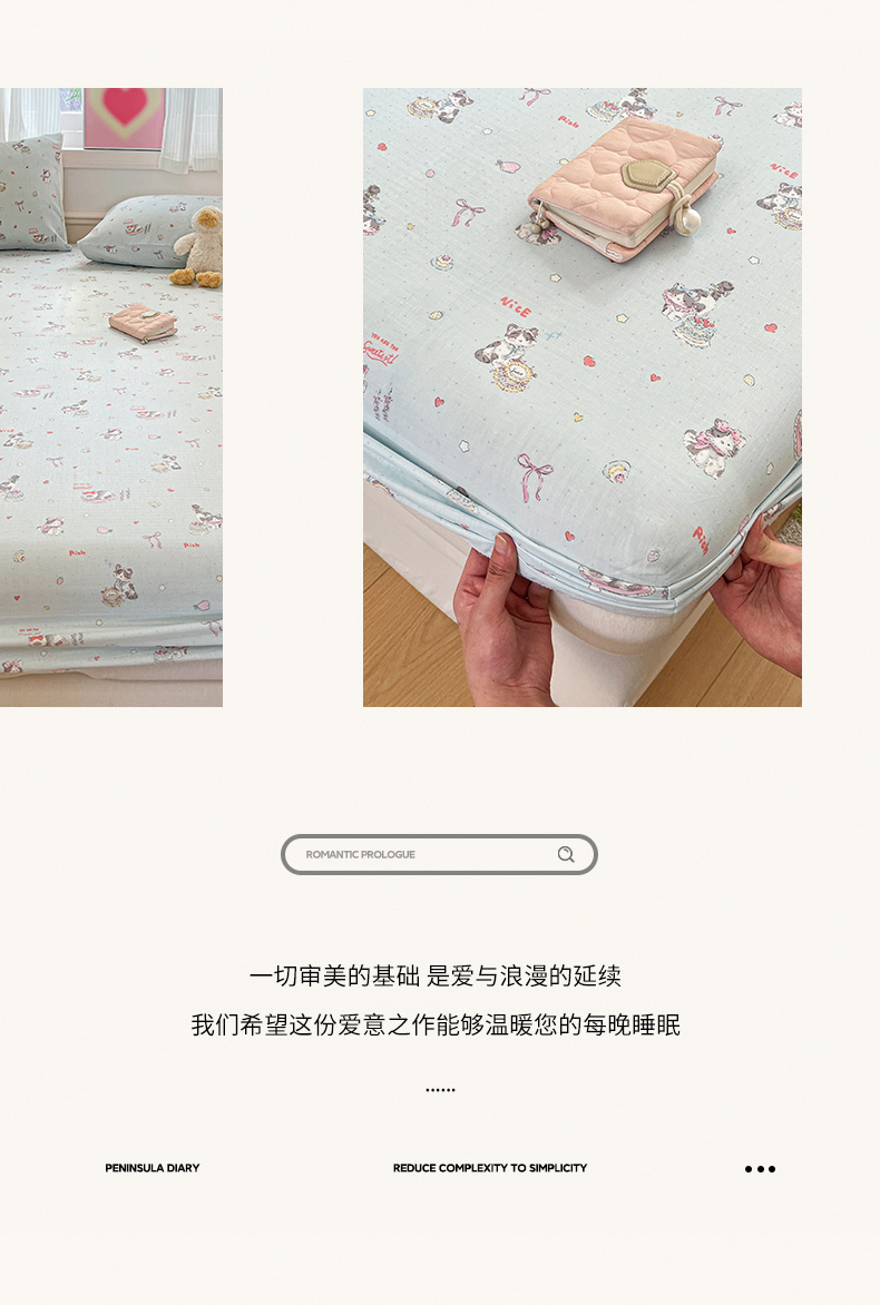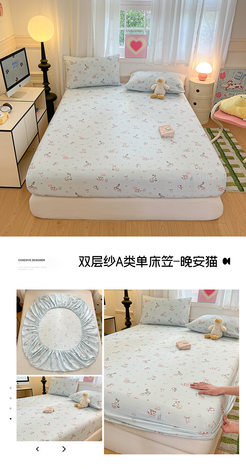 • 91家纺网 家纺一手货源 找家纺 博雅 2025新款全棉A类双层纱床笠 晚安猫