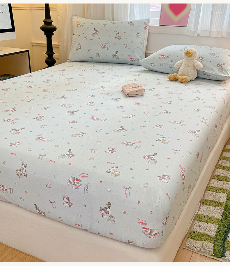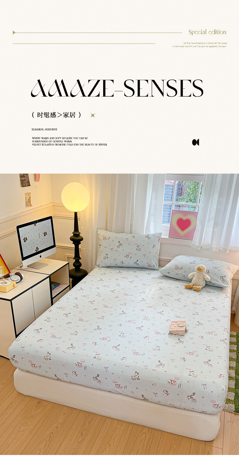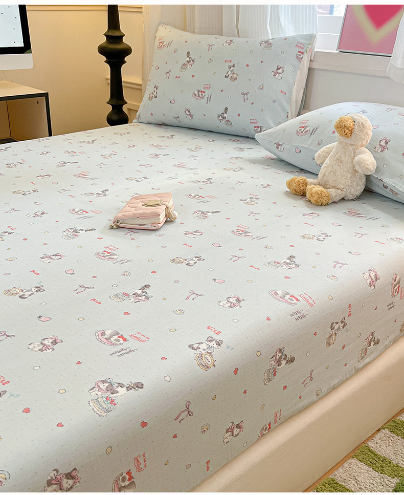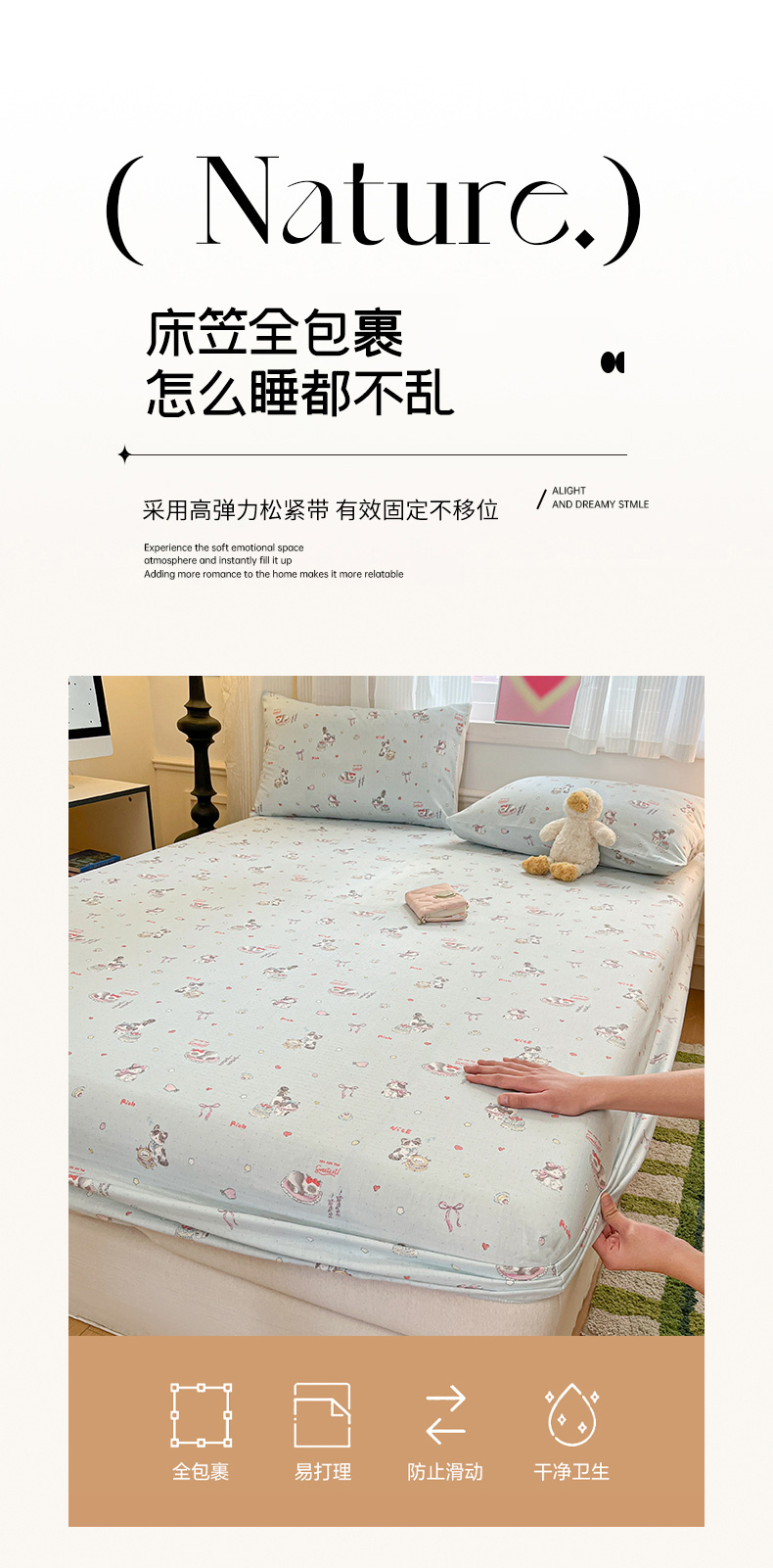• 91家纺网 家纺一手货源 找家纺 博雅 2025新款全棉A类双层纱床笠 晚安猫