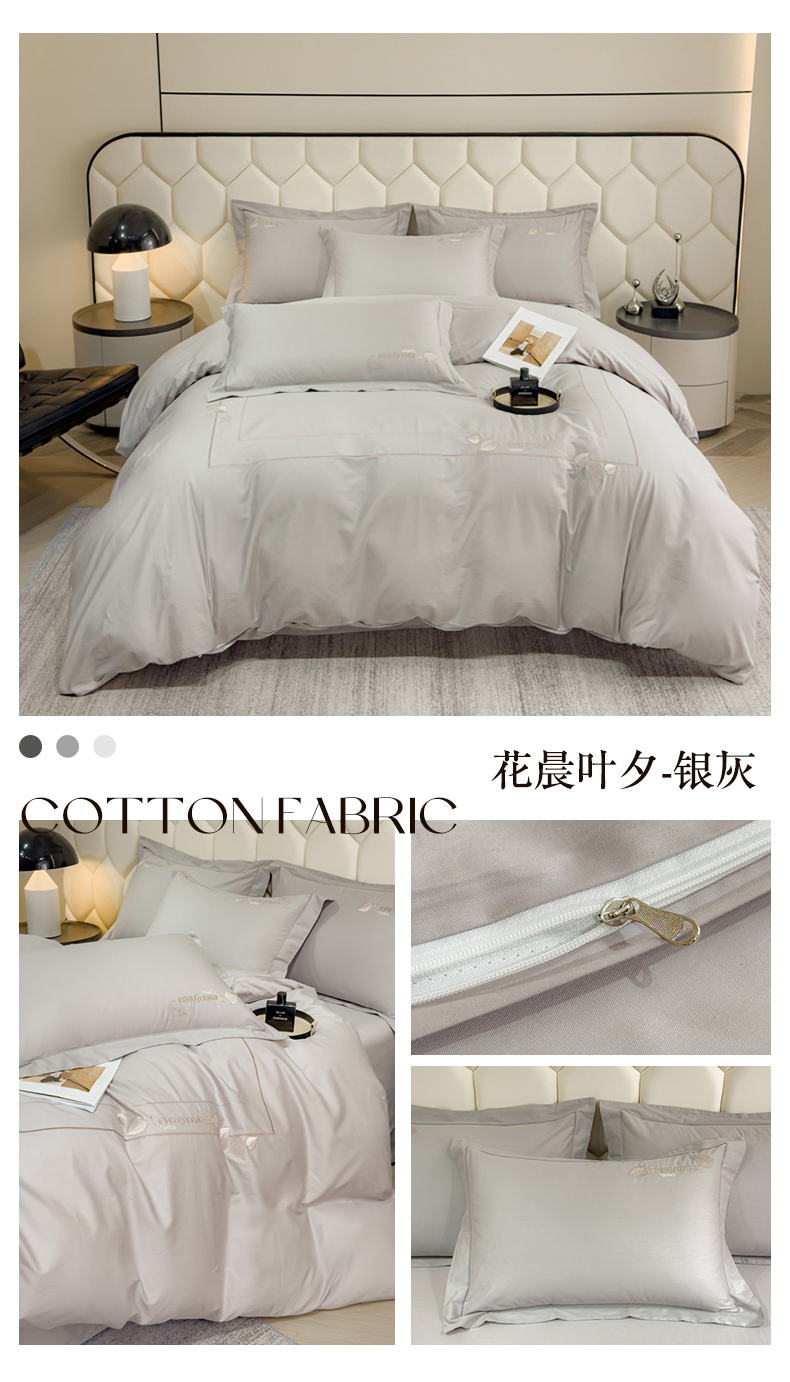 商品名称:U品汇 2025新款纯棉全棉长绒棉刺绣绣花高端礼盒四件套-叶夕 花晨叶夕-银灰