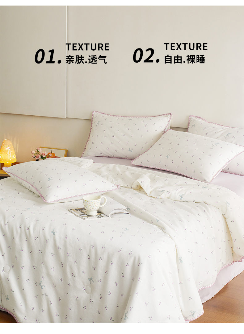 商品名称:暖阳 2025年新款大豆双层纱夏被四件套 樱桃结