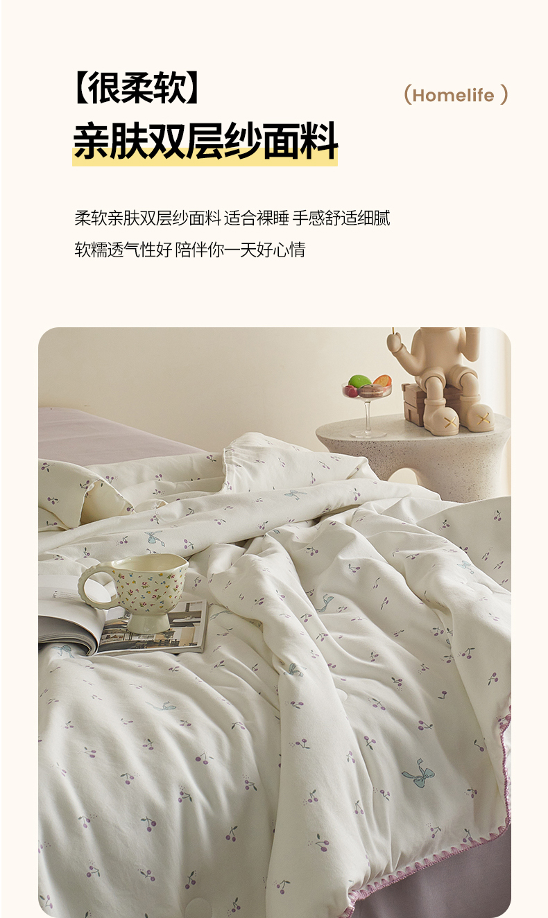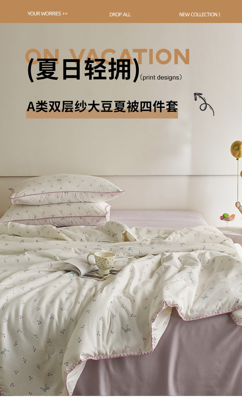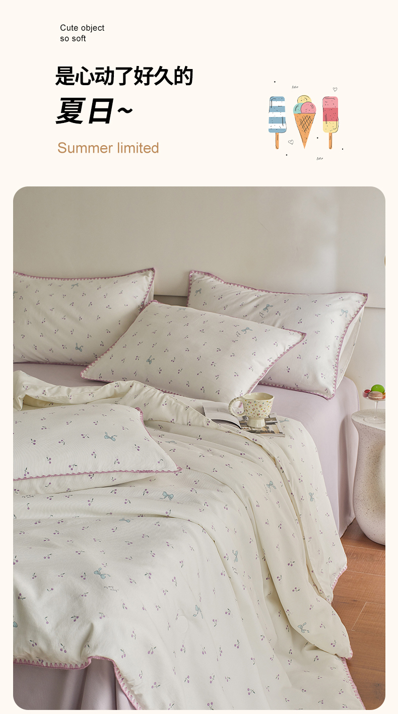 暖阳 2025年新款大豆双层纱夏被四件套 樱桃结