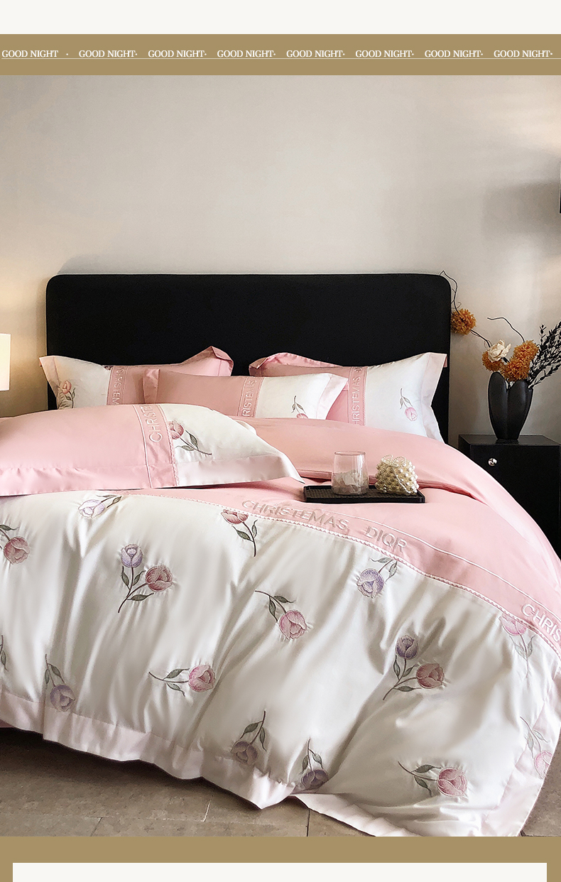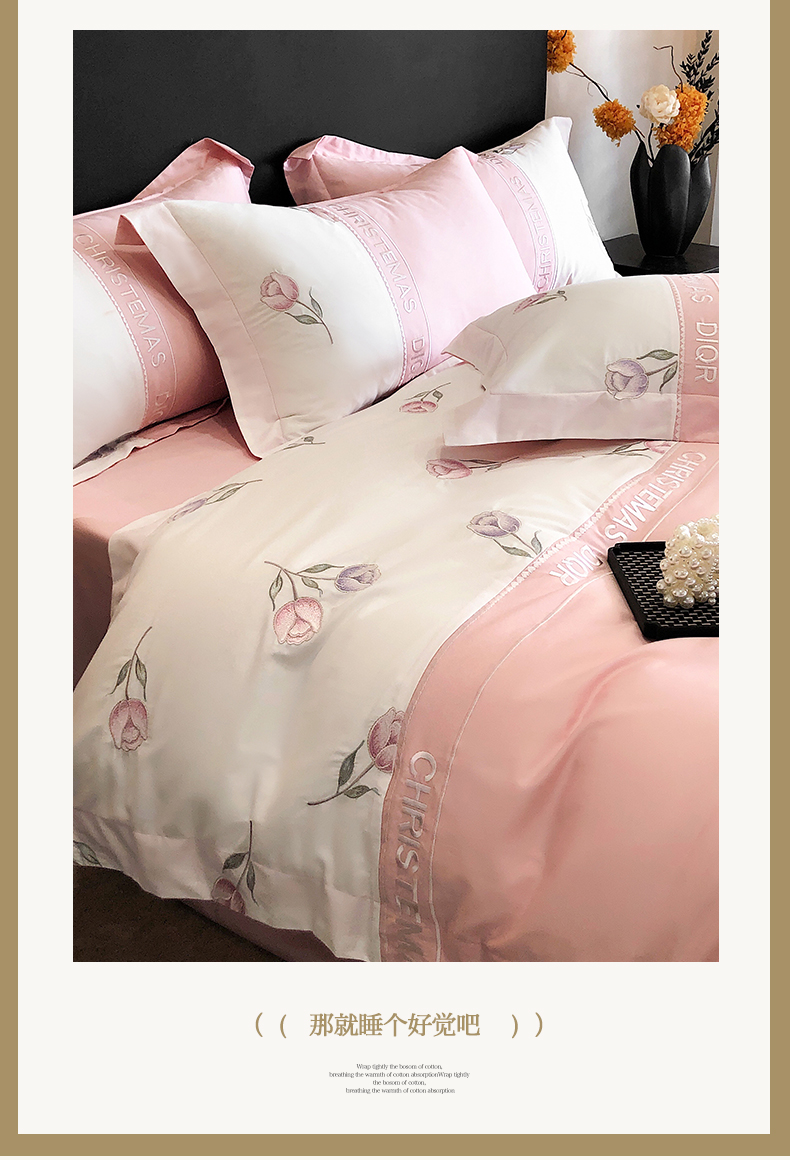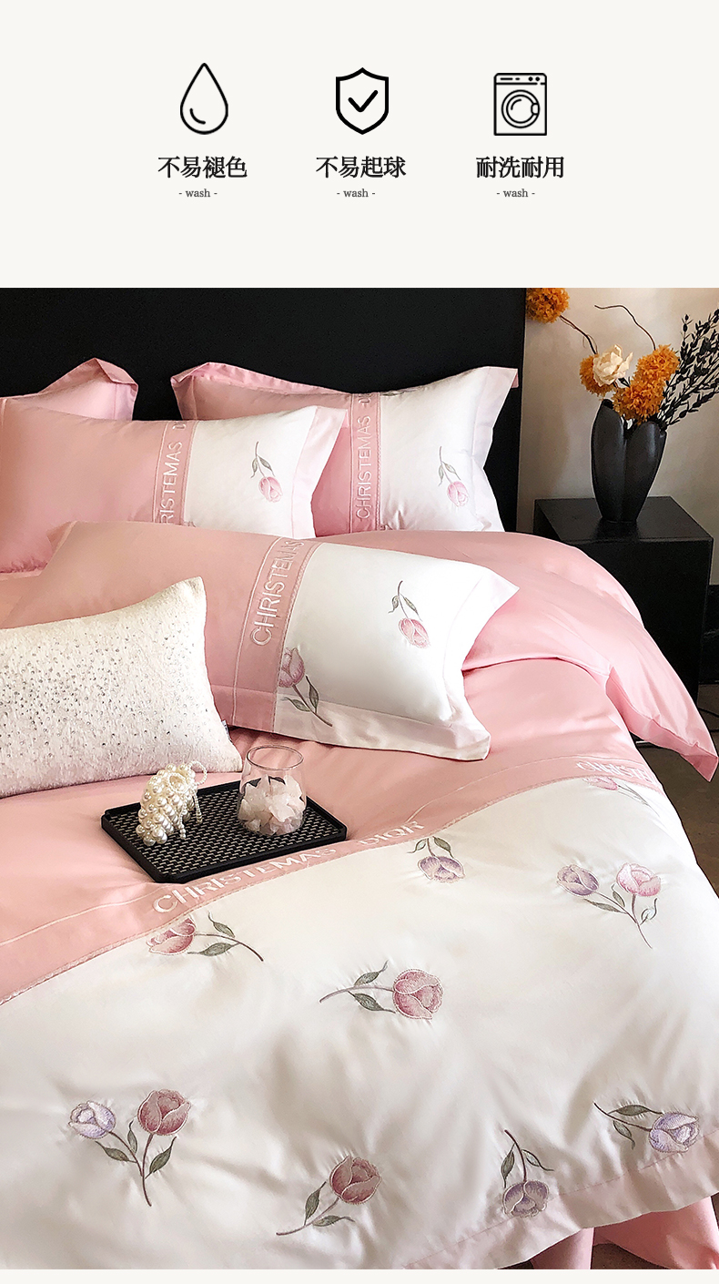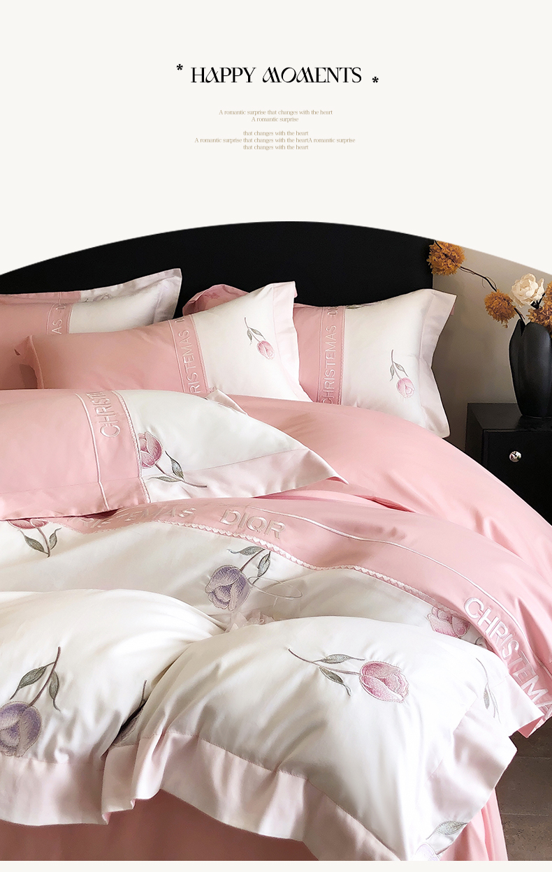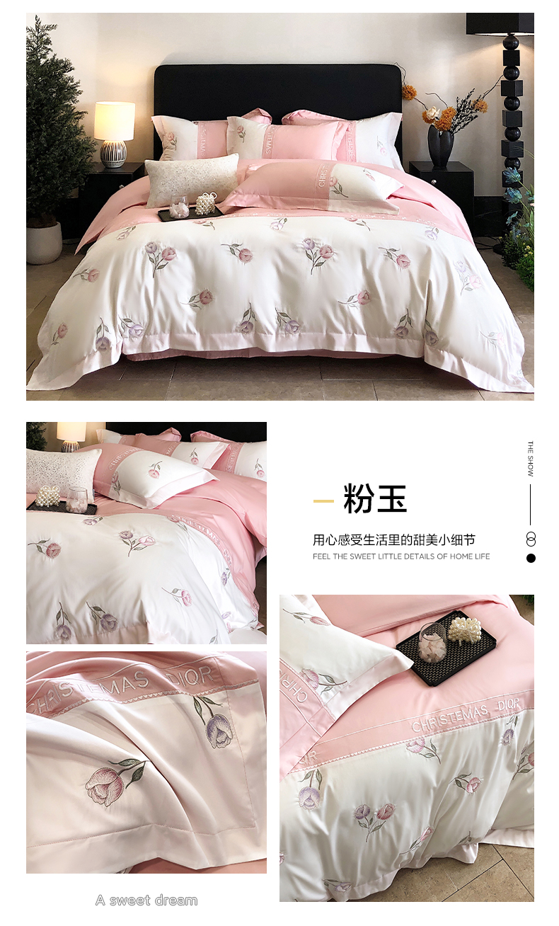 商品名称:博纳家纺 2025新款亲肤棉绣花四件套--泡芙小姐 粉玉