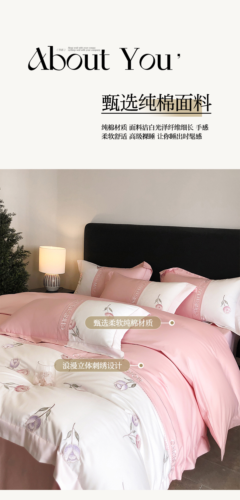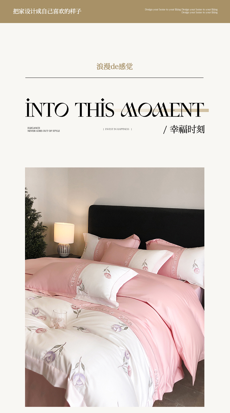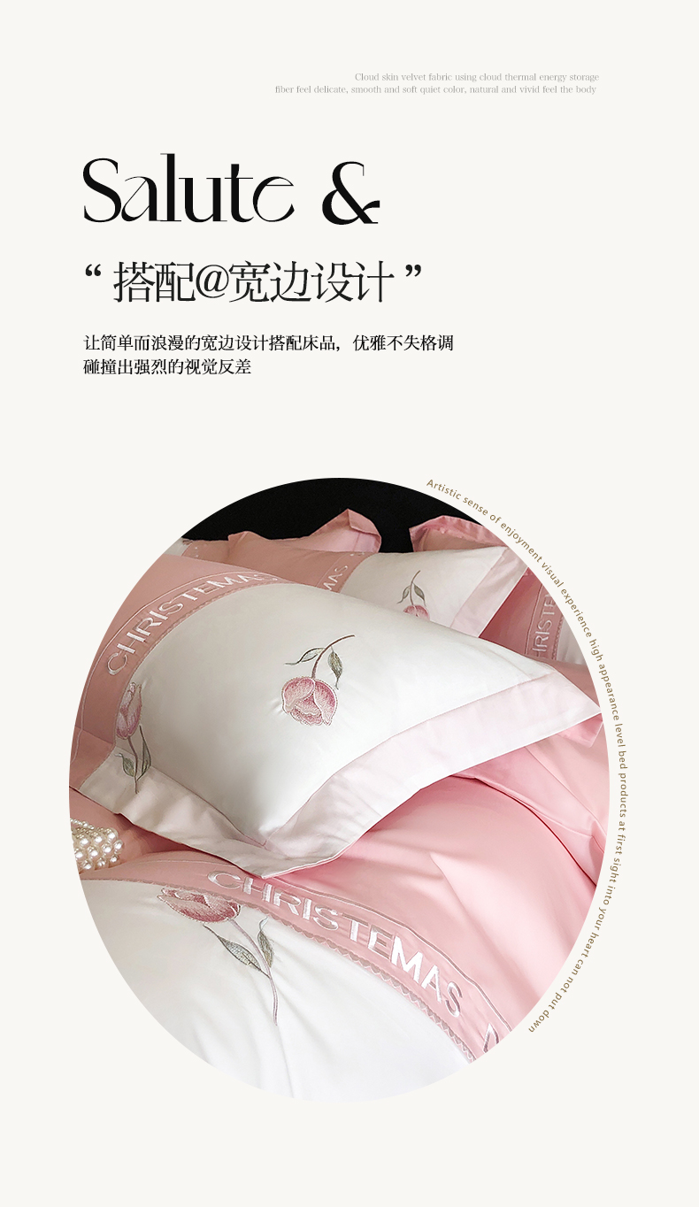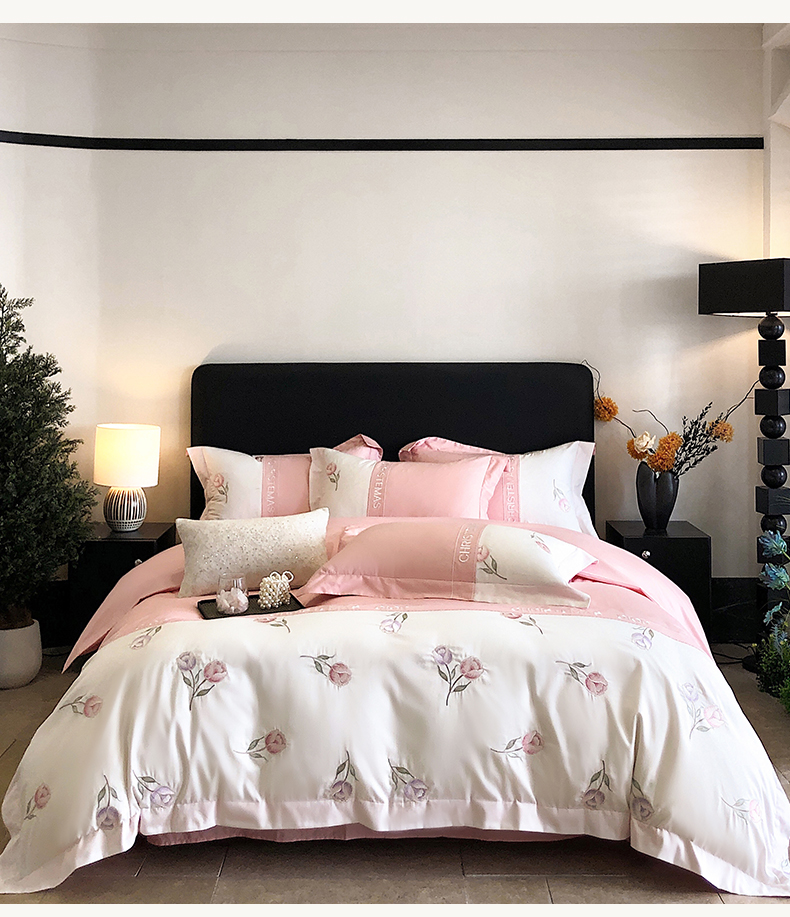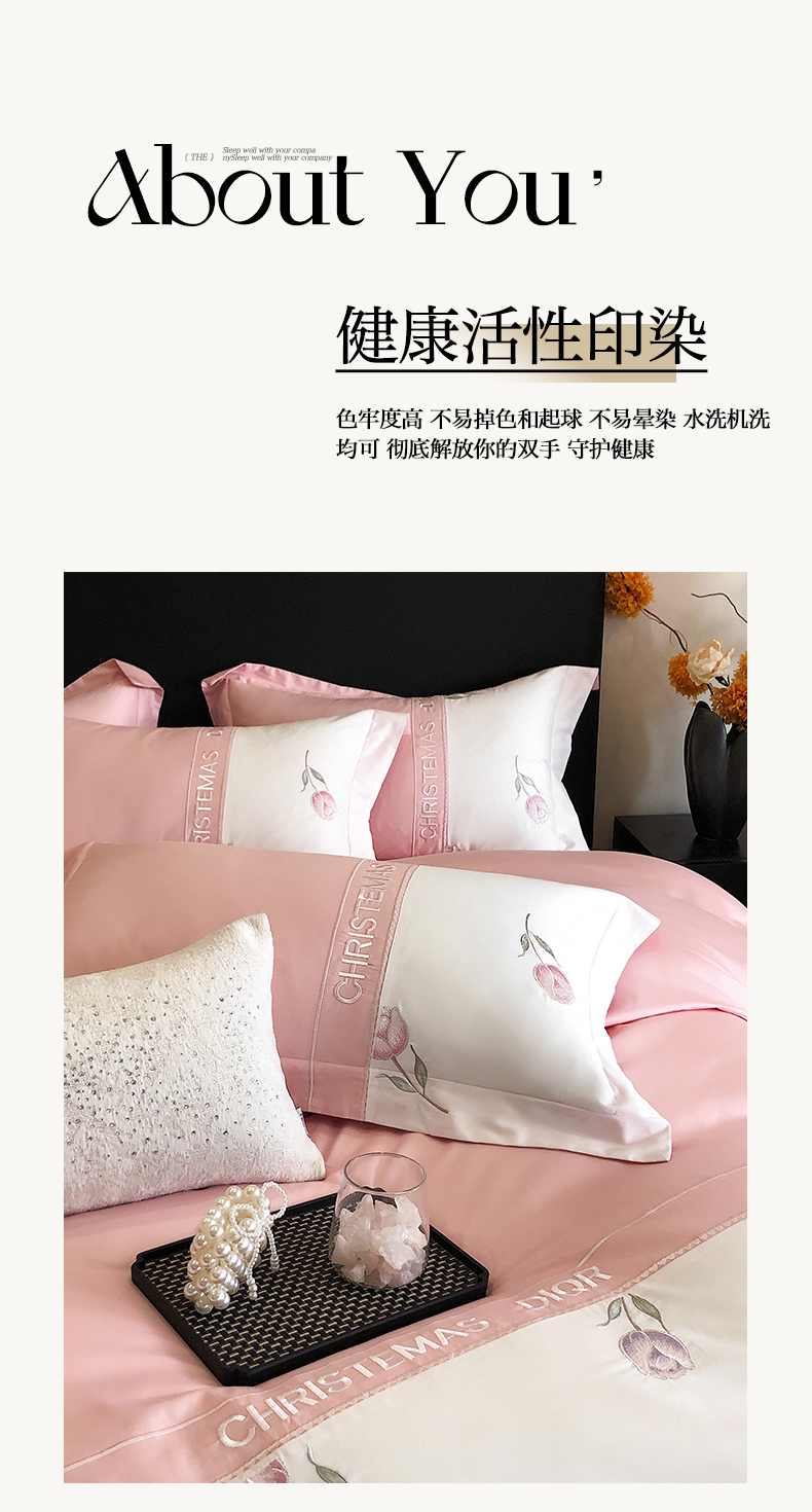 商品名称:博纳家纺 2025新款亲肤棉绣花四件套--泡芙小姐 粉玉
