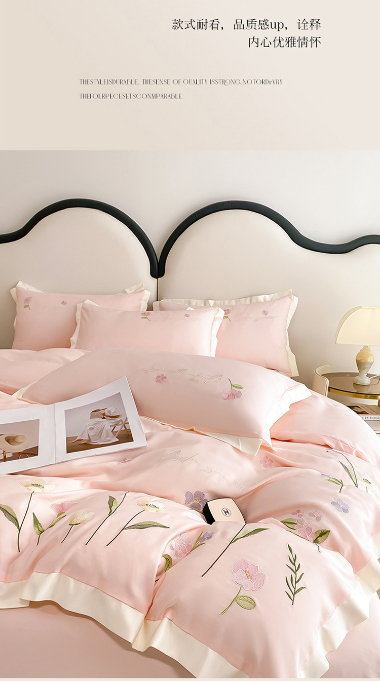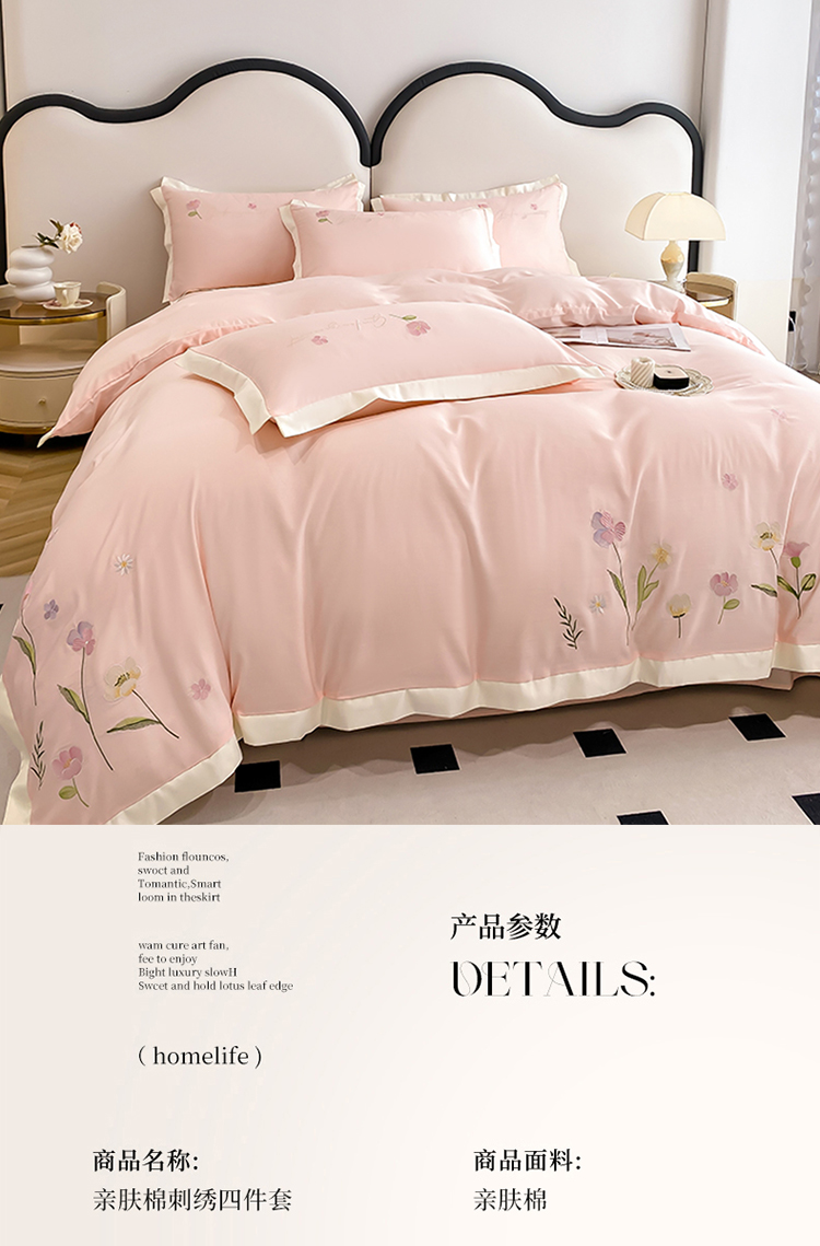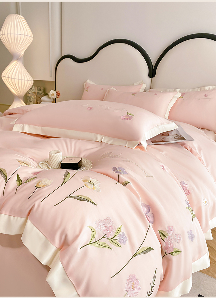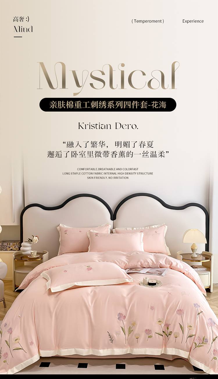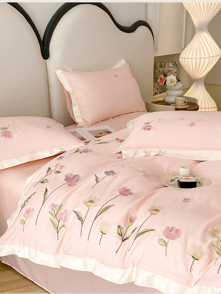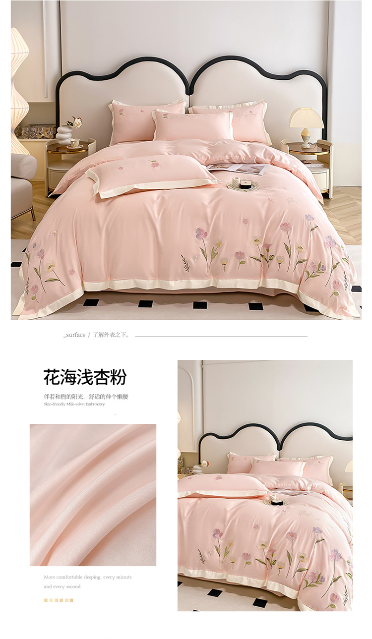 商品名称:狂想家 2025亲肤棉重工刺绣系列四件套-花海 花海浅杏粉