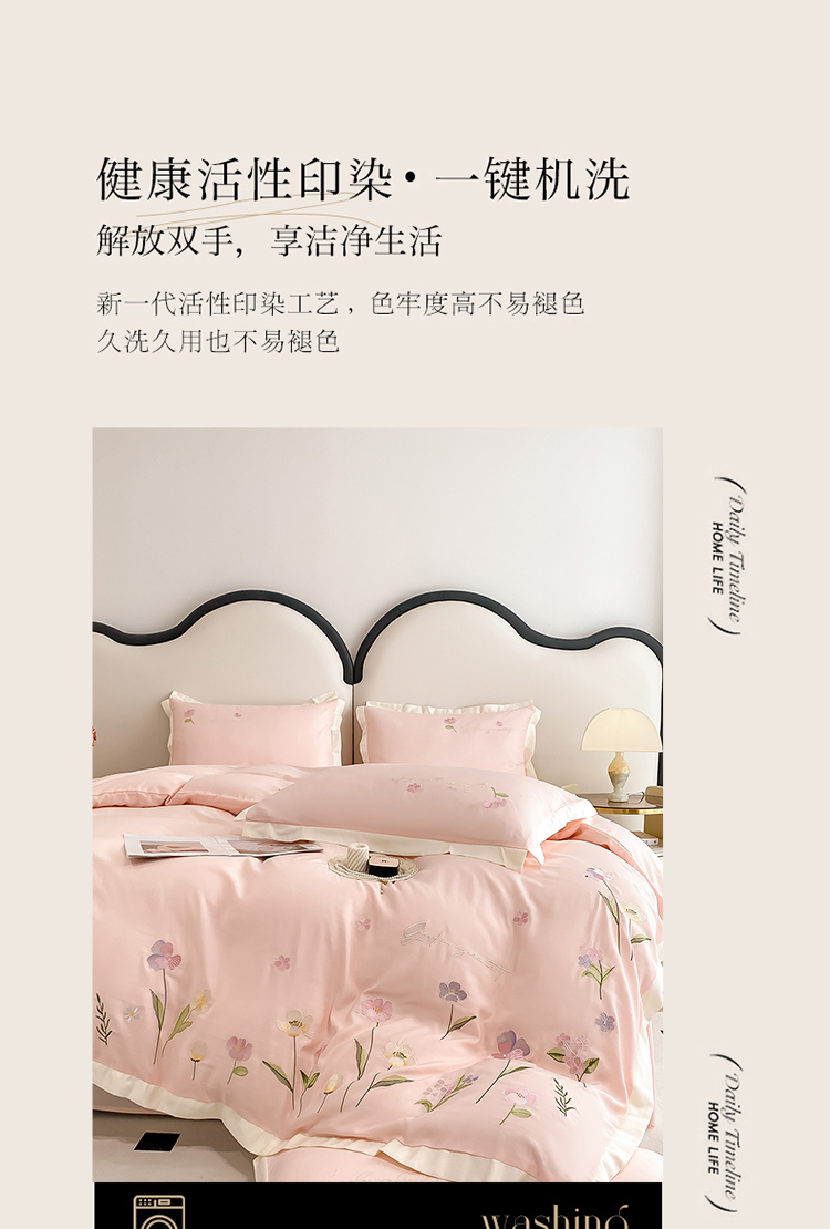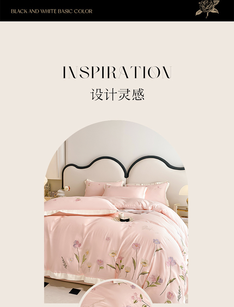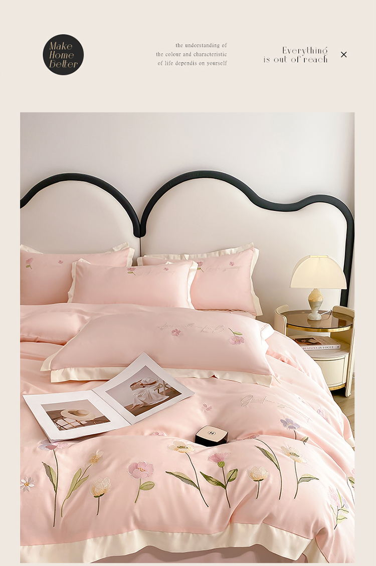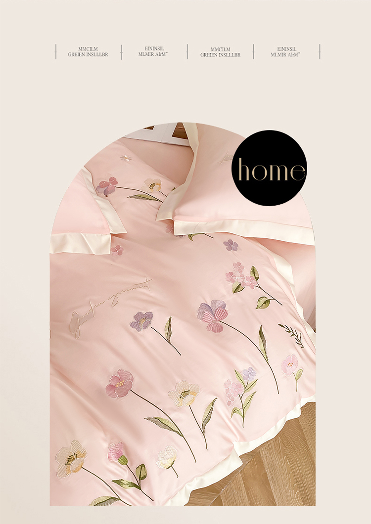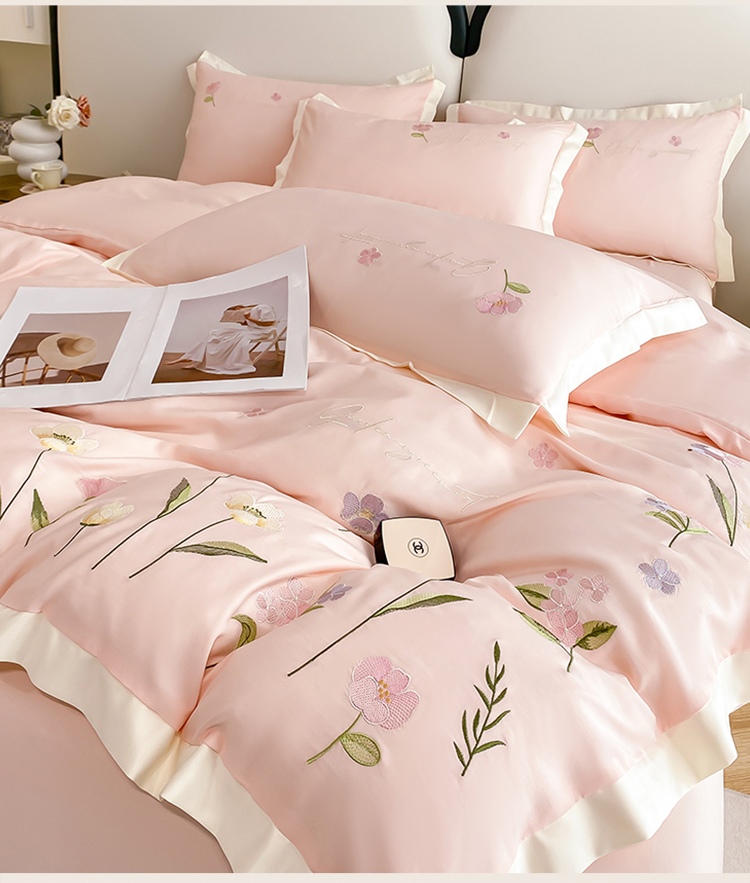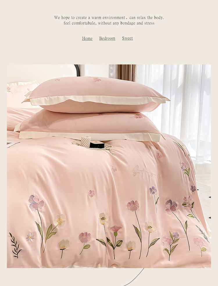 商品名称:狂想家 2025亲肤棉重工刺绣系列四件套-花海 花海浅杏粉