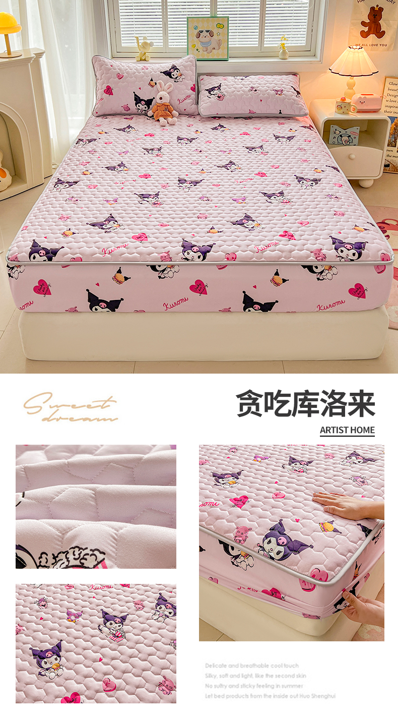 迪梦思家纺 2025新款A类正版授权卡通印花水洗棉夹棉学生床笠 贪吃库洛来
