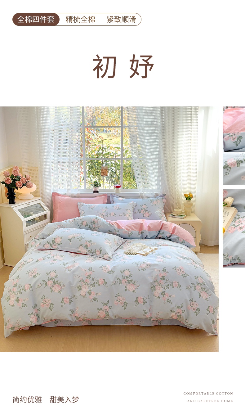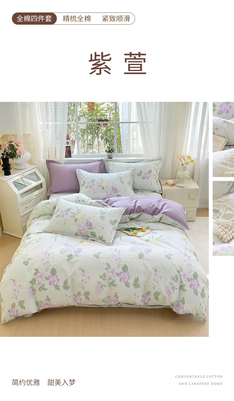 当前位置: 91家纺网 > 商品网购 > 床品套件 > 四件套 > 全棉普通四件套 > 元元被芯 2025新款40支13372全棉印花全棉四件套 悠然