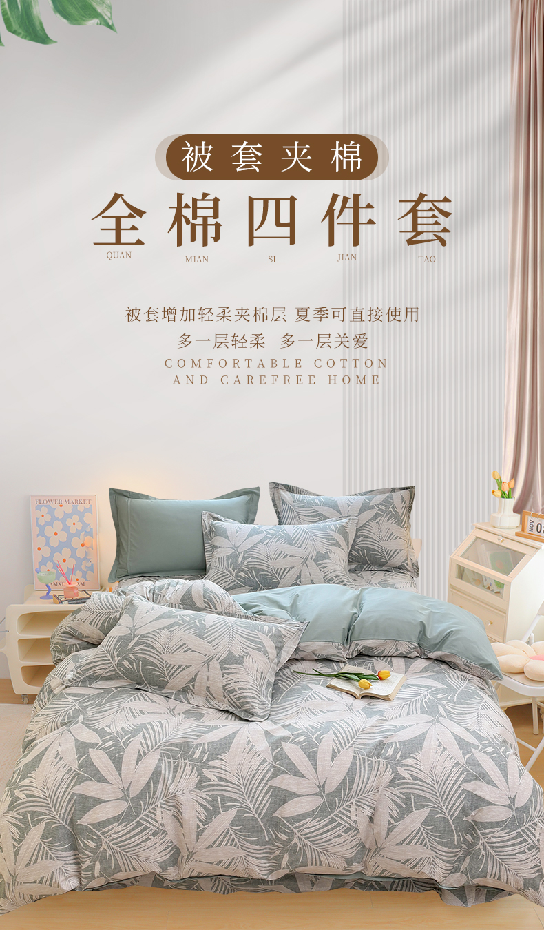 当前位置: 91家纺网 > 商品网购 > 床品套件 > 四件套 > 全棉普通四件套 > 元元被芯 2025新款40支13372全棉印花全棉被套夹棉四件套 蔓羽