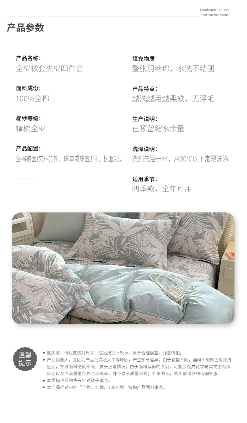 1.8m夹棉被套2.45m床单四件套 | ¥148.00 |