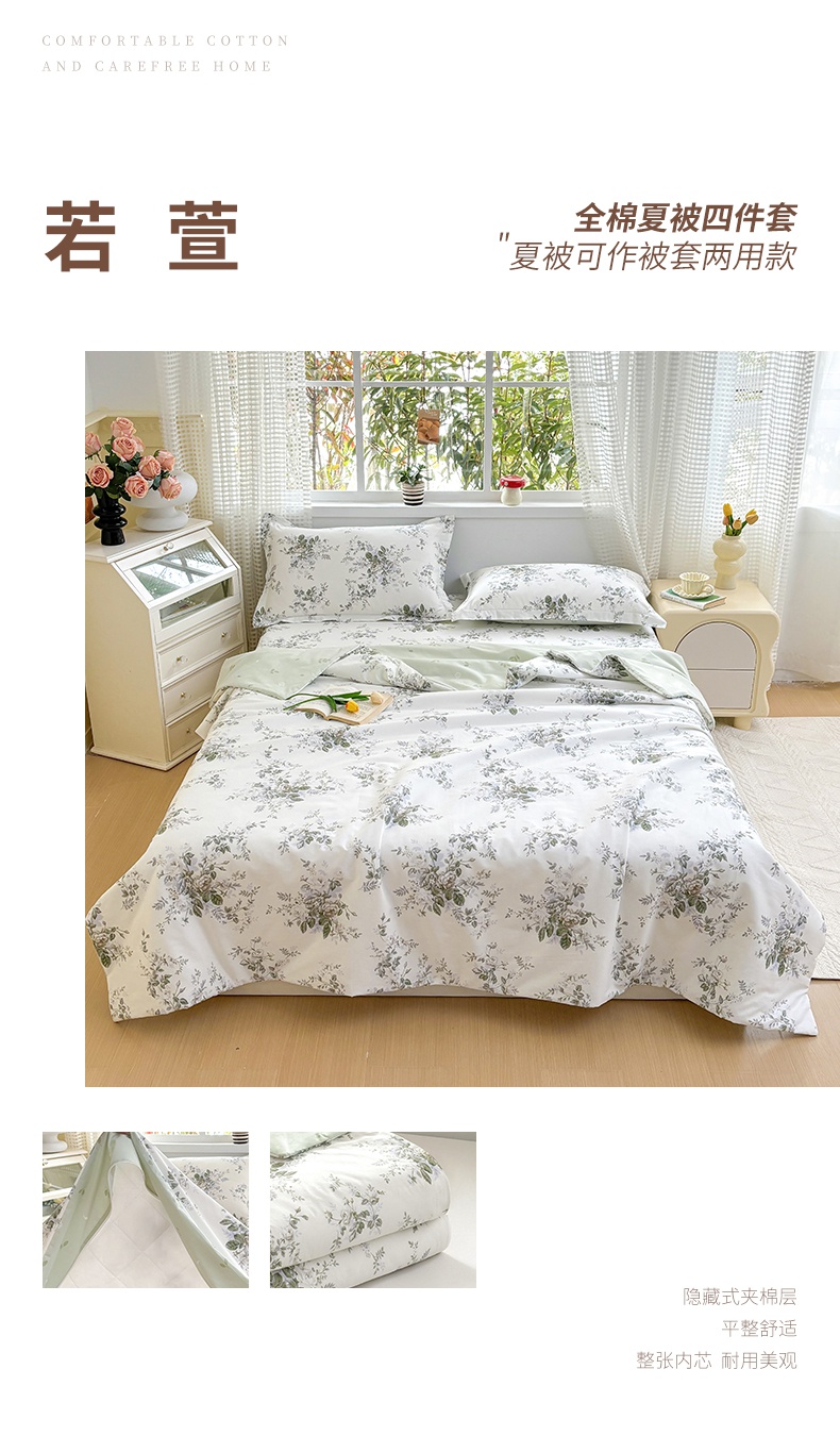 • 91家纺网 家纺一手货源 找家纺 元元被芯 2025新款40支13372全棉印花夏被四件套 诗雨