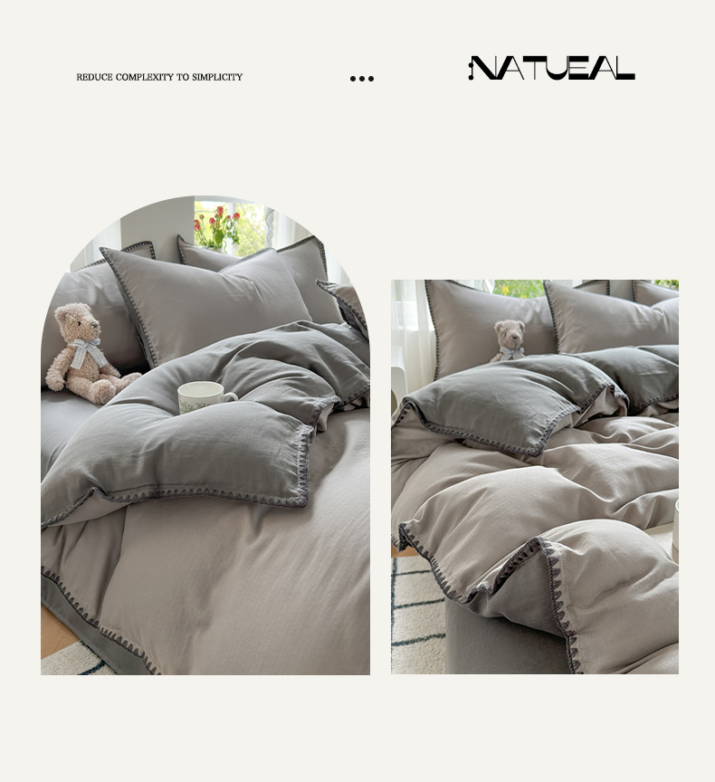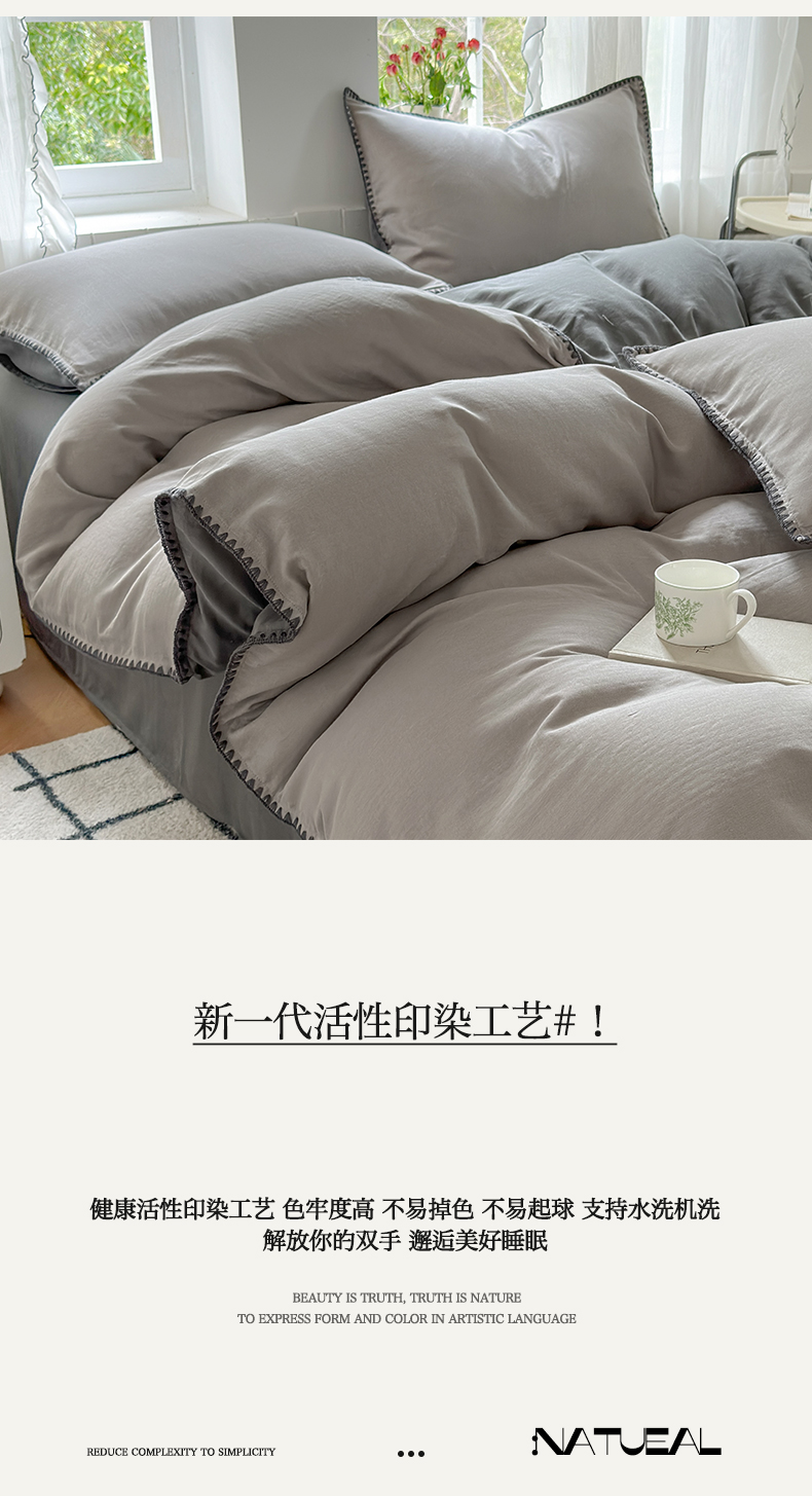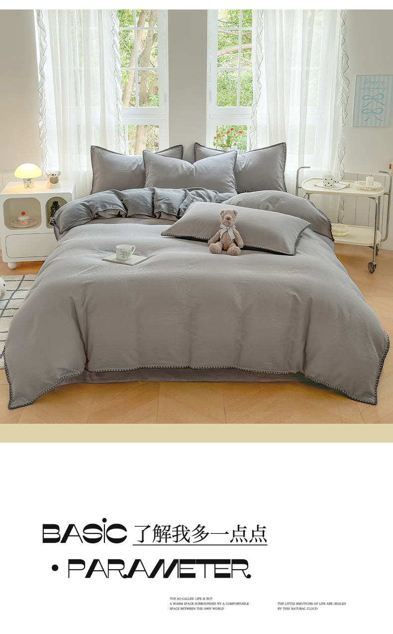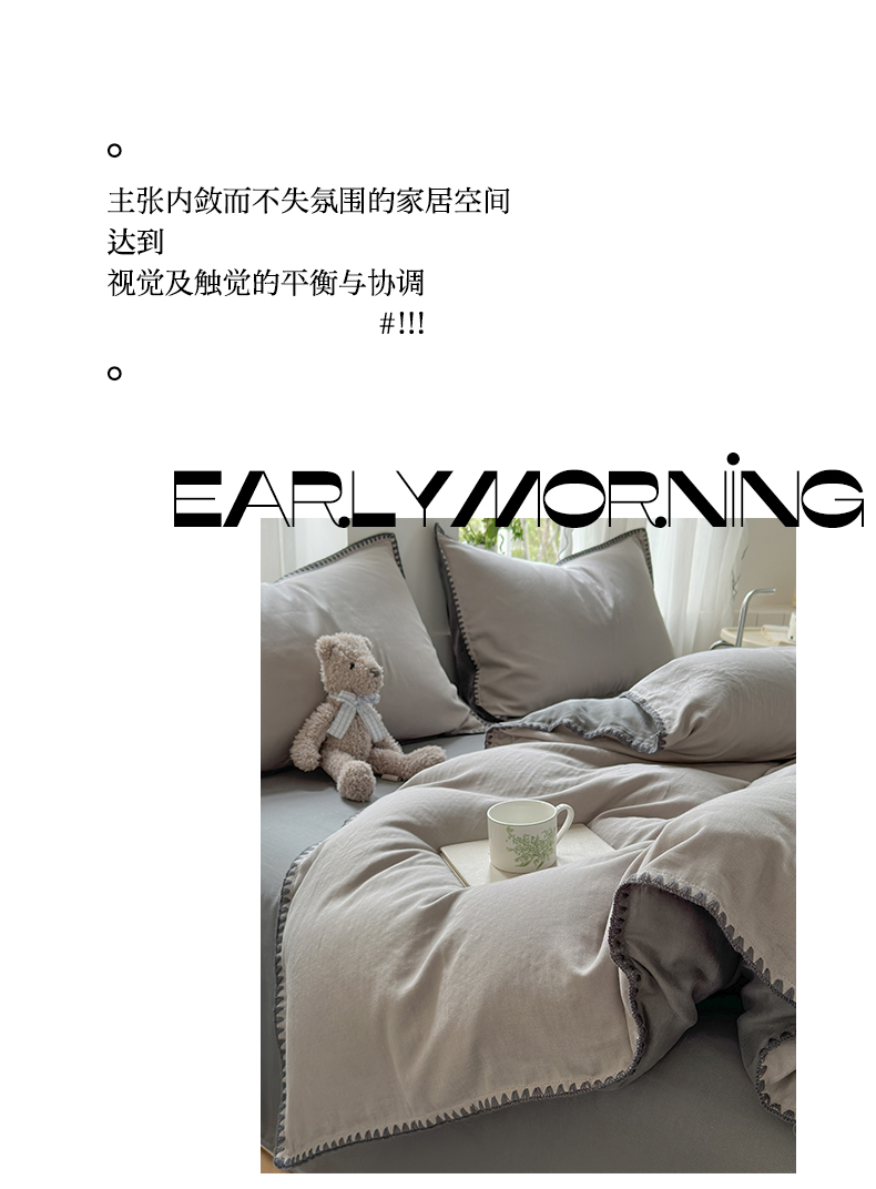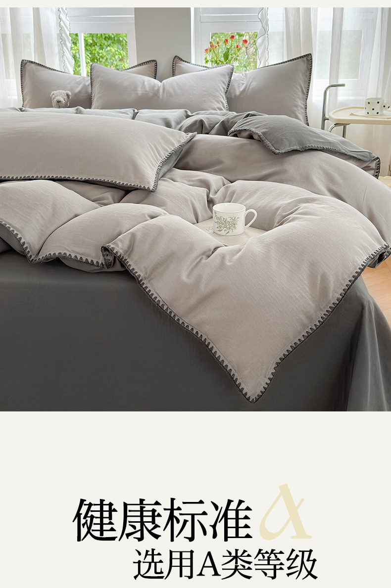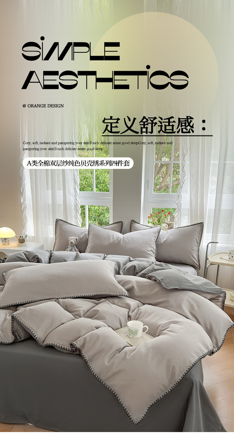 当前位置: 91家纺网 > 商品网购 > 床品套件 > 四件套 > 全棉普通四件套 > 莱登卡奴 2025新款A类全棉双层纱纯色贝壳绣系列四件套 双层纱浅灰拼深灰