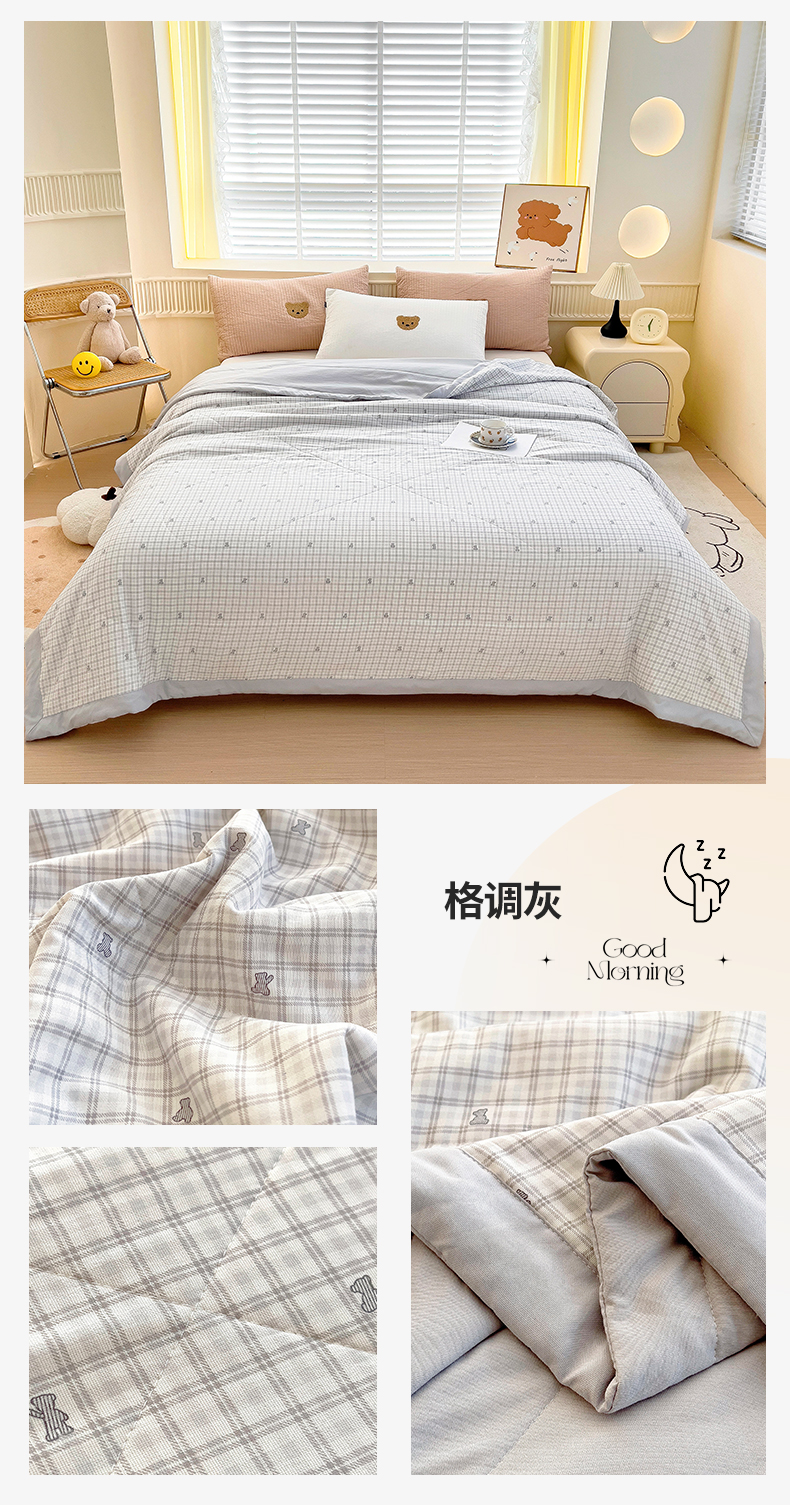 鑫棉坊 2024新款A类烫画款全棉色织水洗棉棉花夏被 叠拍主图,叠拍主图